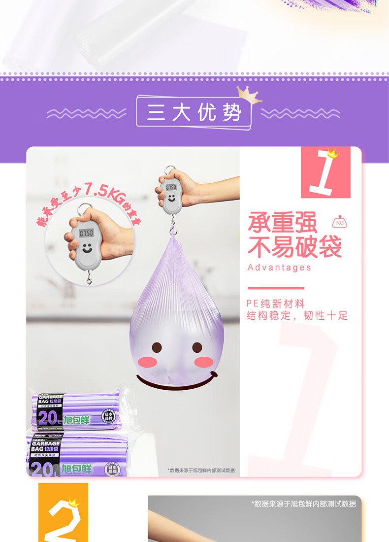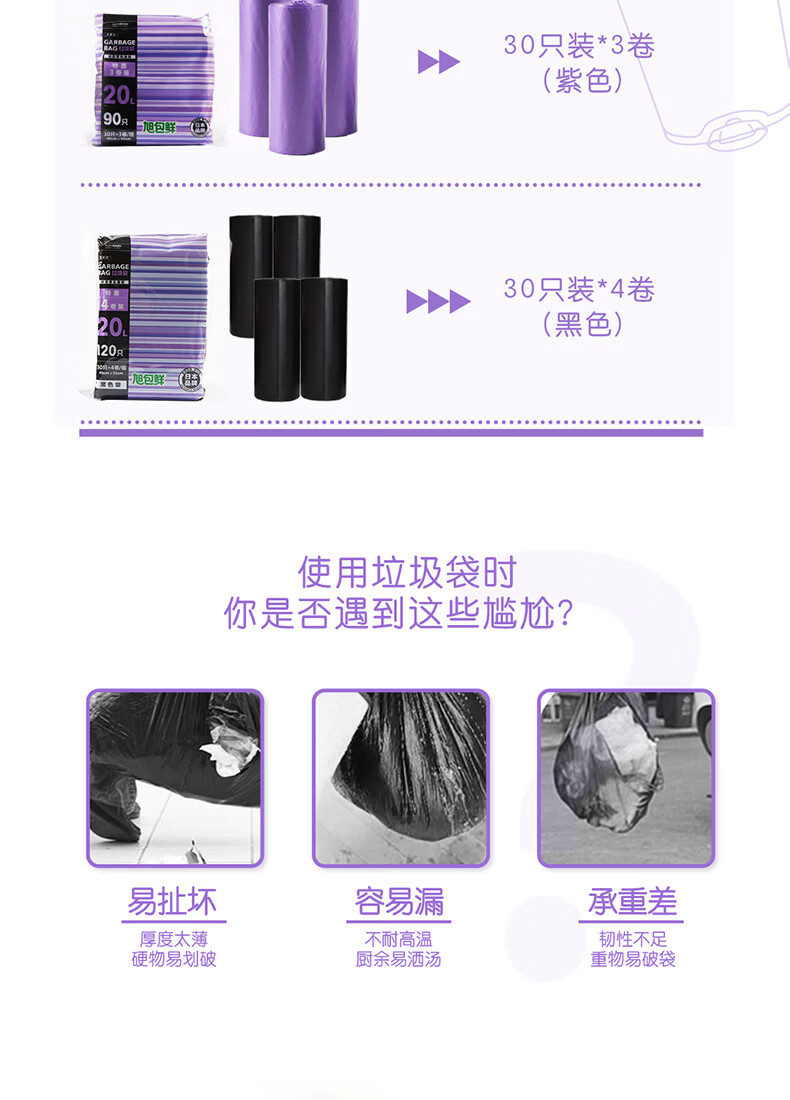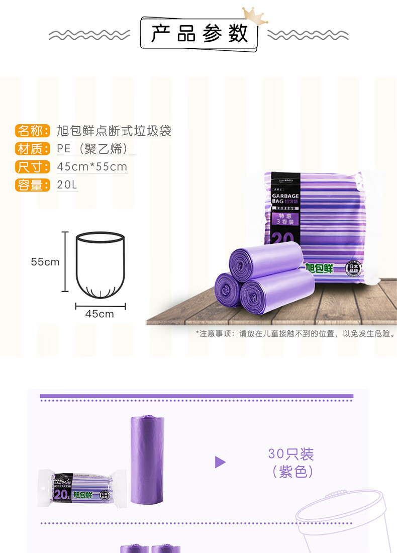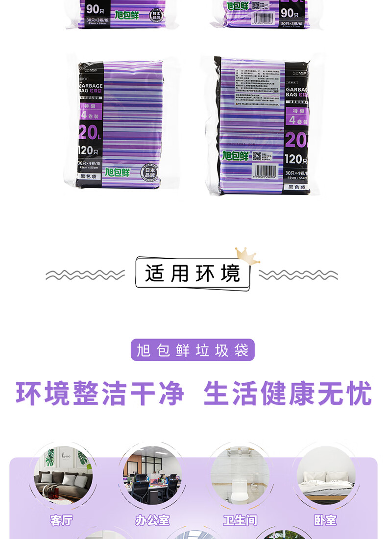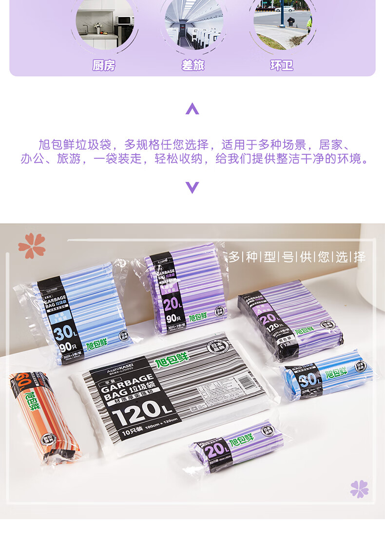 旭包鲜 日本品牌垃圾袋45cm*55cm*3卷*4包 360只装 点断式增厚强韧清洁塑料袋_MW