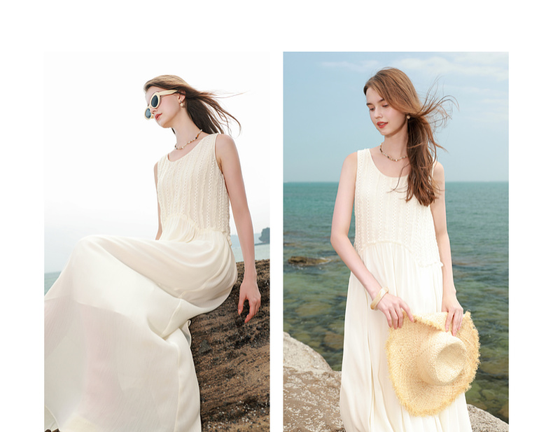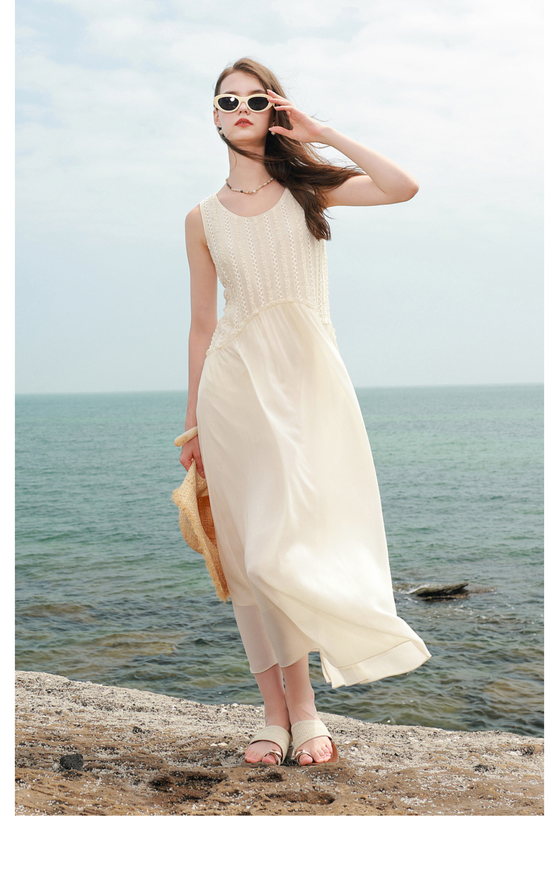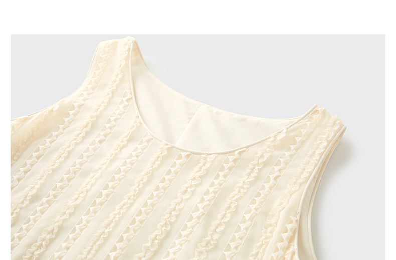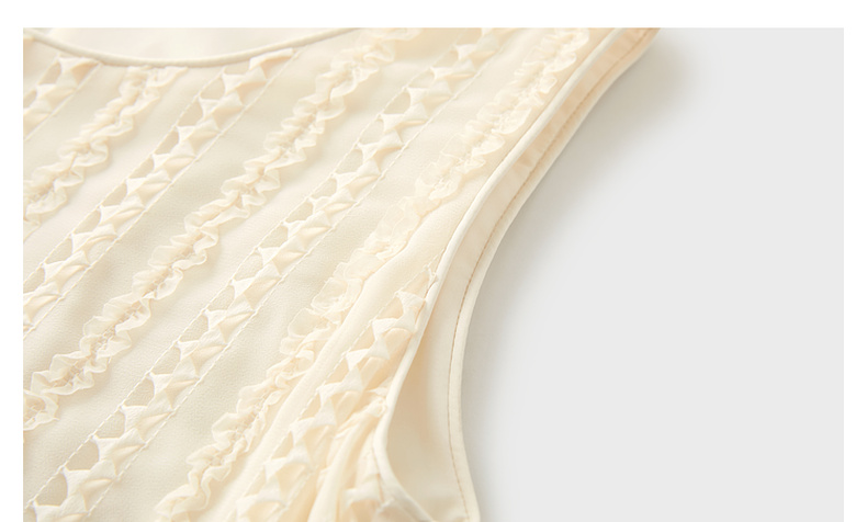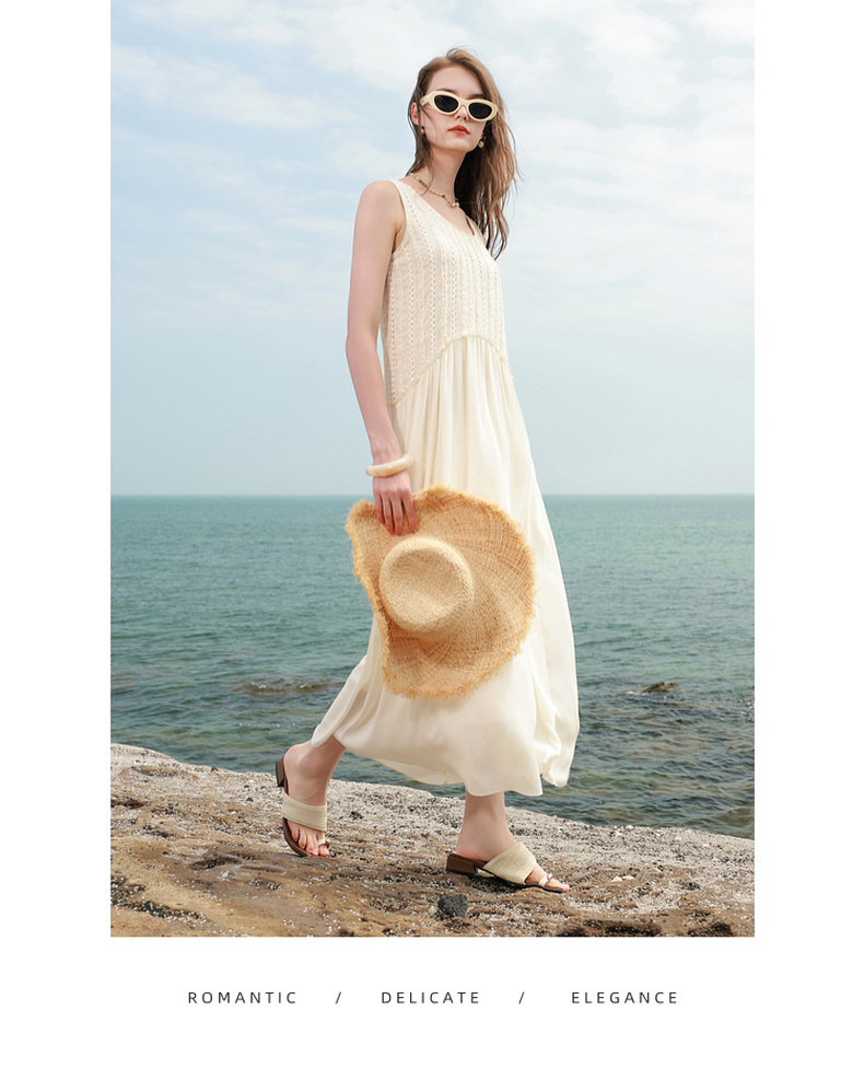三彩2025夏季新款无袖连衣裙盘带绣花雪纺A字裙背心长裙M