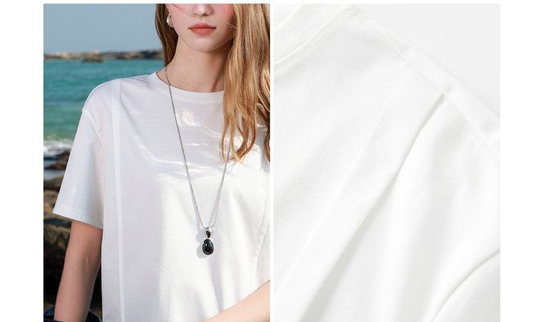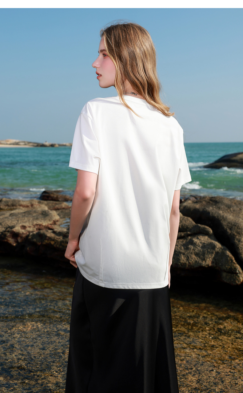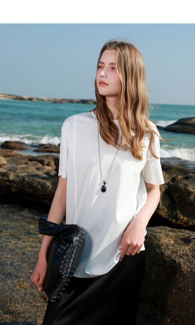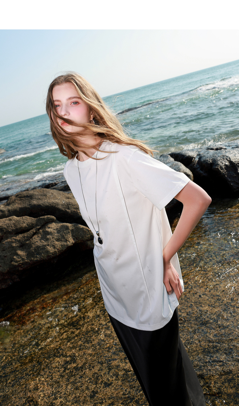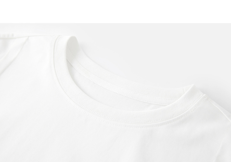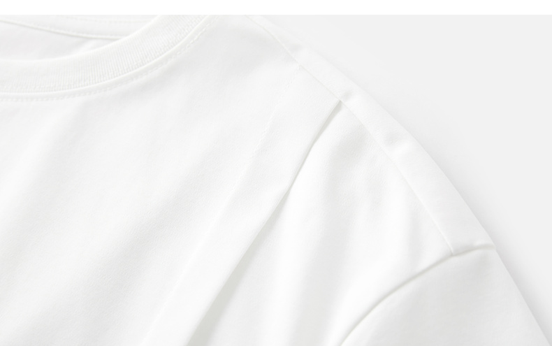 三彩2025春季新款100支长绒棉宽松圆领白T恤纯色落肩袖套头衫S