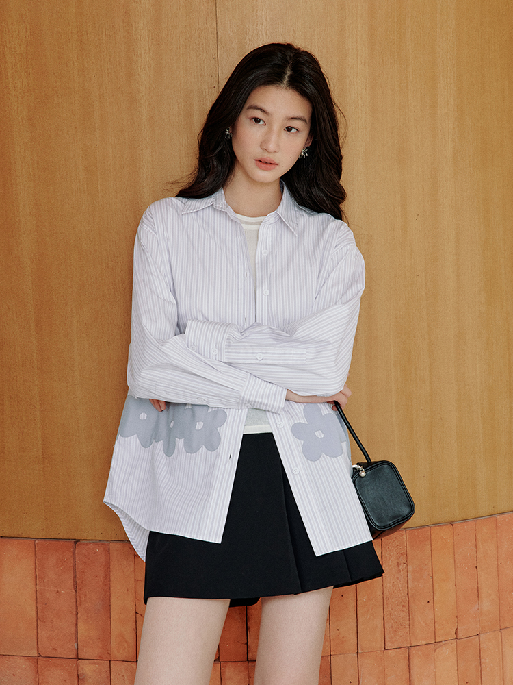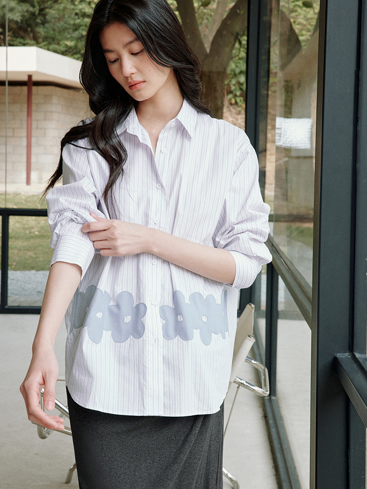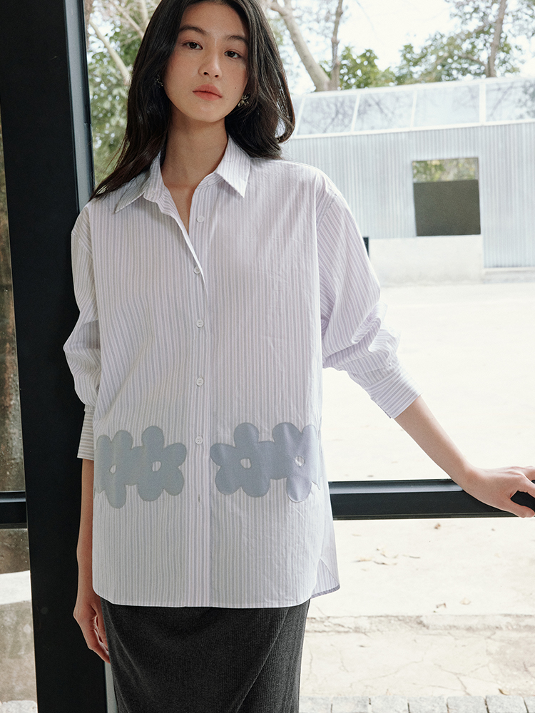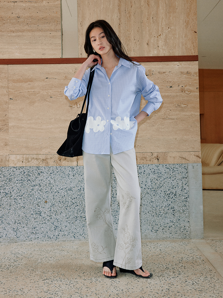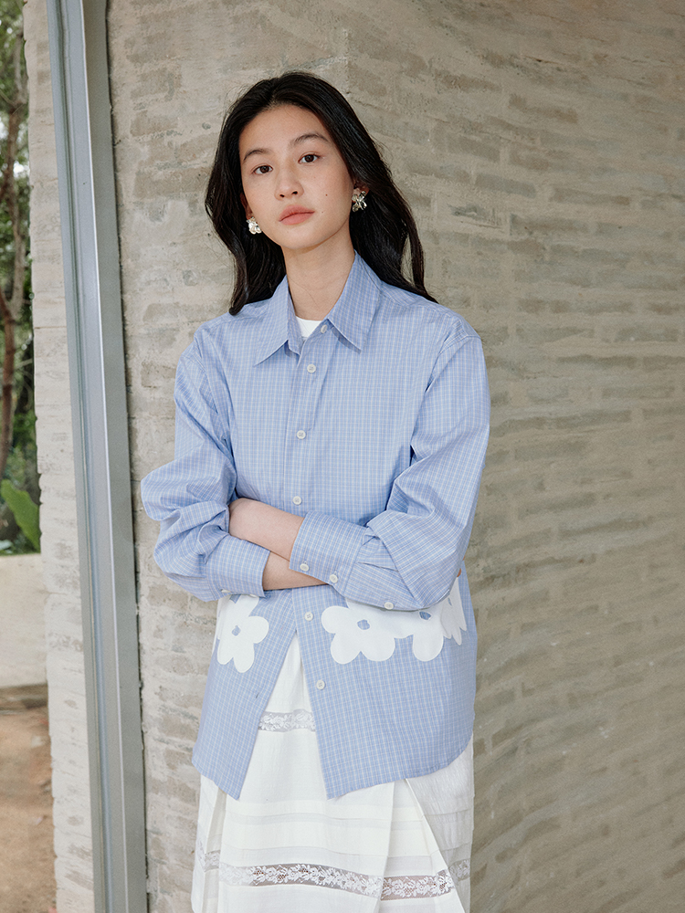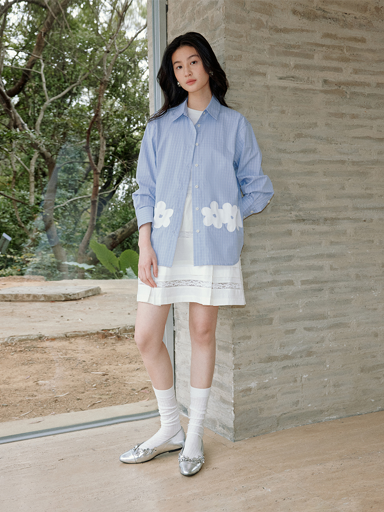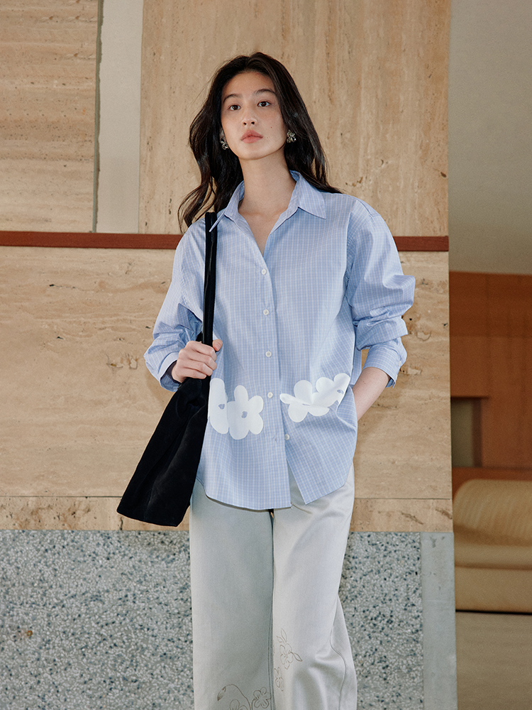 ForPoem 现货 25/SS原创设计贴布花朵宽松棉质衬衫