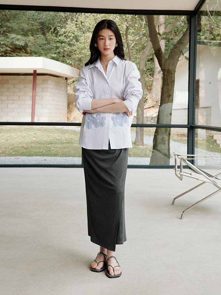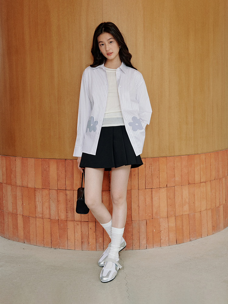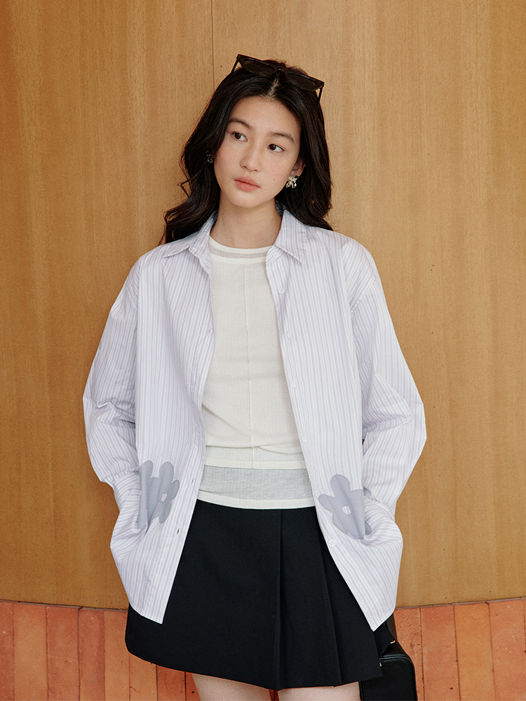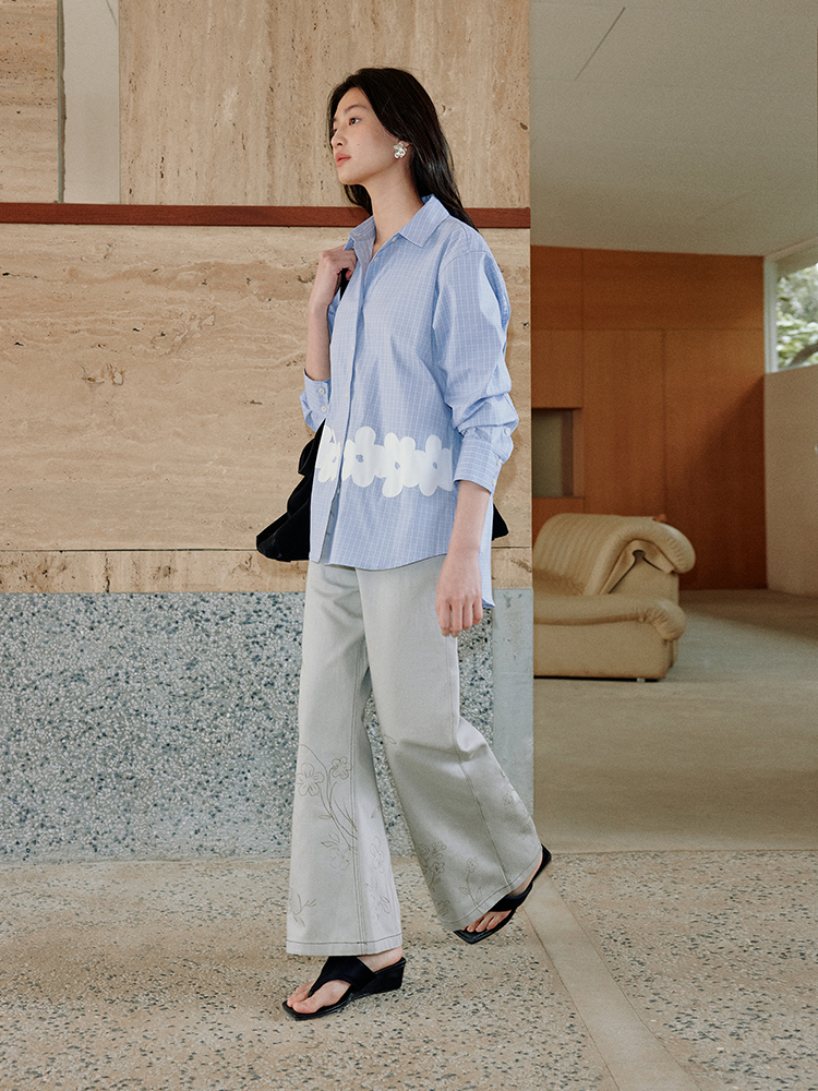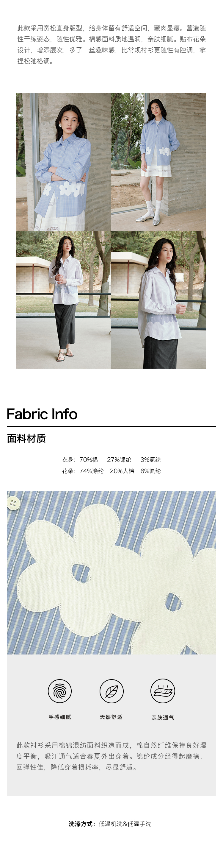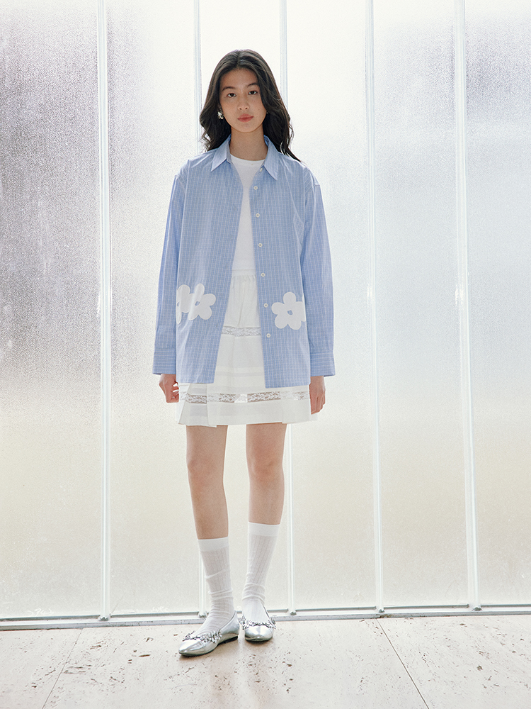 ForPoem 现货 25/SS原创设计贴布花朵宽松棉质衬衫