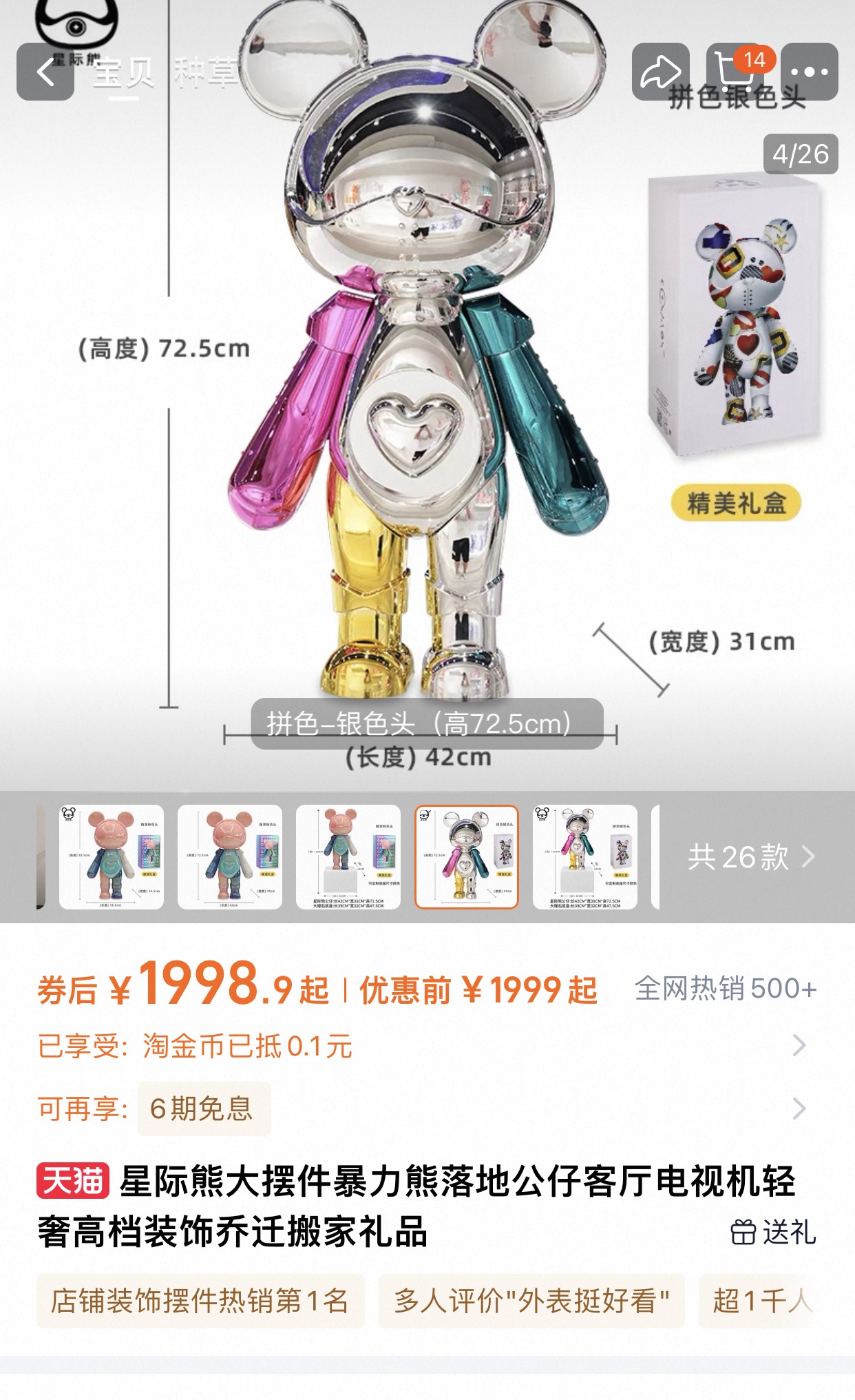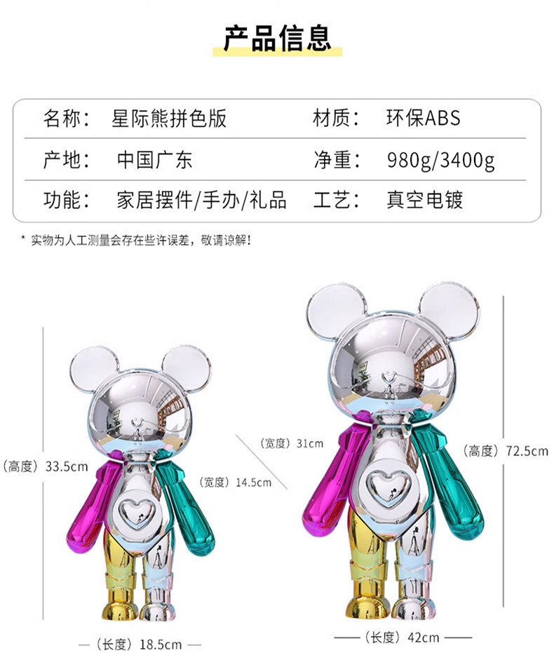 【原价1998元】星际熊 轻奢高档型公仔摆件 混色潮玩落地式电镀手办 高72cm