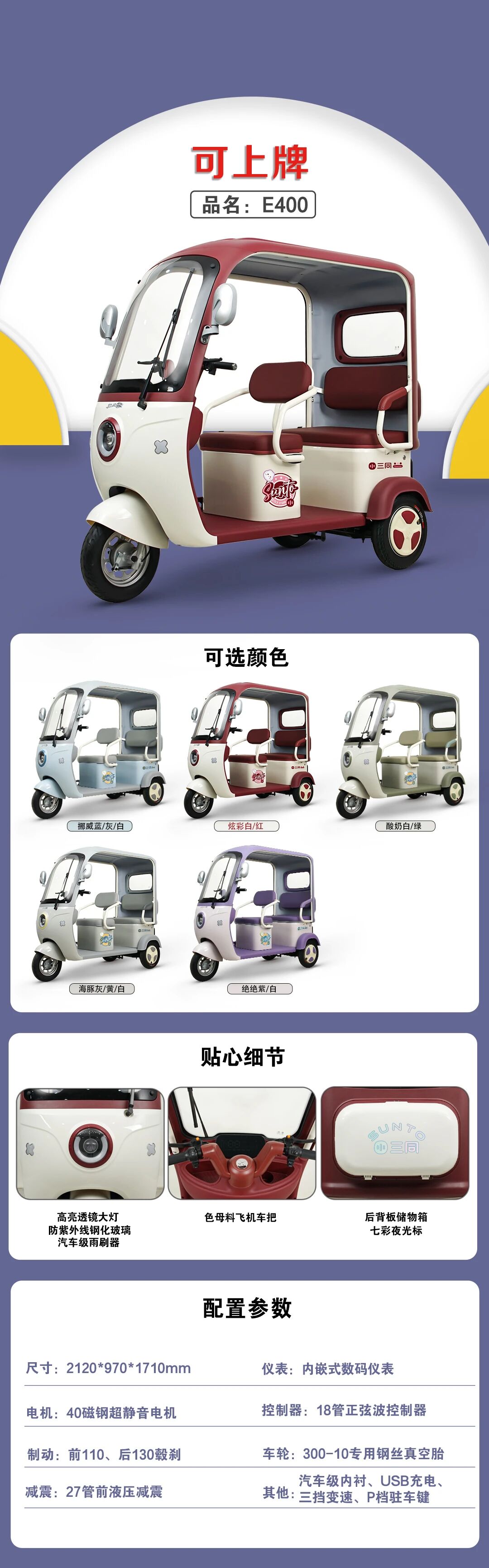 品牌:三同三轮车E400(配雨帘)