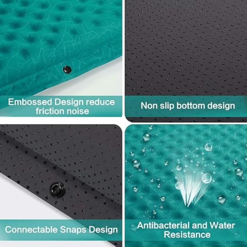 自充气设计:配备ABS快速流量阀/放气自由流量阀;充气时厚度为2.5英寸;为了增加硬度,可以通过吹气进入阀门来手动充气垫。关闭阀门以保持硬度。