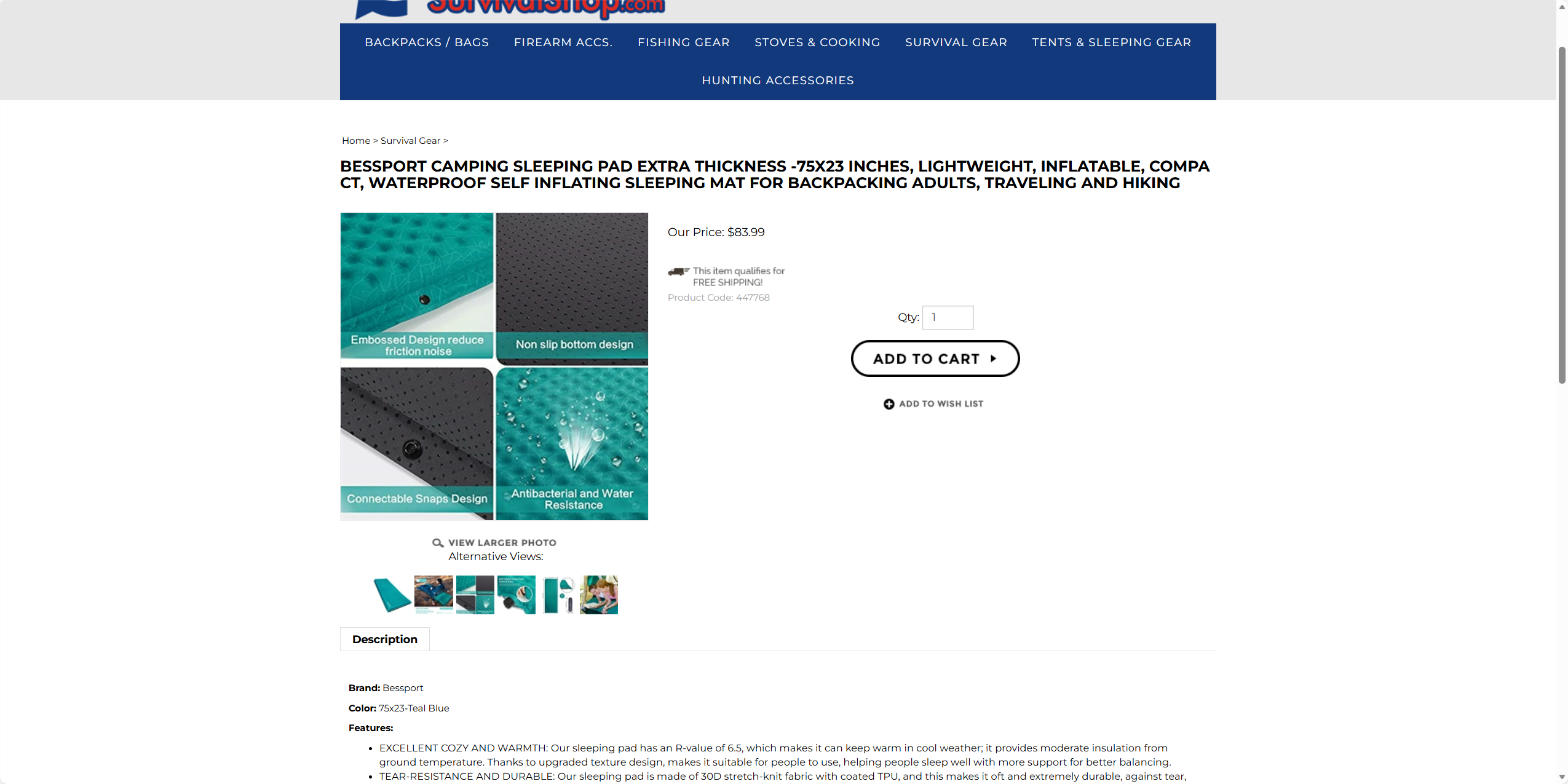 美国 Bessport 自充气睡垫 湖蓝色 轻便紧凑 适合背包旅行和徒步 X0016O9RQP