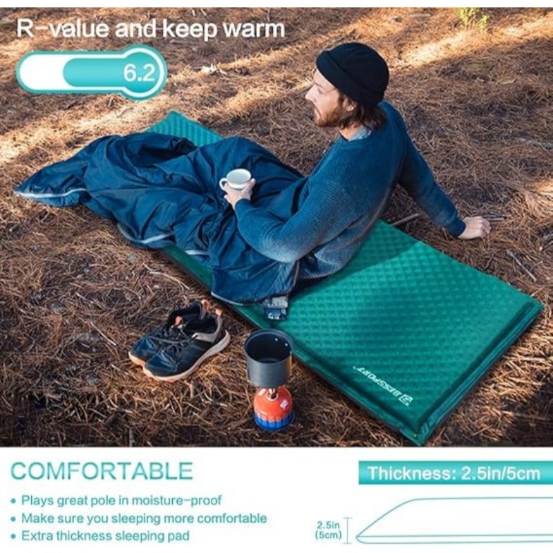 极佳的舒适和温暖:我们的睡垫R值为6.2,能在凉爽天气中保持温暖;它能提供适度的地温隔热。得益于升级的纹理设计,它适合人们使用,帮助人们安睡,同时提供更多支撑以实现更好的平衡。