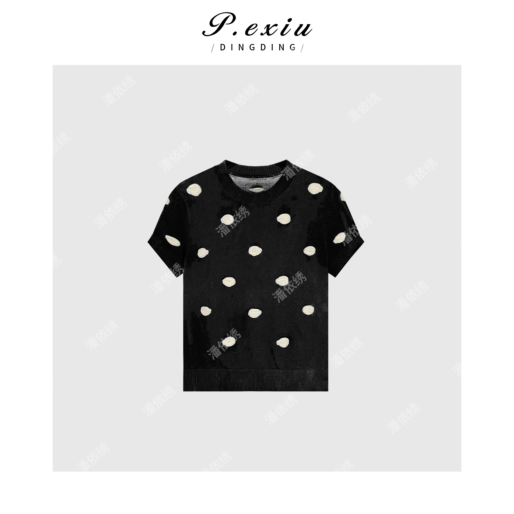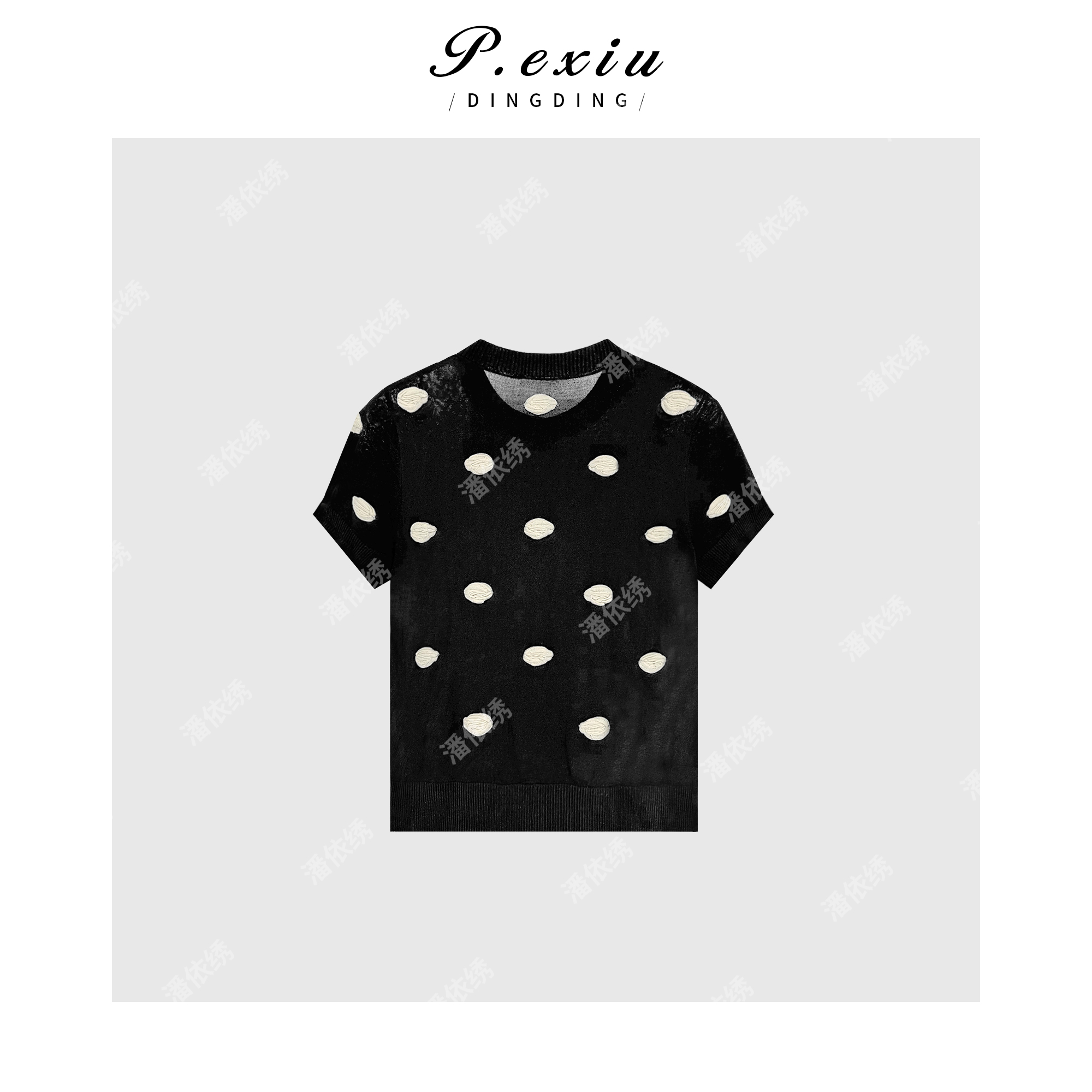 03-4潘依绣丁丁宠粉PanYiXiu/潘依绣【星光】人丝波点提花圆领针织短袖上衣 ZZ0550