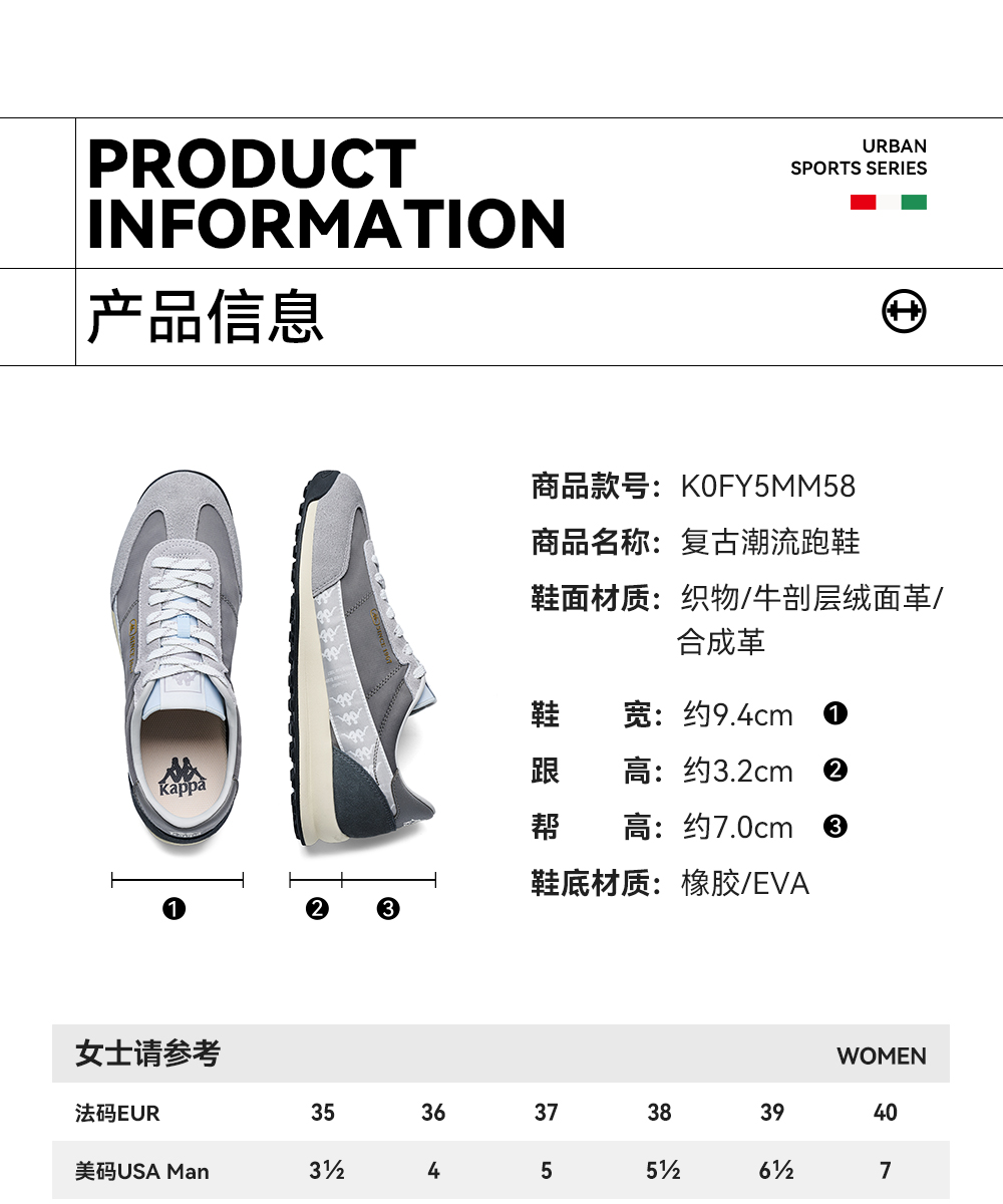 Kappa卡帕背靠背复古慢跑鞋男女夏季薄底运动鞋新款情侣德训鞋子K0FY5MM58