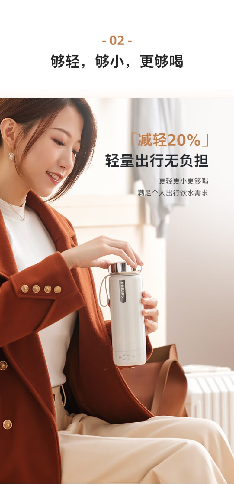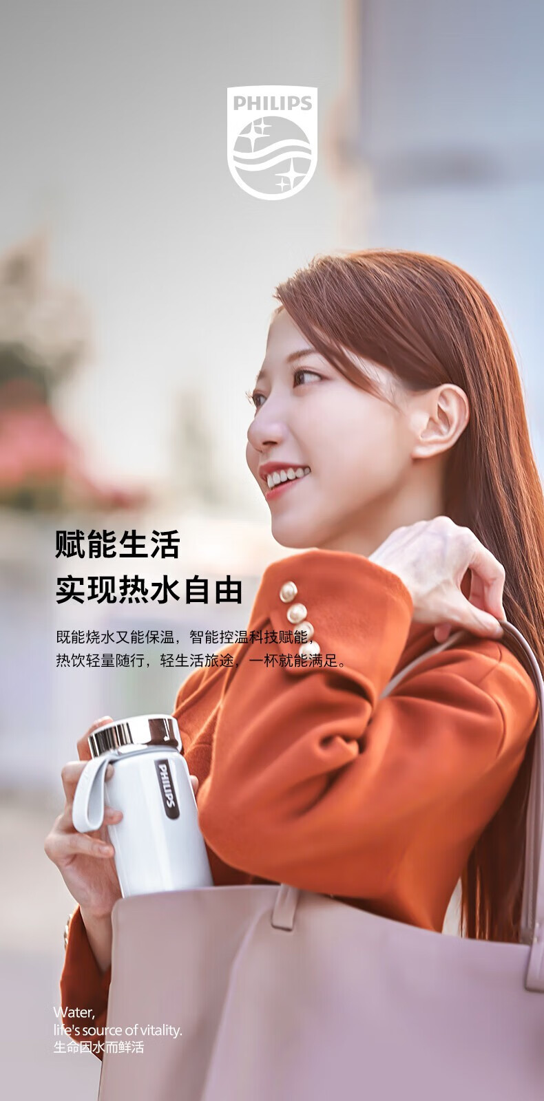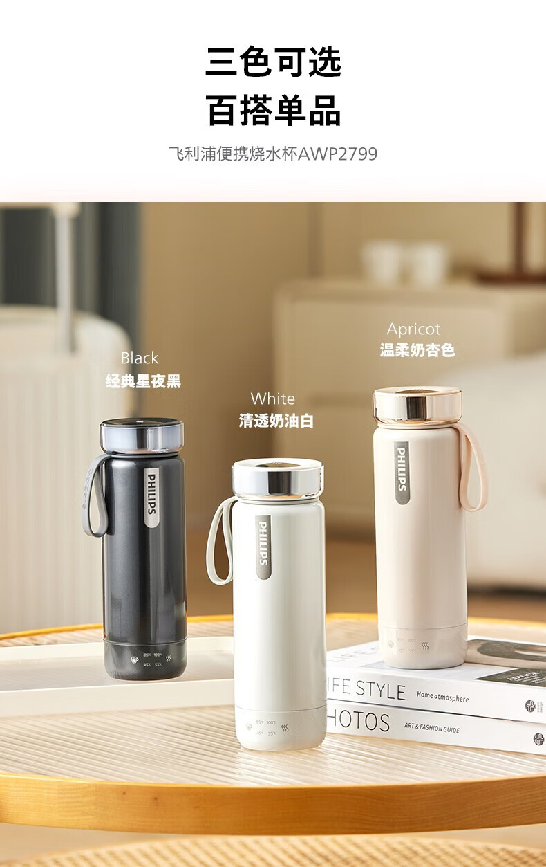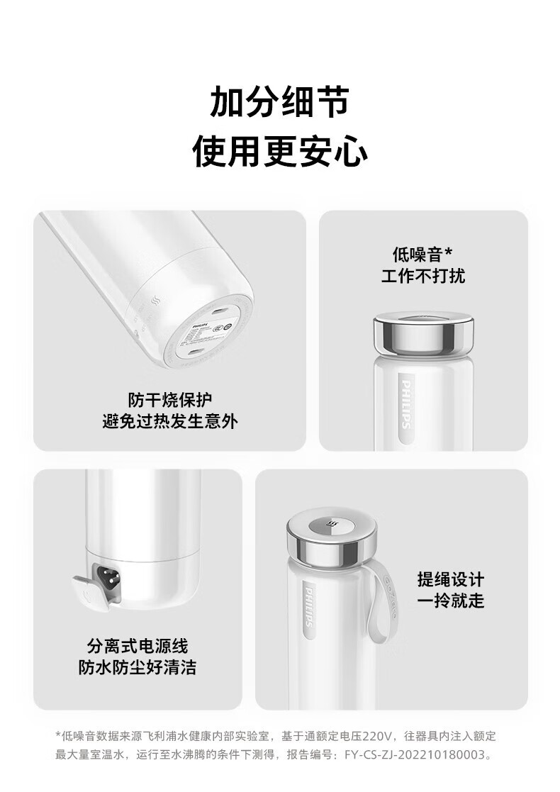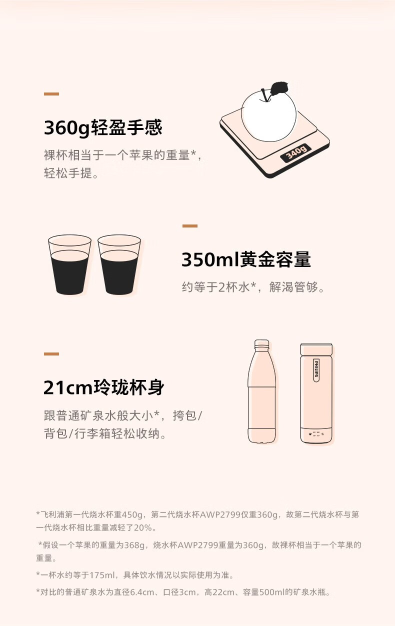 飞利浦(PHILIPS)电水壶便携式烧水壶电热水杯家用旅行迷你小型电热水壶冲茶泡奶办公室烧水养生杯 男女生日礼物 AWP2799 0.35L
