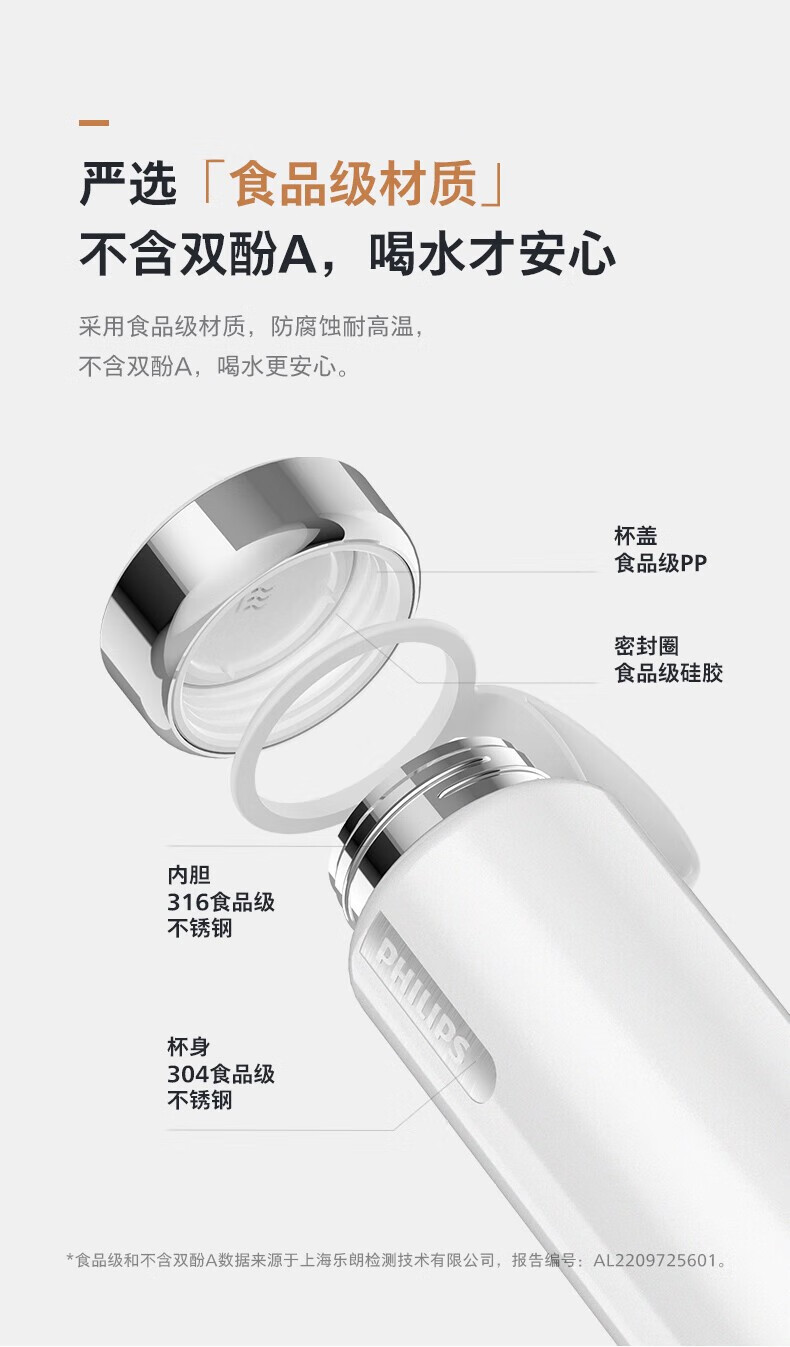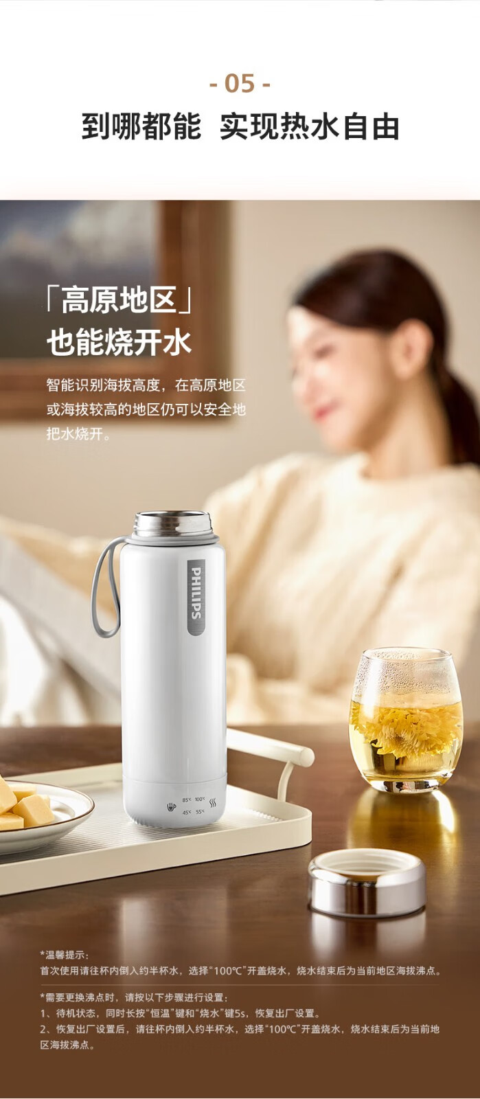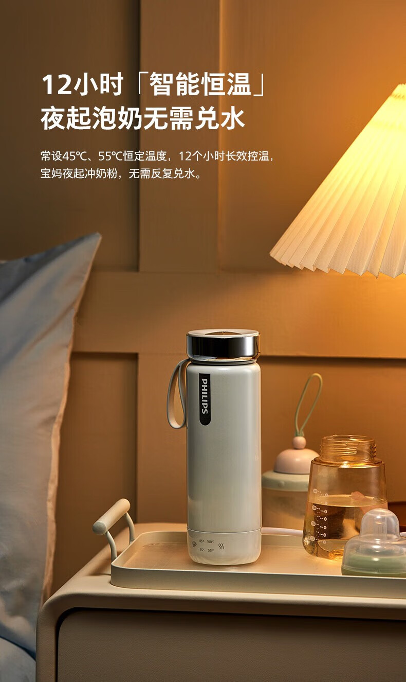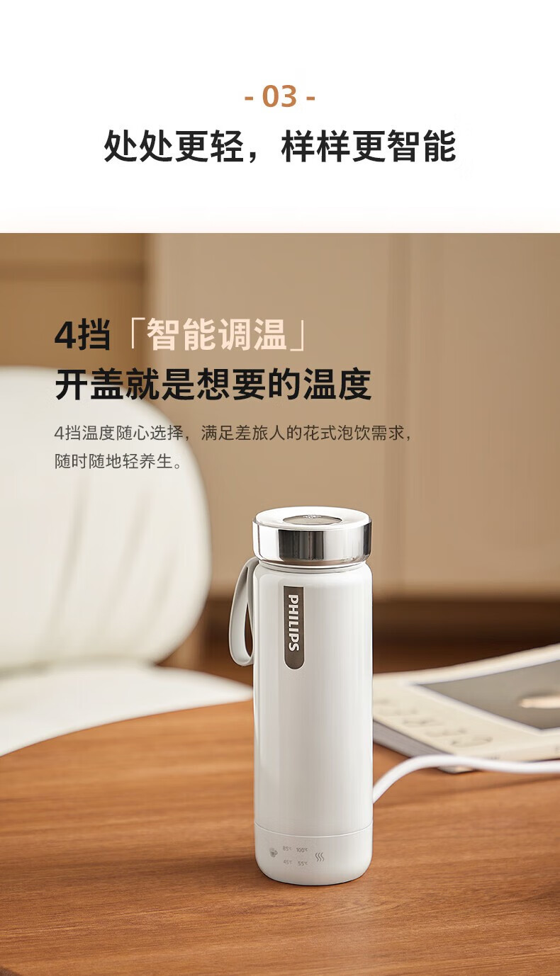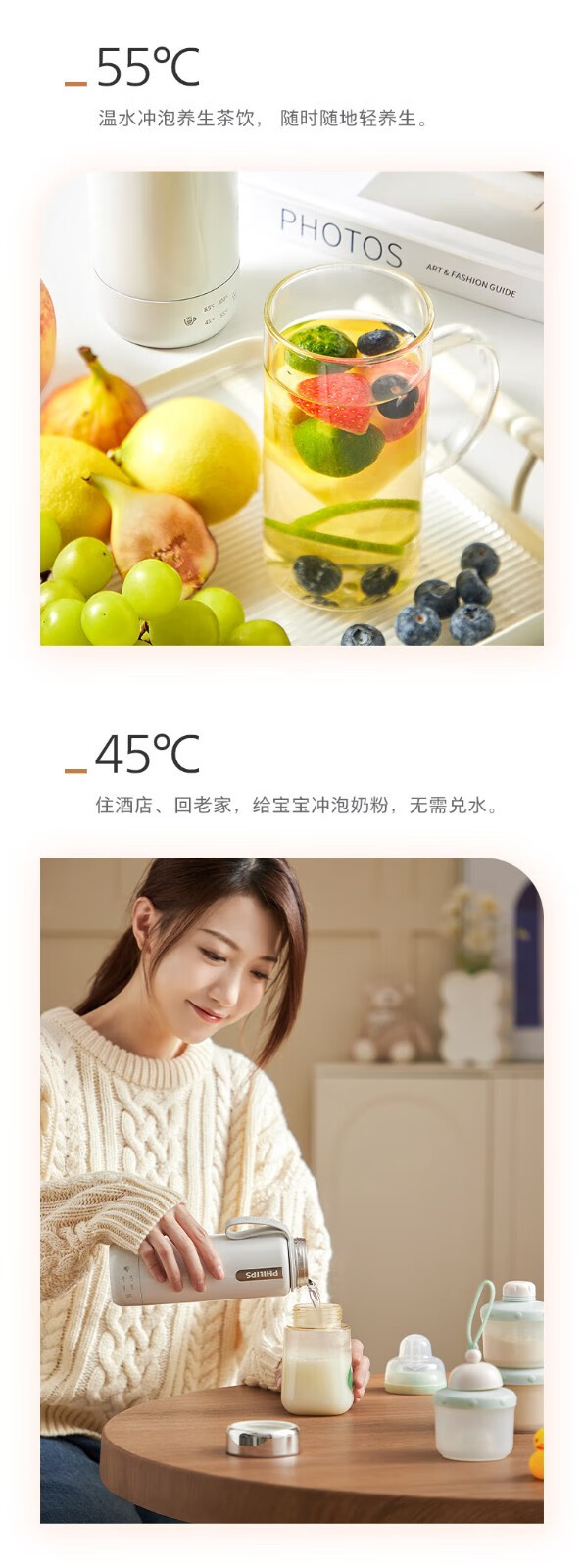飞利浦(PHILIPS)电水壶便携式烧水壶电热水杯家用旅行迷你小型电热水壶冲茶泡奶办公室烧水养生杯 男女生日礼物 AWP2799 0.35L