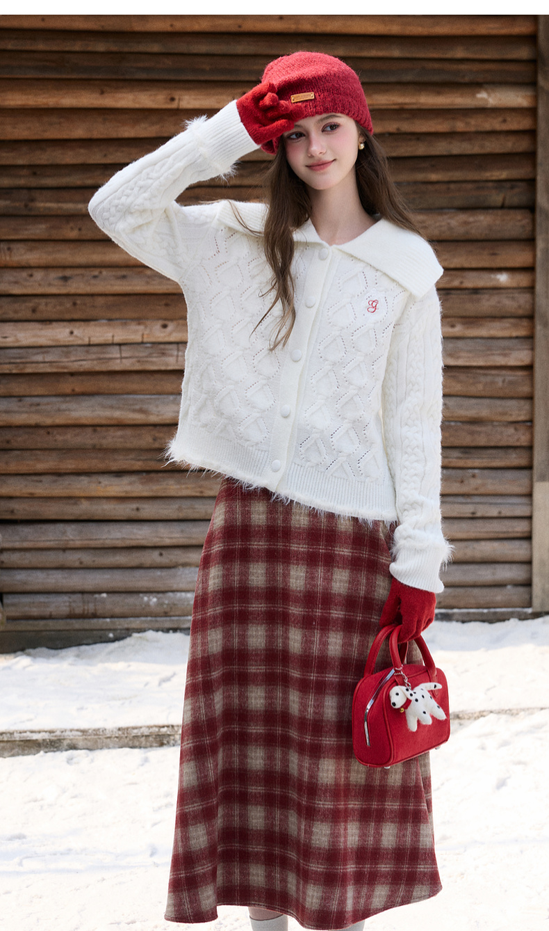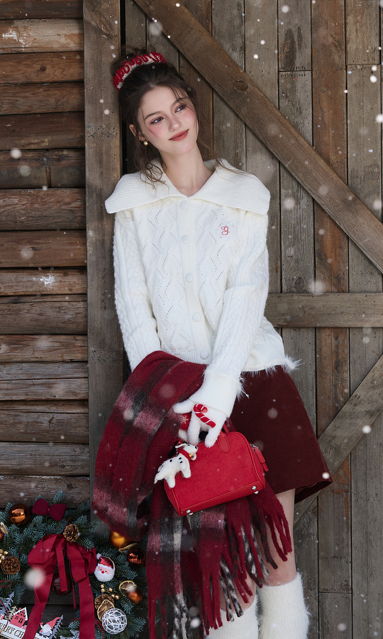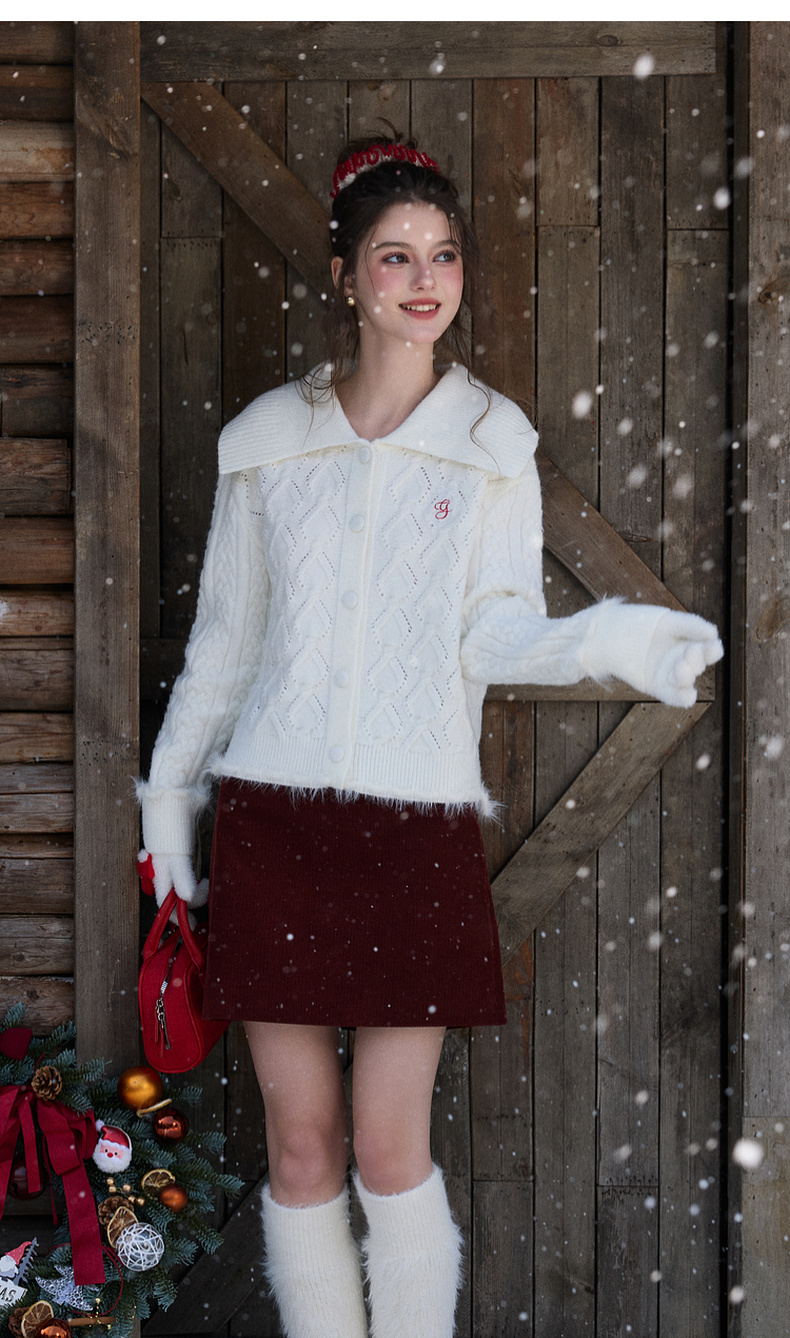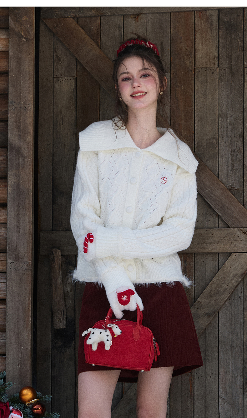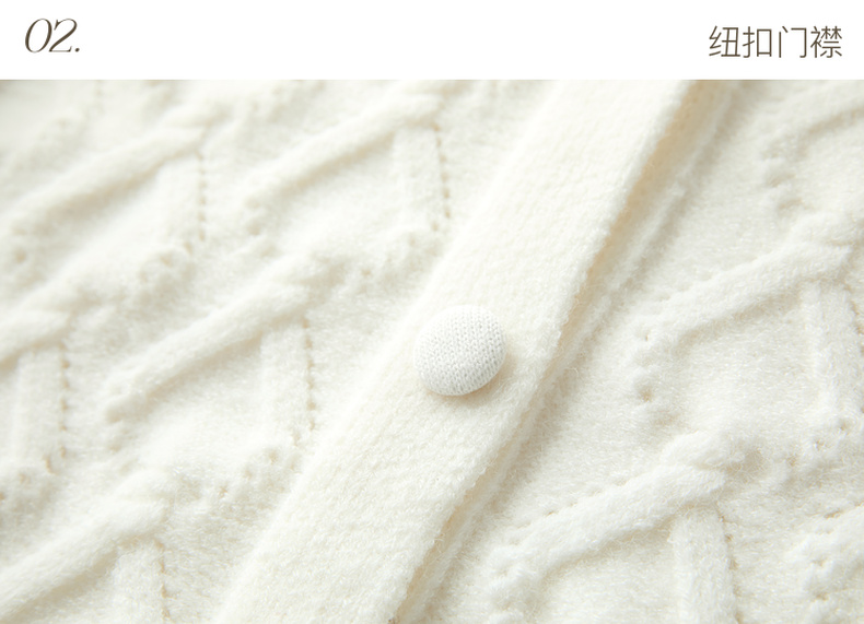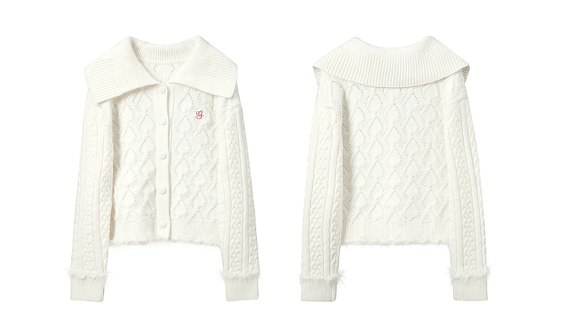 三彩独醒2026春季新款翻领绣花绞花肌理毛衣长袖开衫外套F