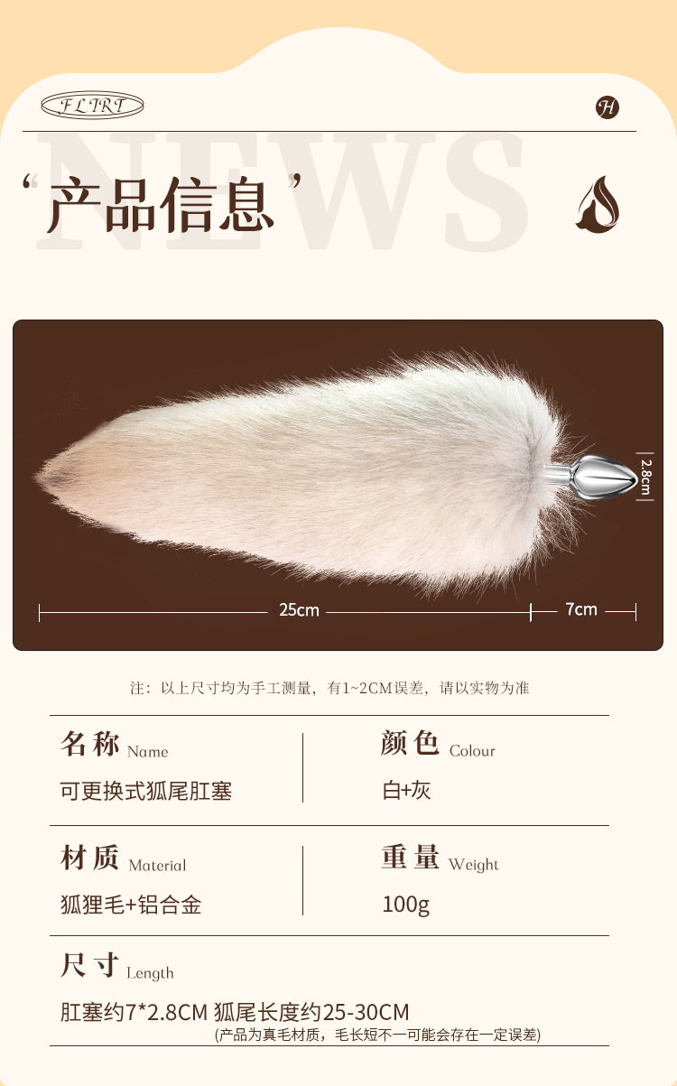 【谜姬】 可拆卸真毛狐尾肛塞女用器具后庭用品COS角色扮演调情