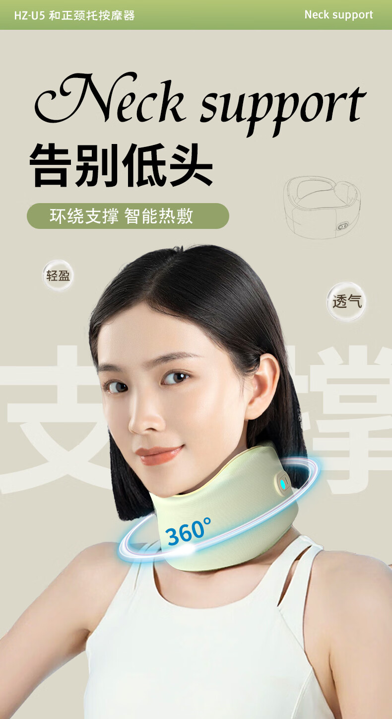 和正·颈部按摩器 护颈颈托脖套矫正器 防低头固定牵引颈椎脖子 震动热敷护颈枕 器 HZ-U5