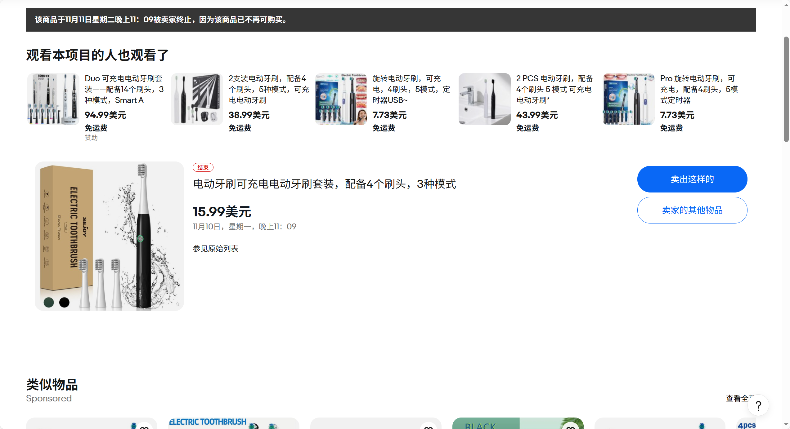美国 Sejoy 电动牙刷 IPX7防水 3种模式 配备4个刷头