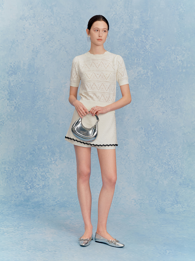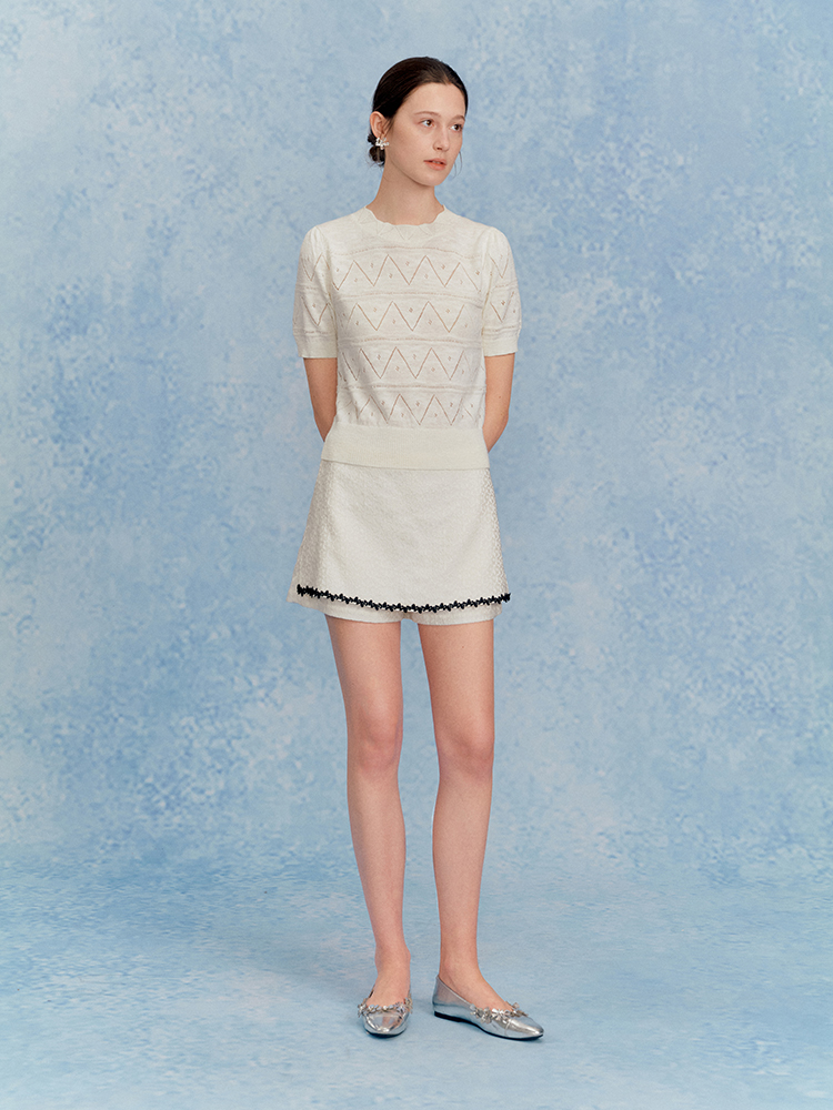ForPoem 现货 25/SS原创设计中腰花朵提花肌理半身裙裤