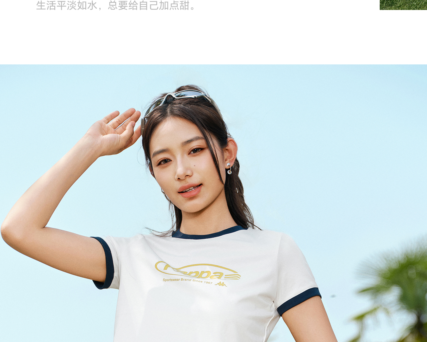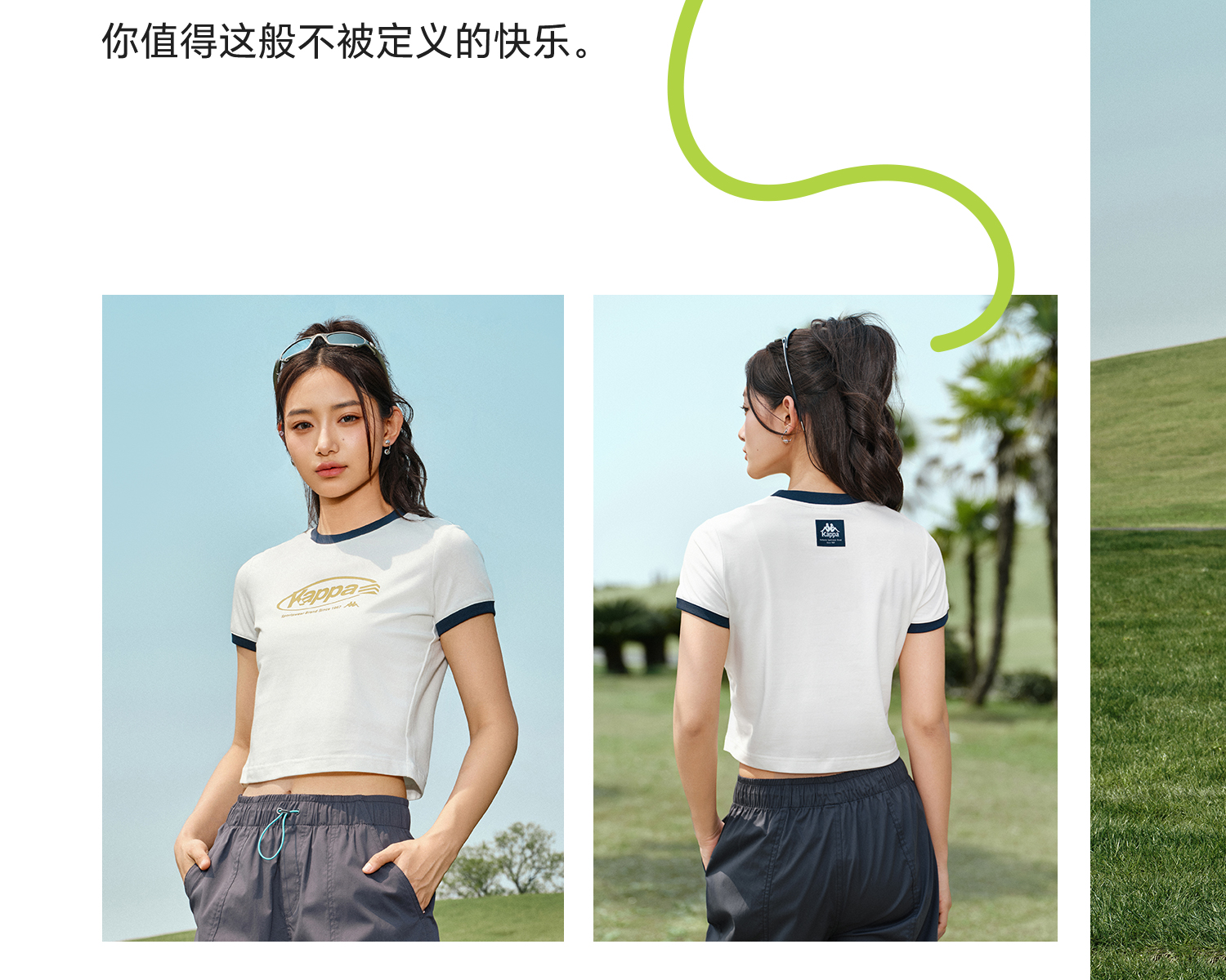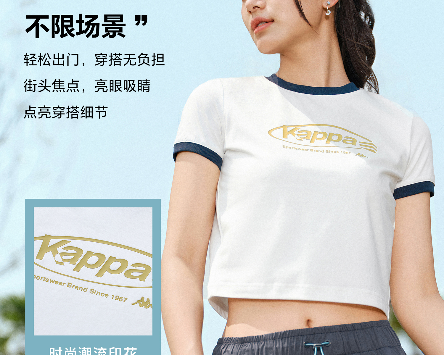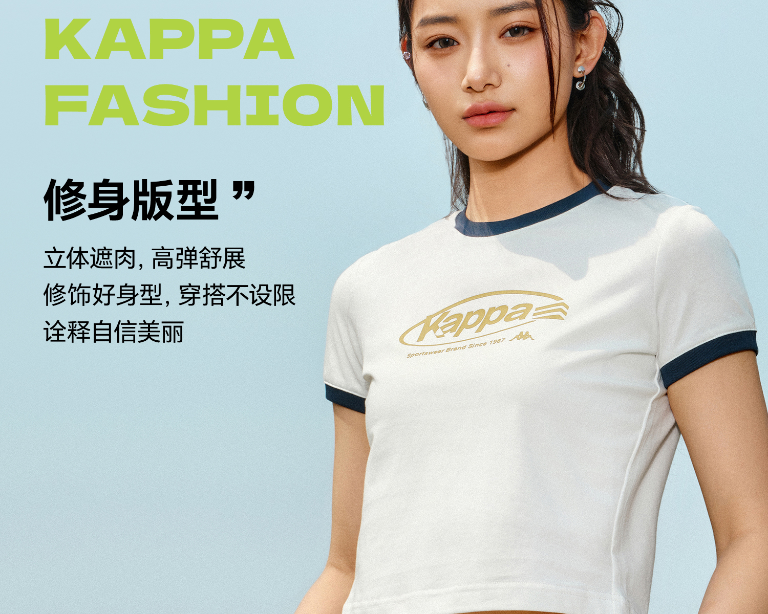 Kappa卡帕背靠背2025新款运动正肩短袖凉感T恤女款短款修身上衣