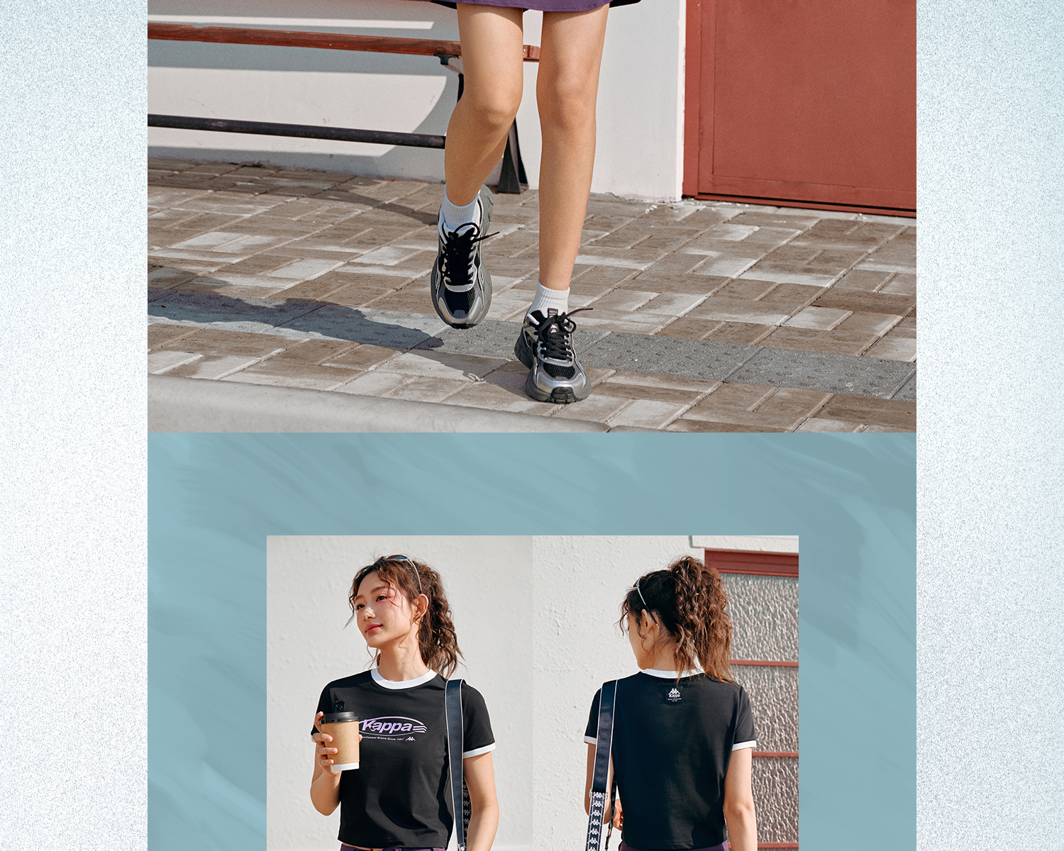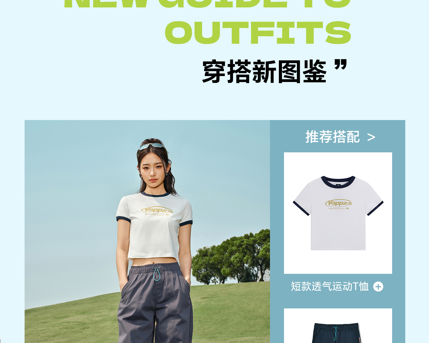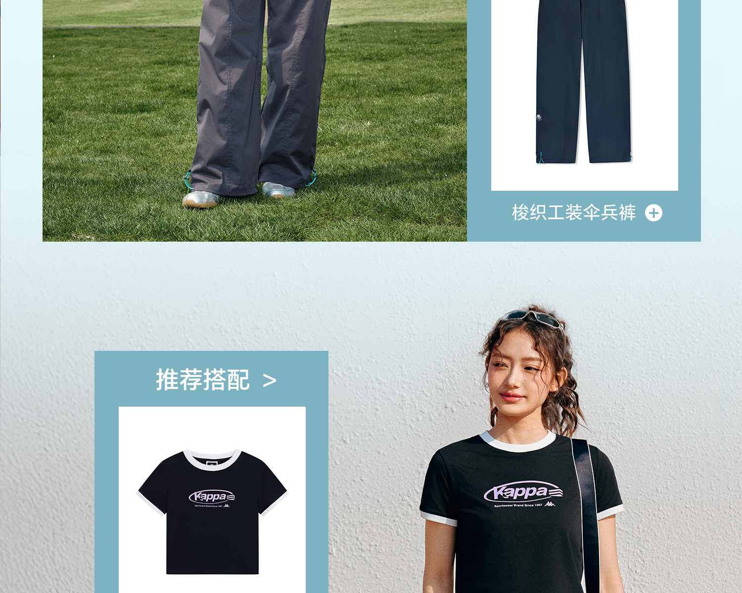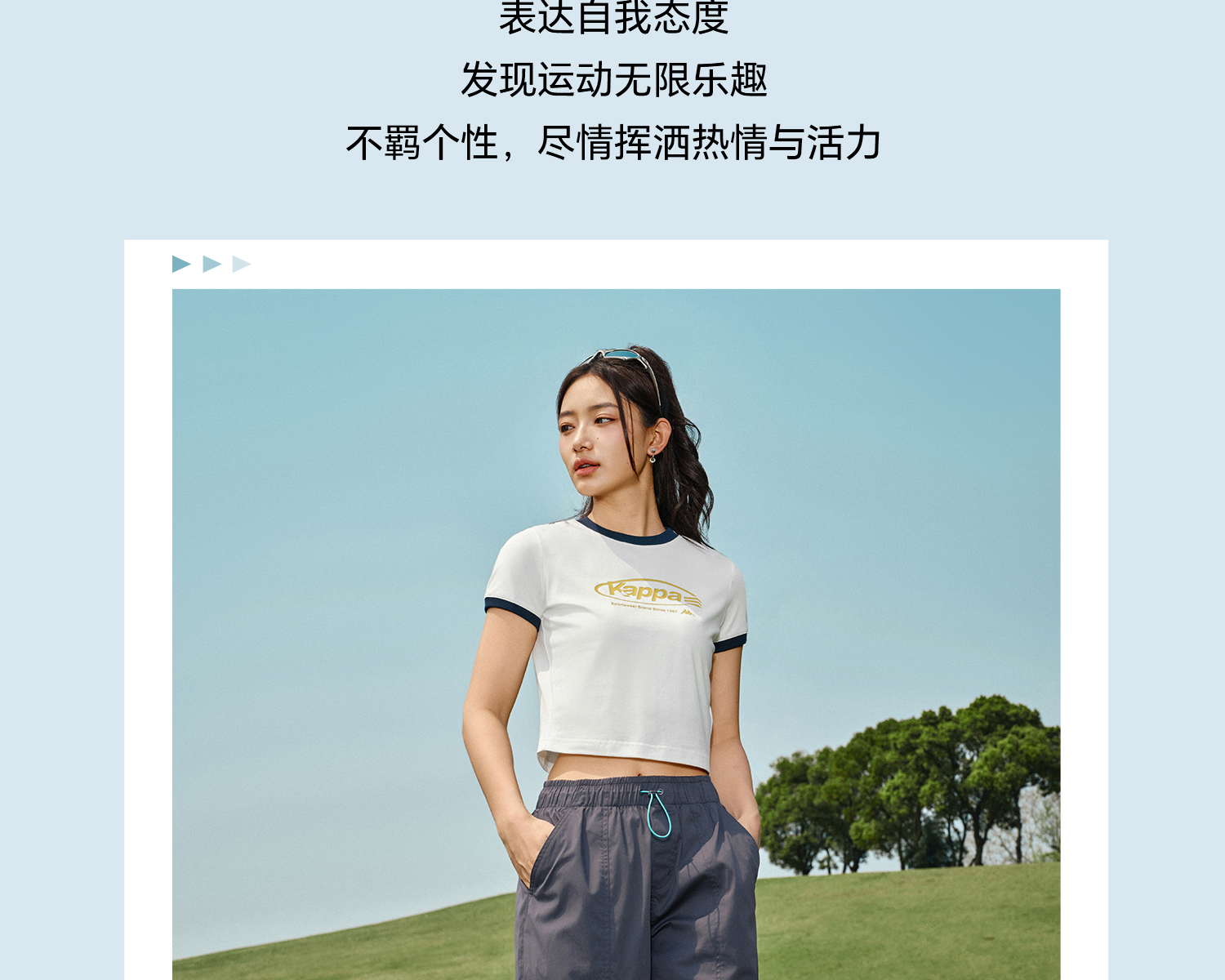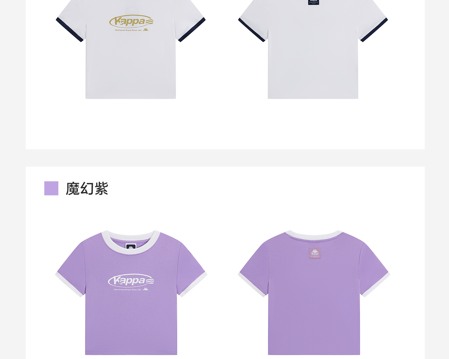 Kappa卡帕背靠背2025新款运动正肩短袖凉感T恤女款短款修身上衣