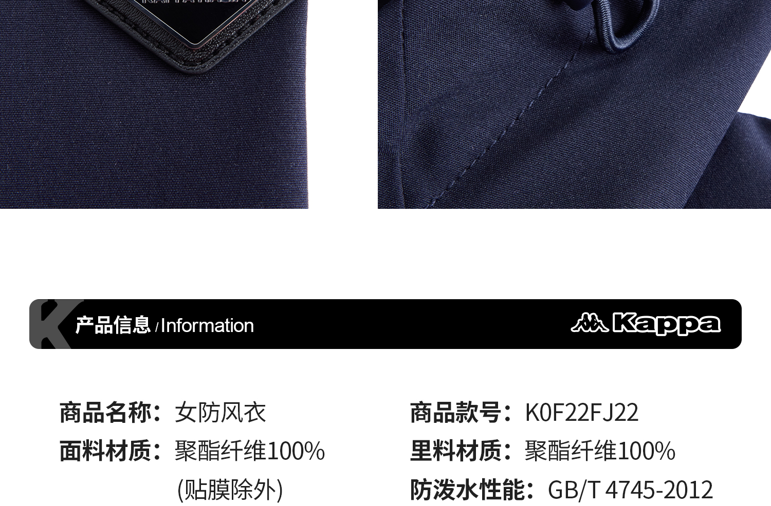 Kappa卡帕背靠背新款运动防风衣女户外防泼水防油污连帽夹克外套K0F22FJ22