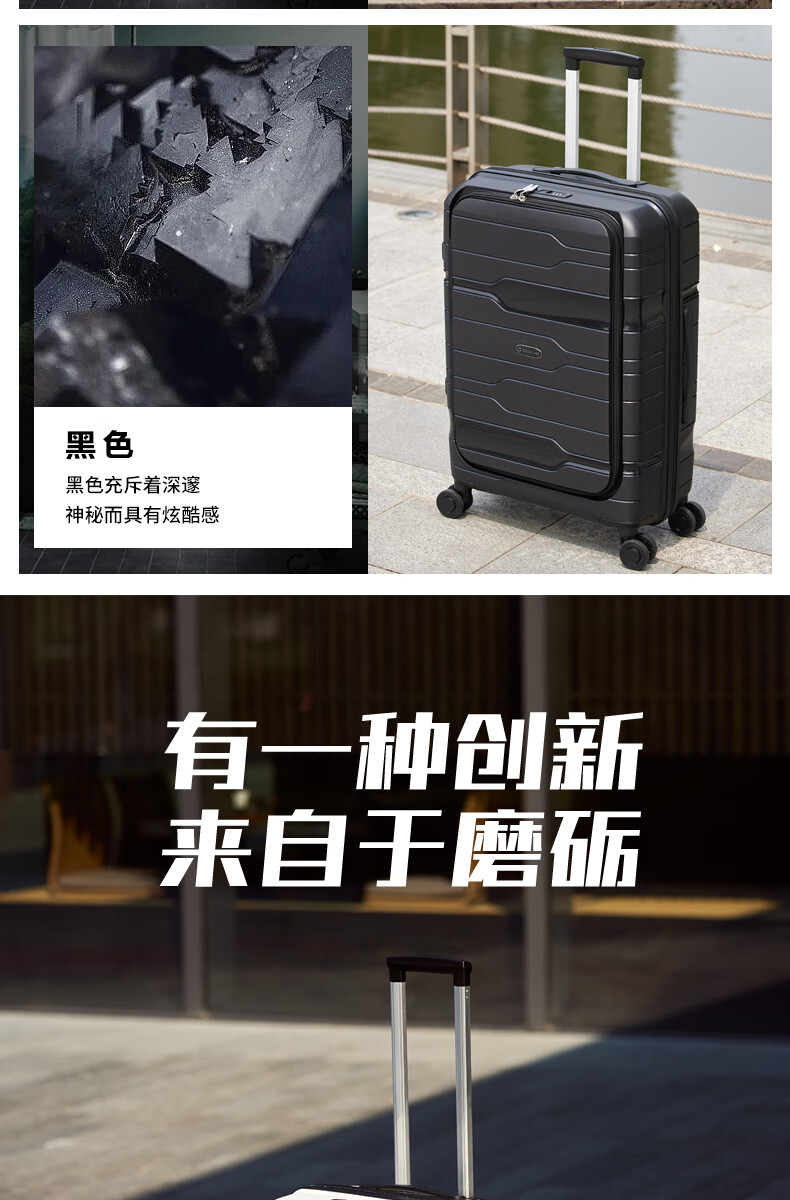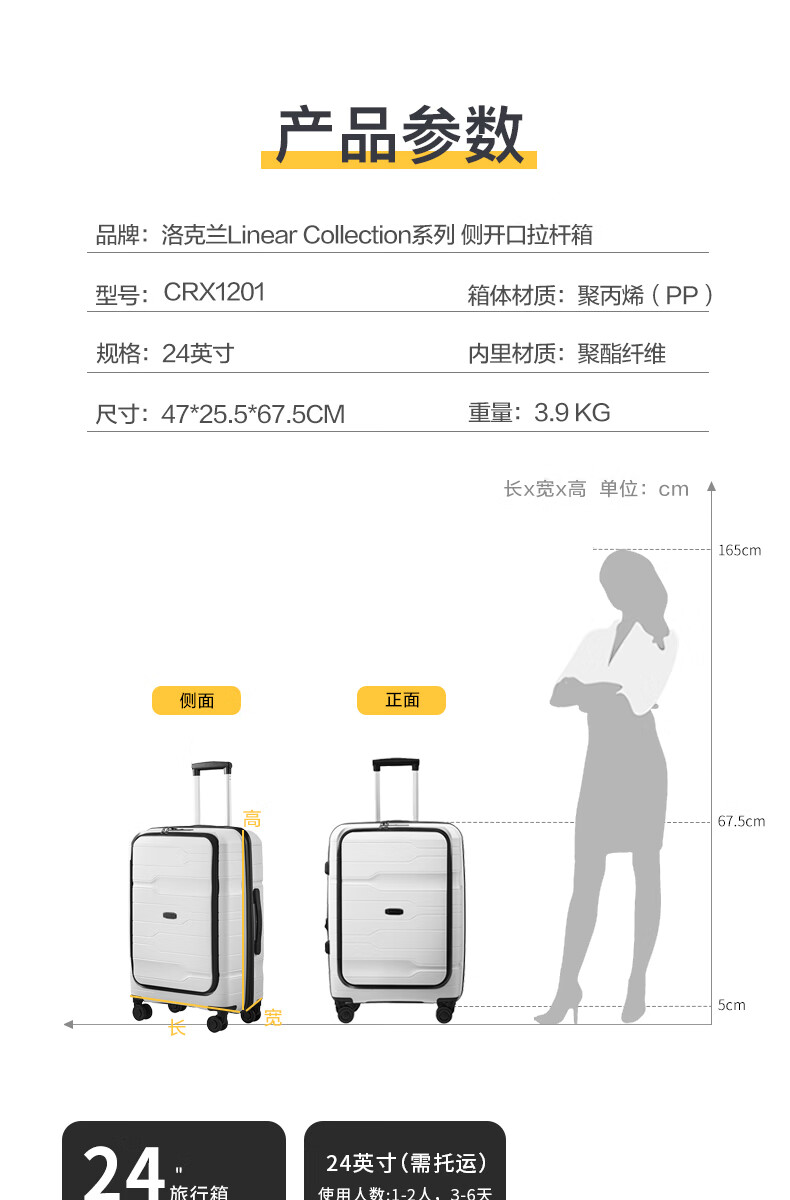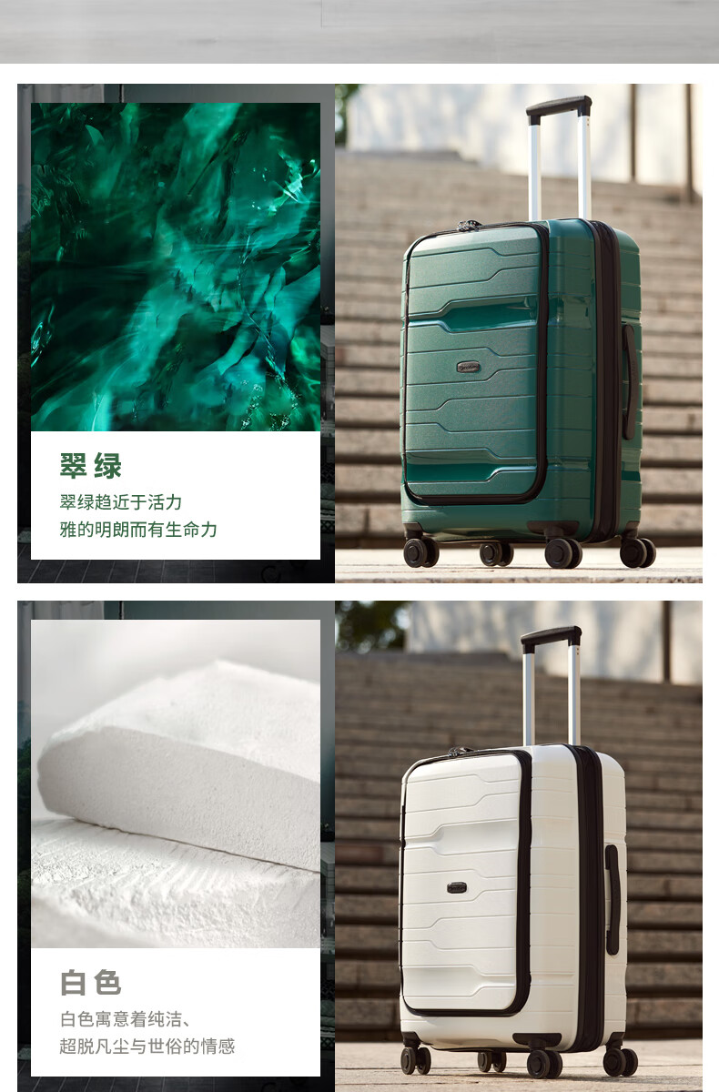 洛克兰轻奢PP商务拉杆箱CRX1201 20寸 白色/黑色/墨绿—rxs