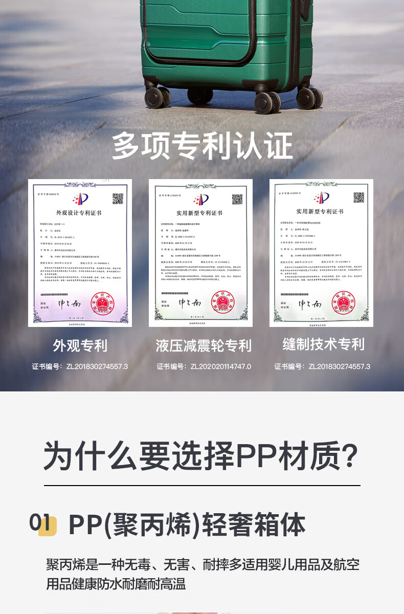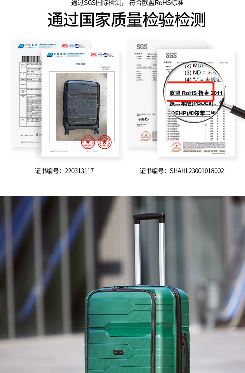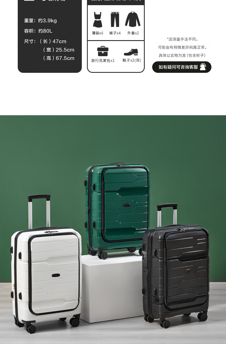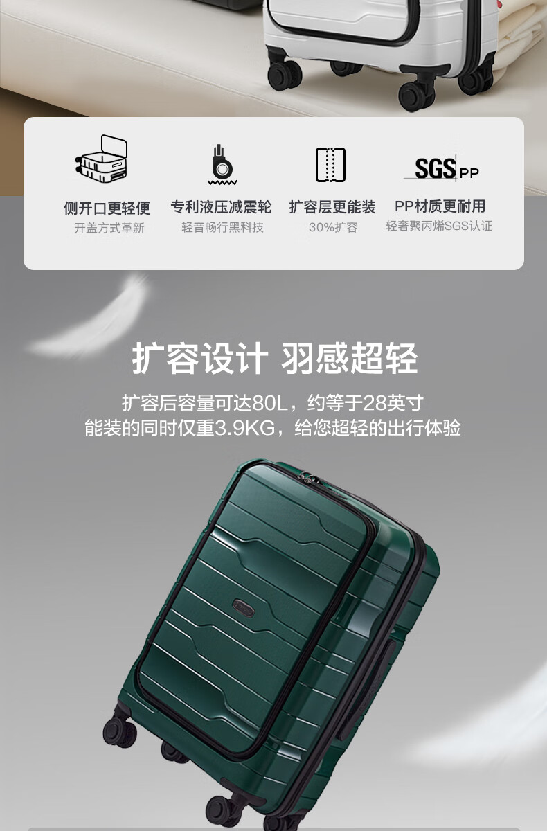 洛克兰轻奢PP商务拉杆箱CRX1201 20寸 白色/黑色/墨绿—rxs