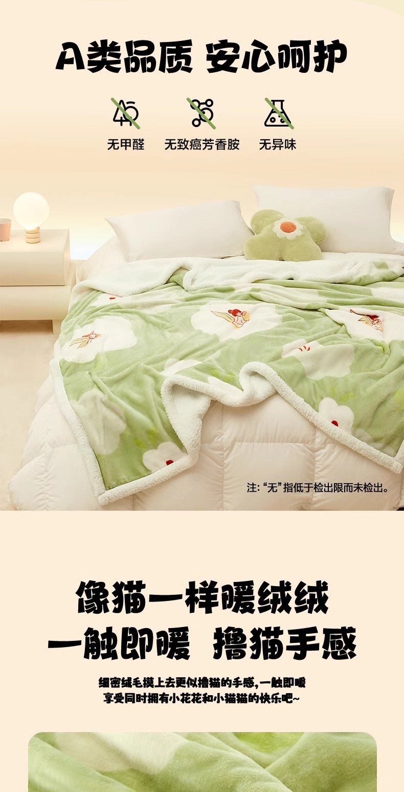 LOVO乐蜗XS VQ0871 花花仙子A类双层暖绒毯 95*145