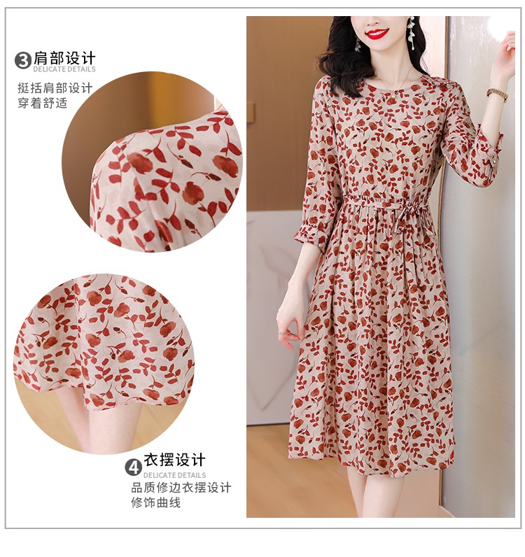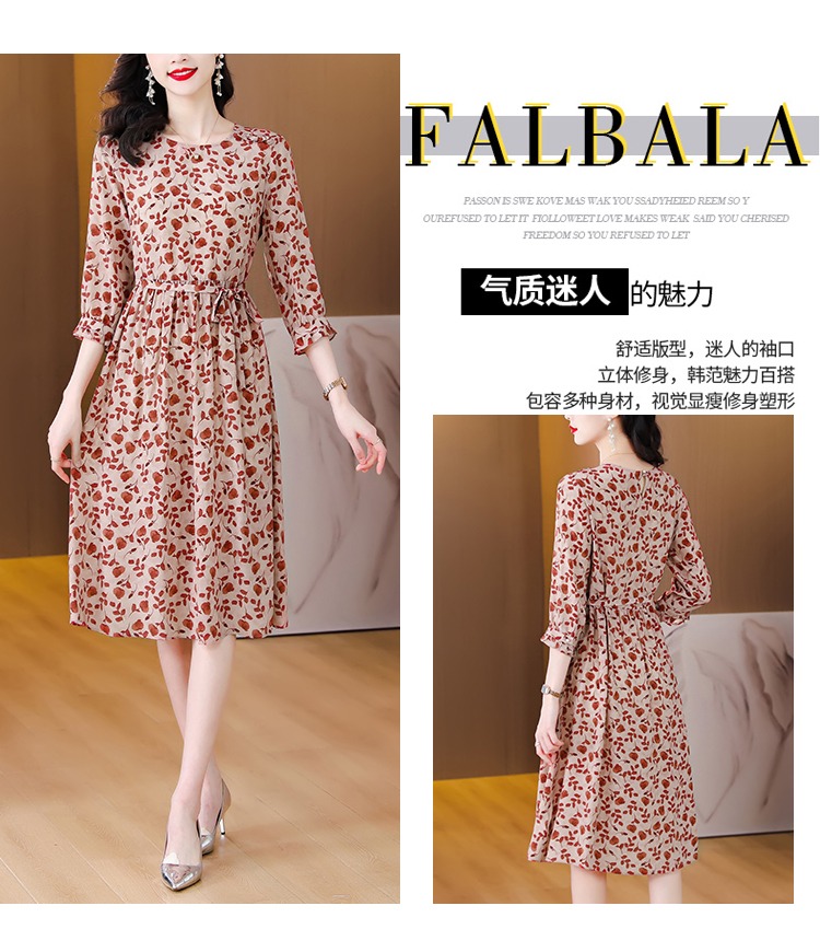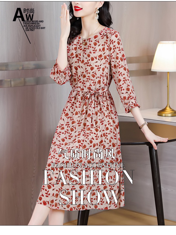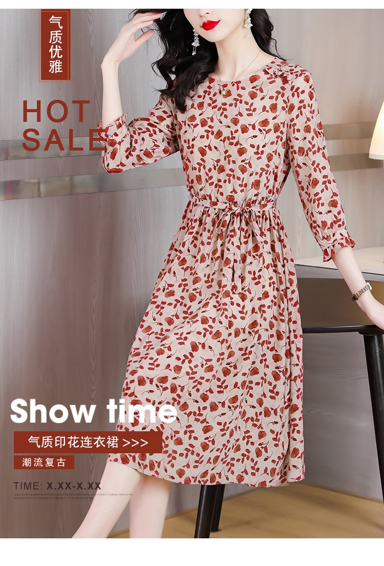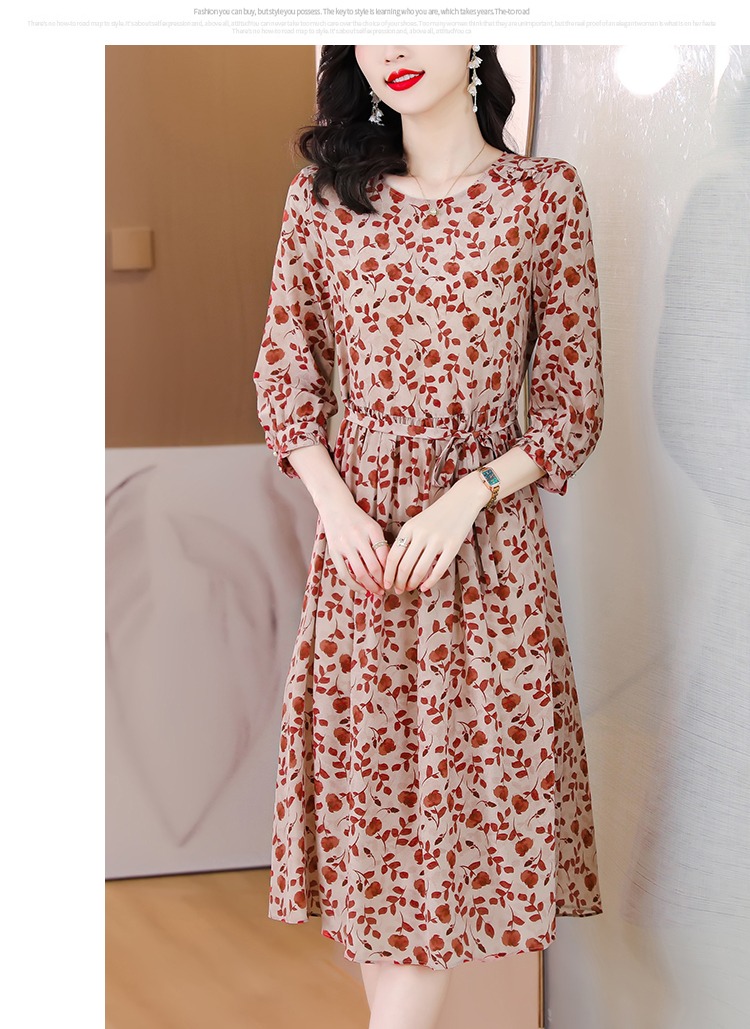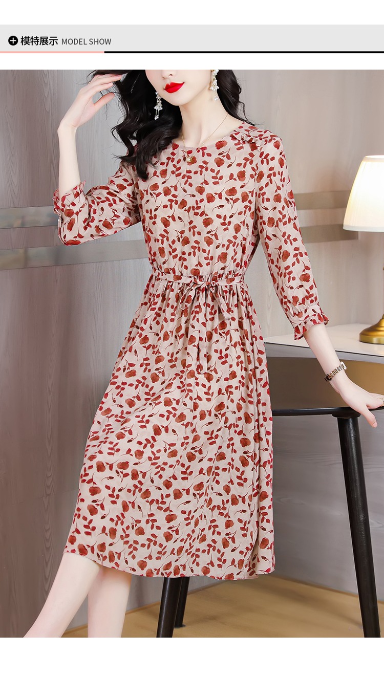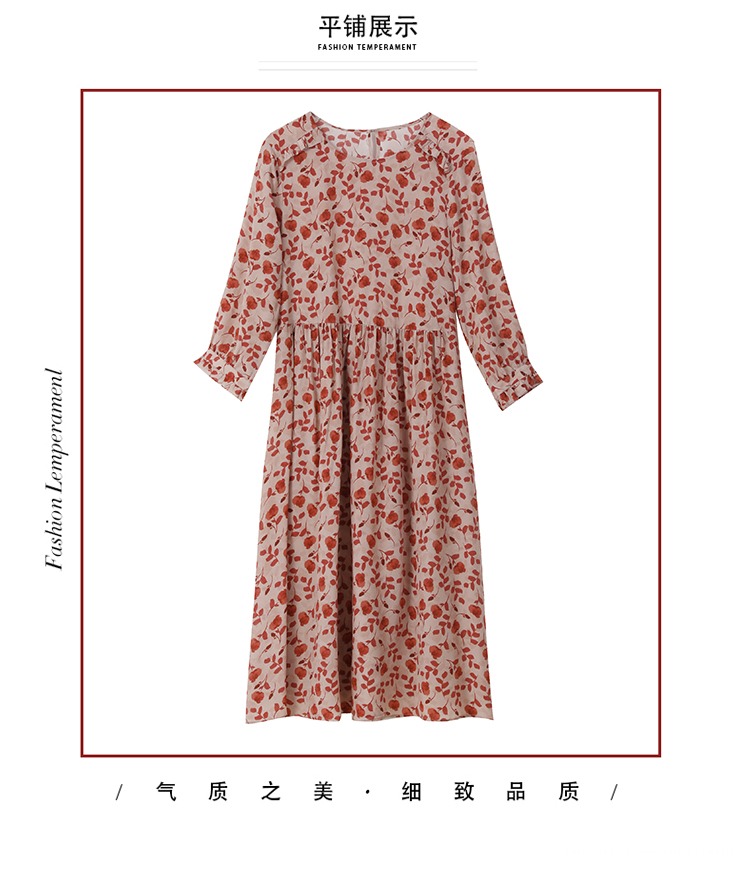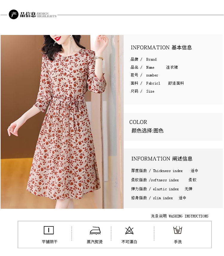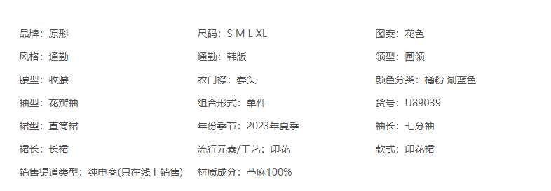 YX【现货7天】碎花苎麻连衣裙女中长款2024夏季新款韩版宽松显瘦直筒裙子