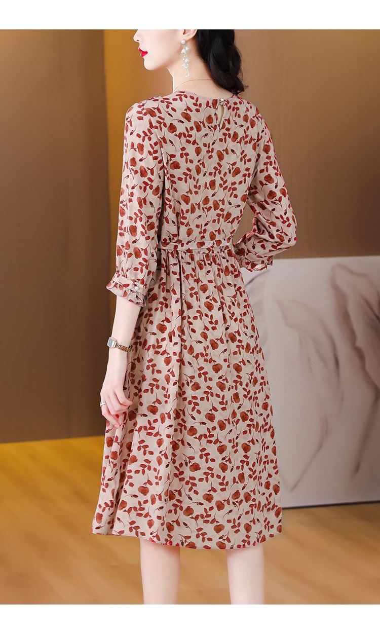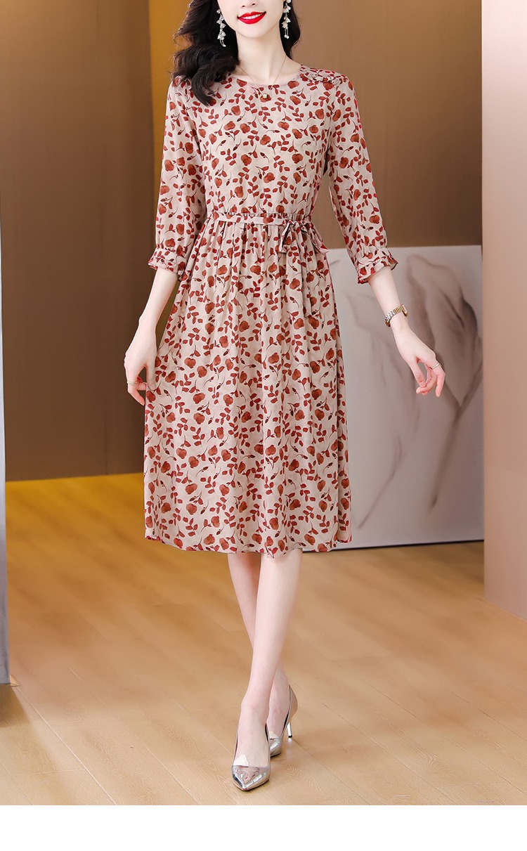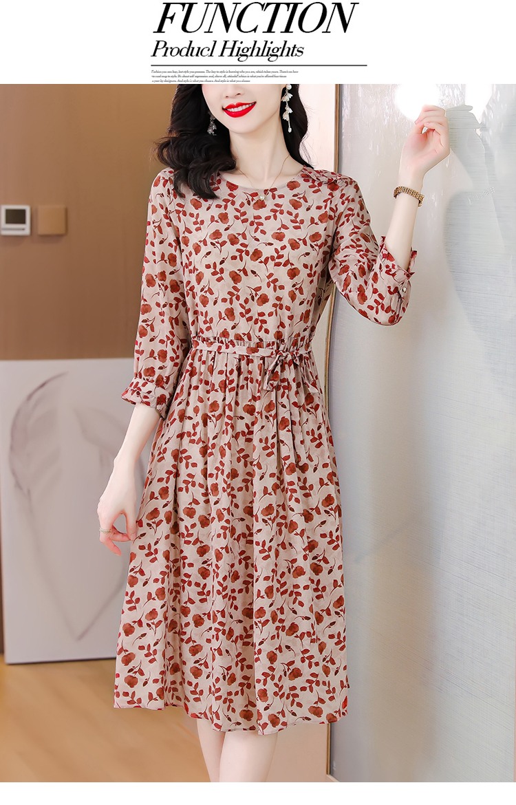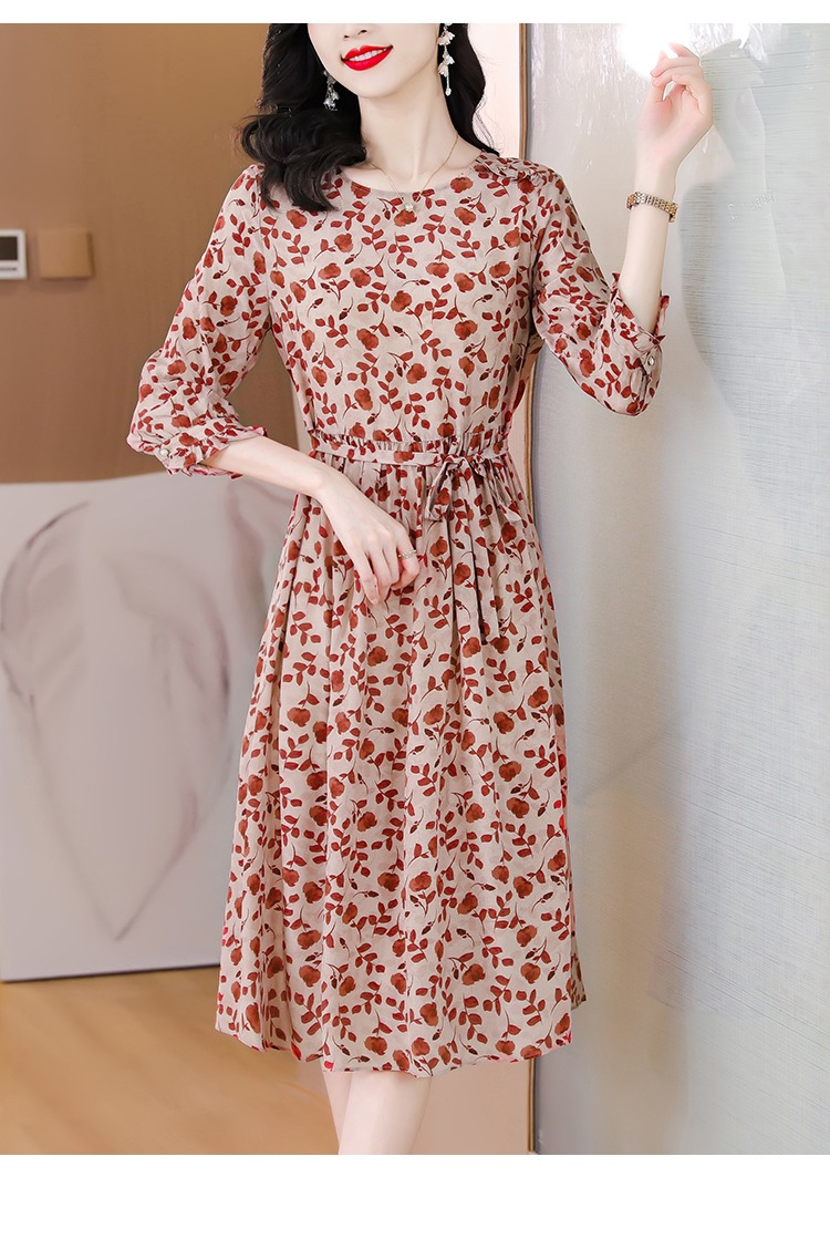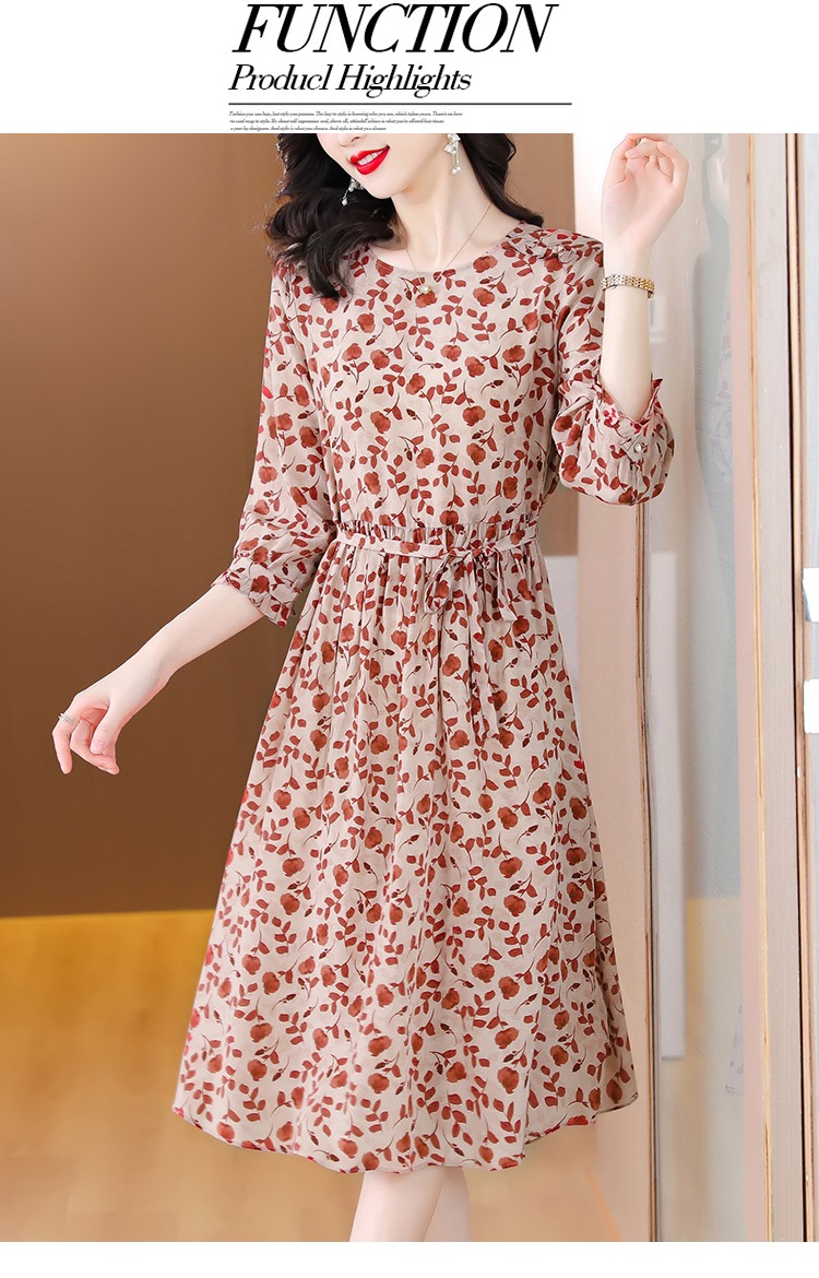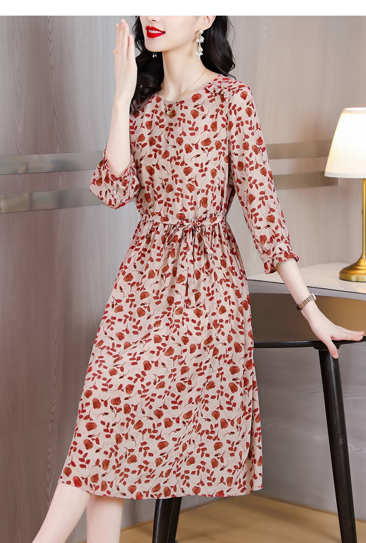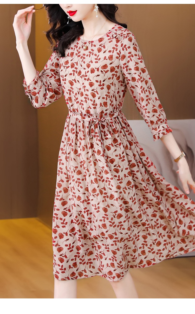 YX【现货7天】碎花苎麻连衣裙女中长款2024夏季新款韩版宽松显瘦直筒裙子