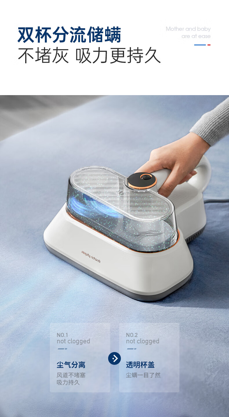 摩飞电器(Morphyrichards)除螨仪 双杯家用手持吸尘除螨机 大吸力床上拍打去螨虫机 热风祛湿紫外线杀菌机MR3101