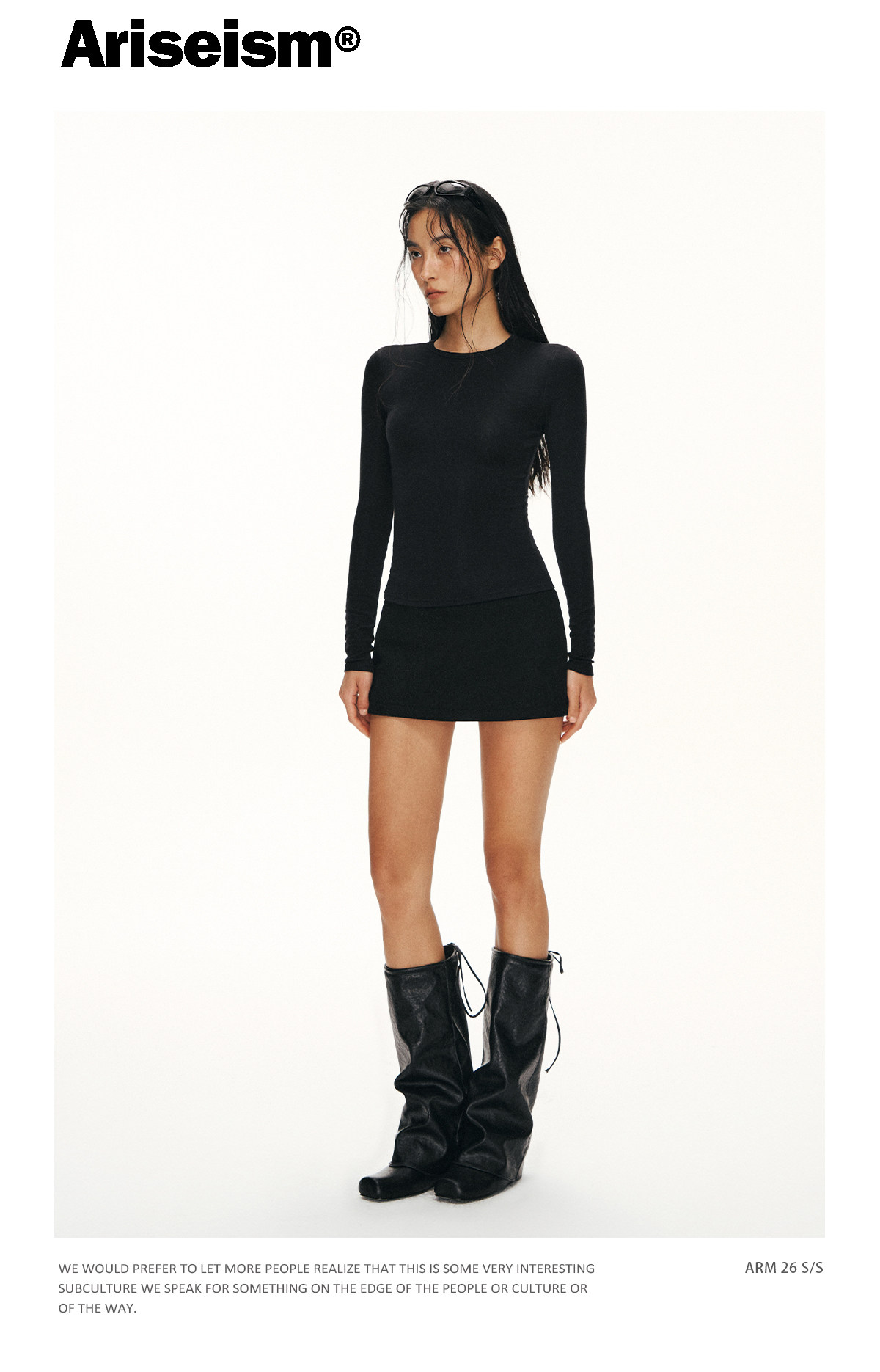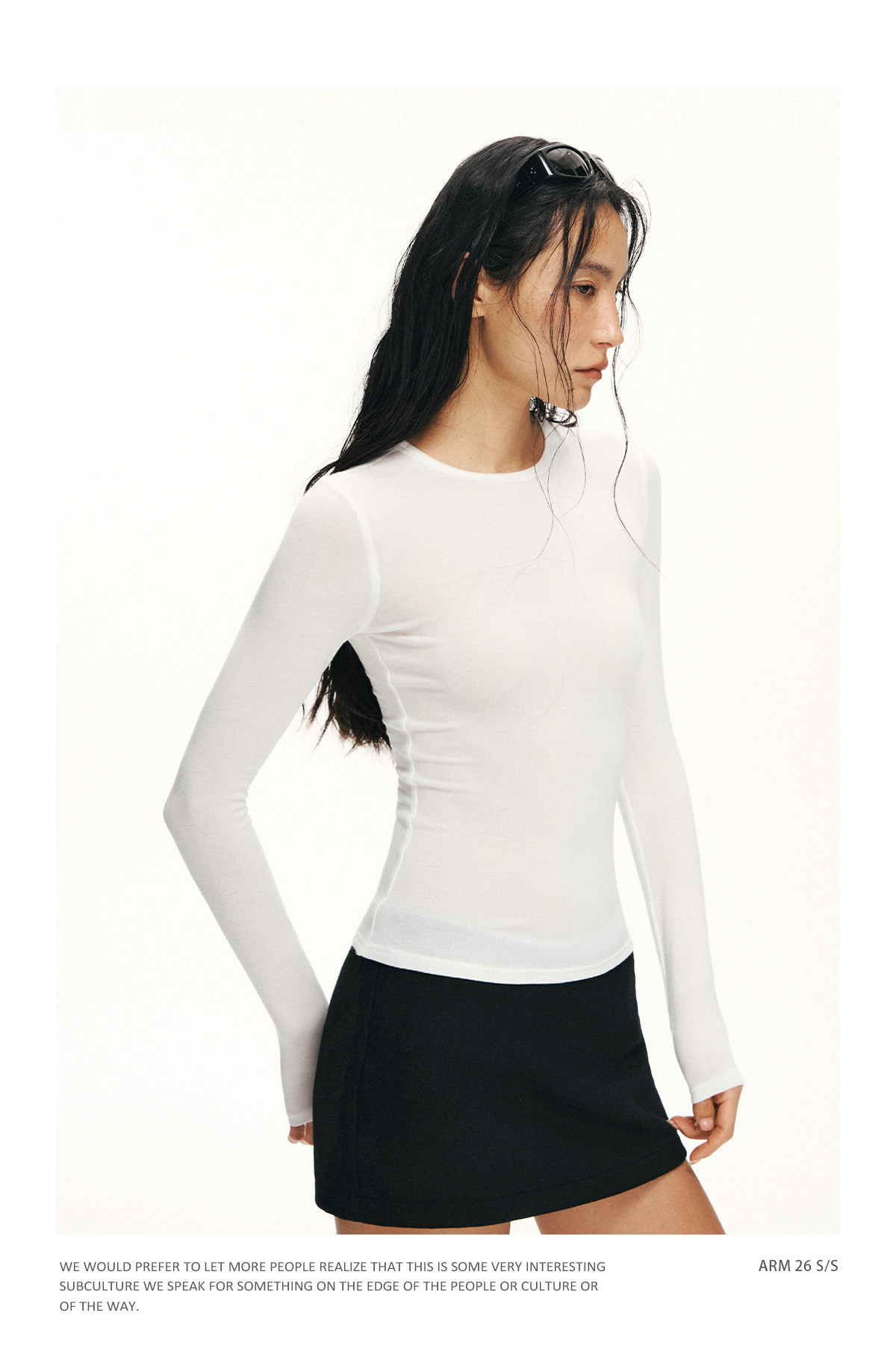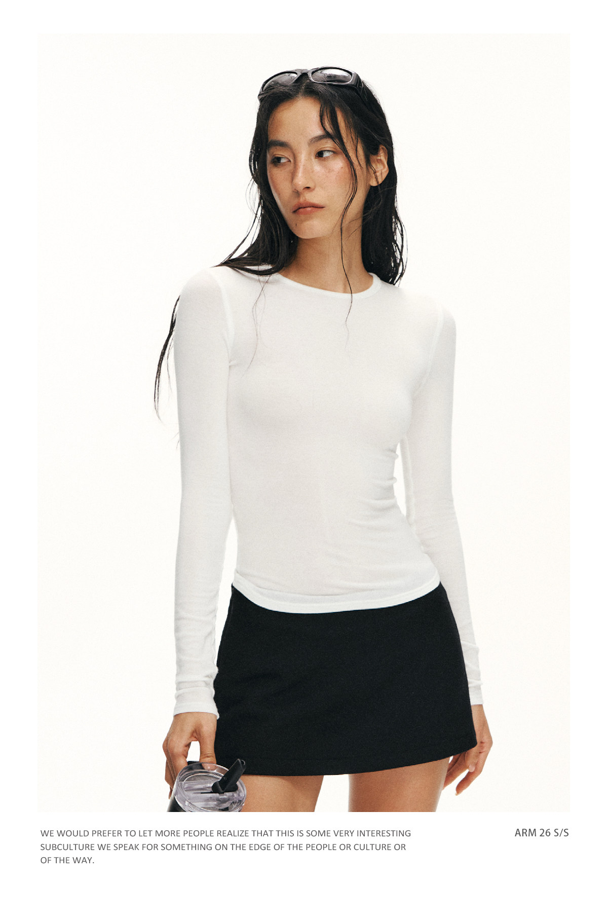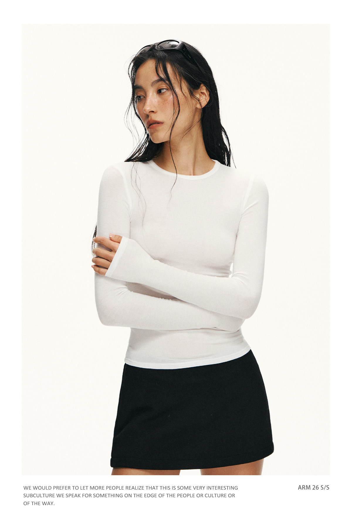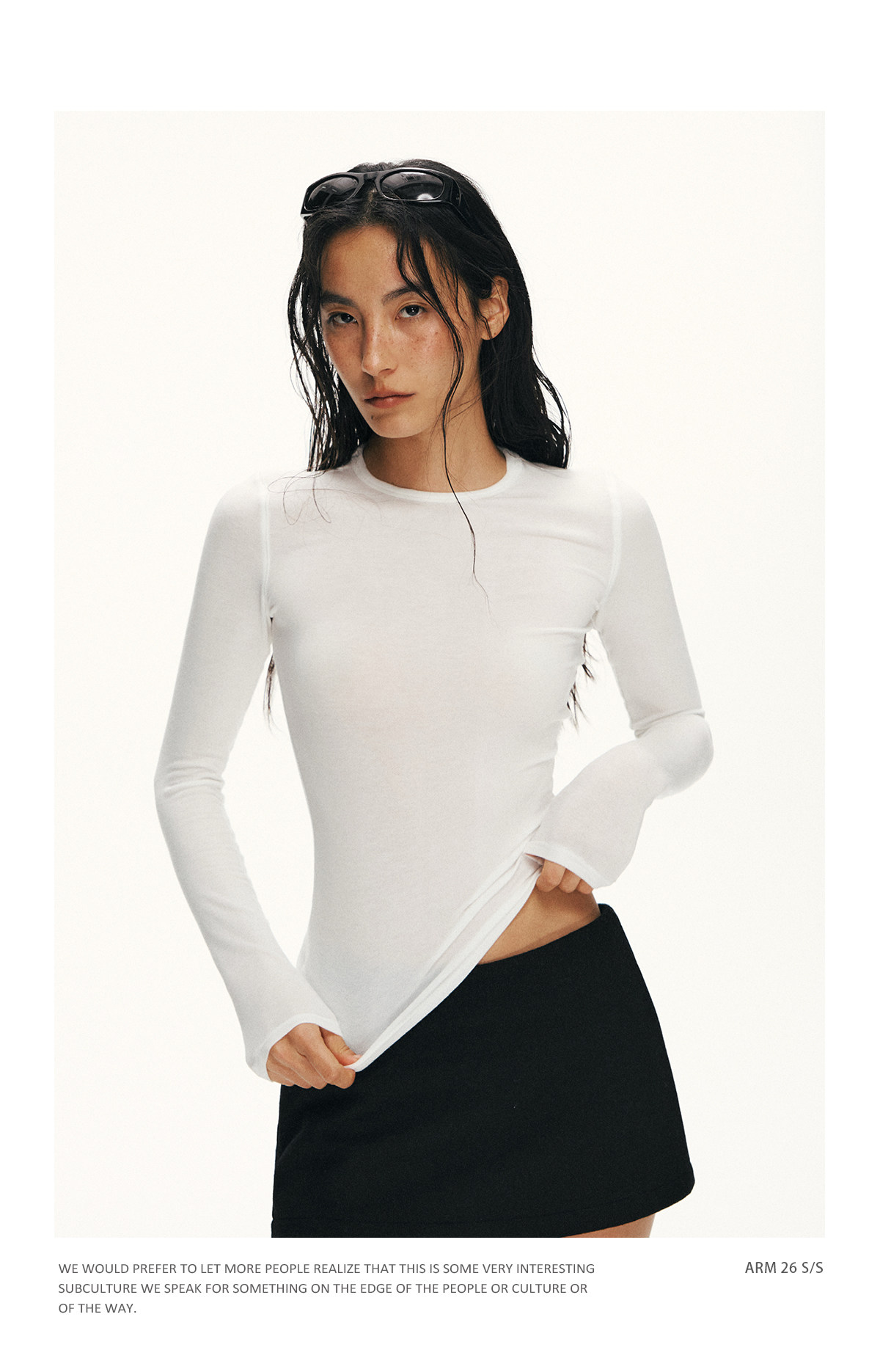 Ariseism 圆领短款长袖针织衫女春季新款内搭上衣修身毛衣打底衫