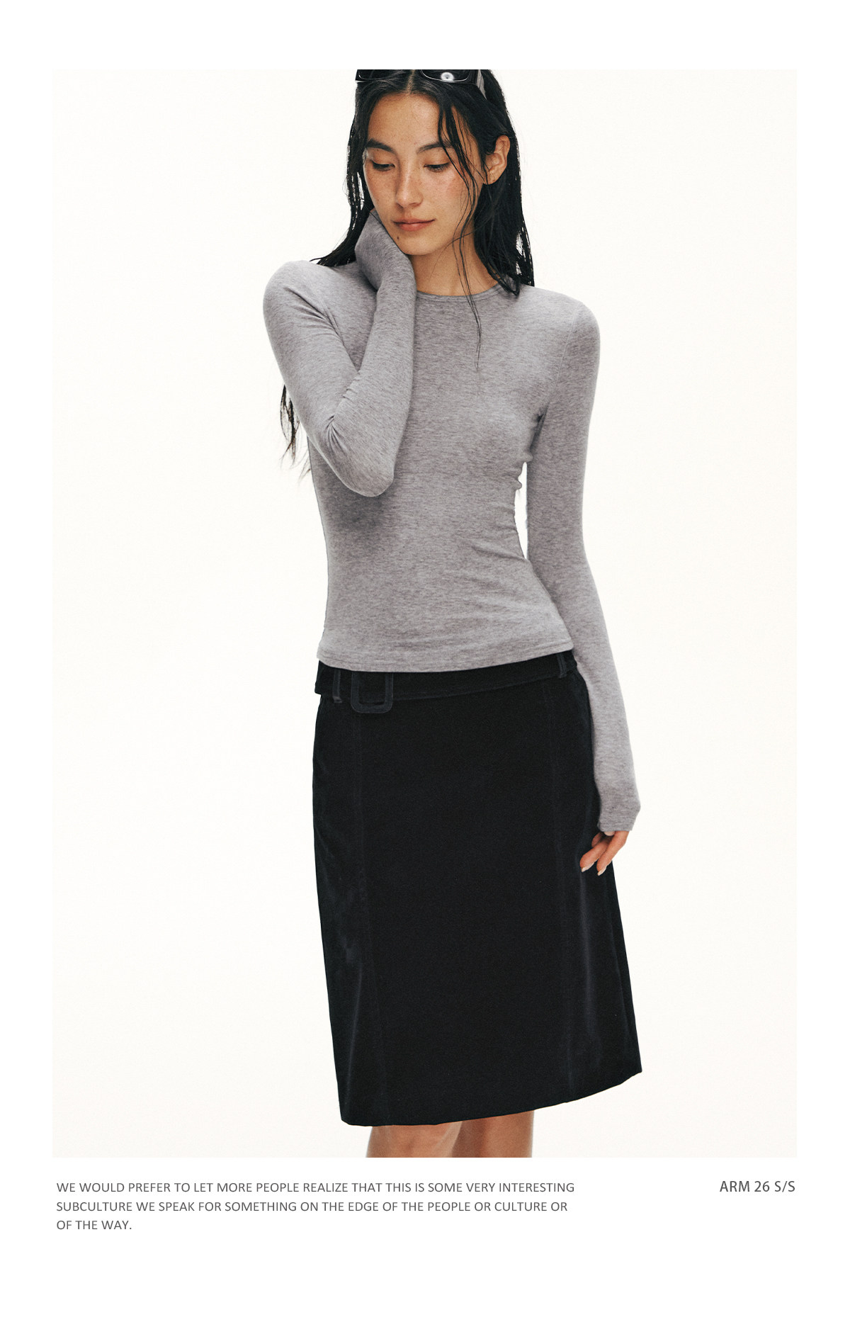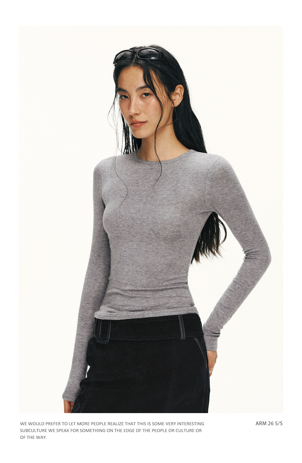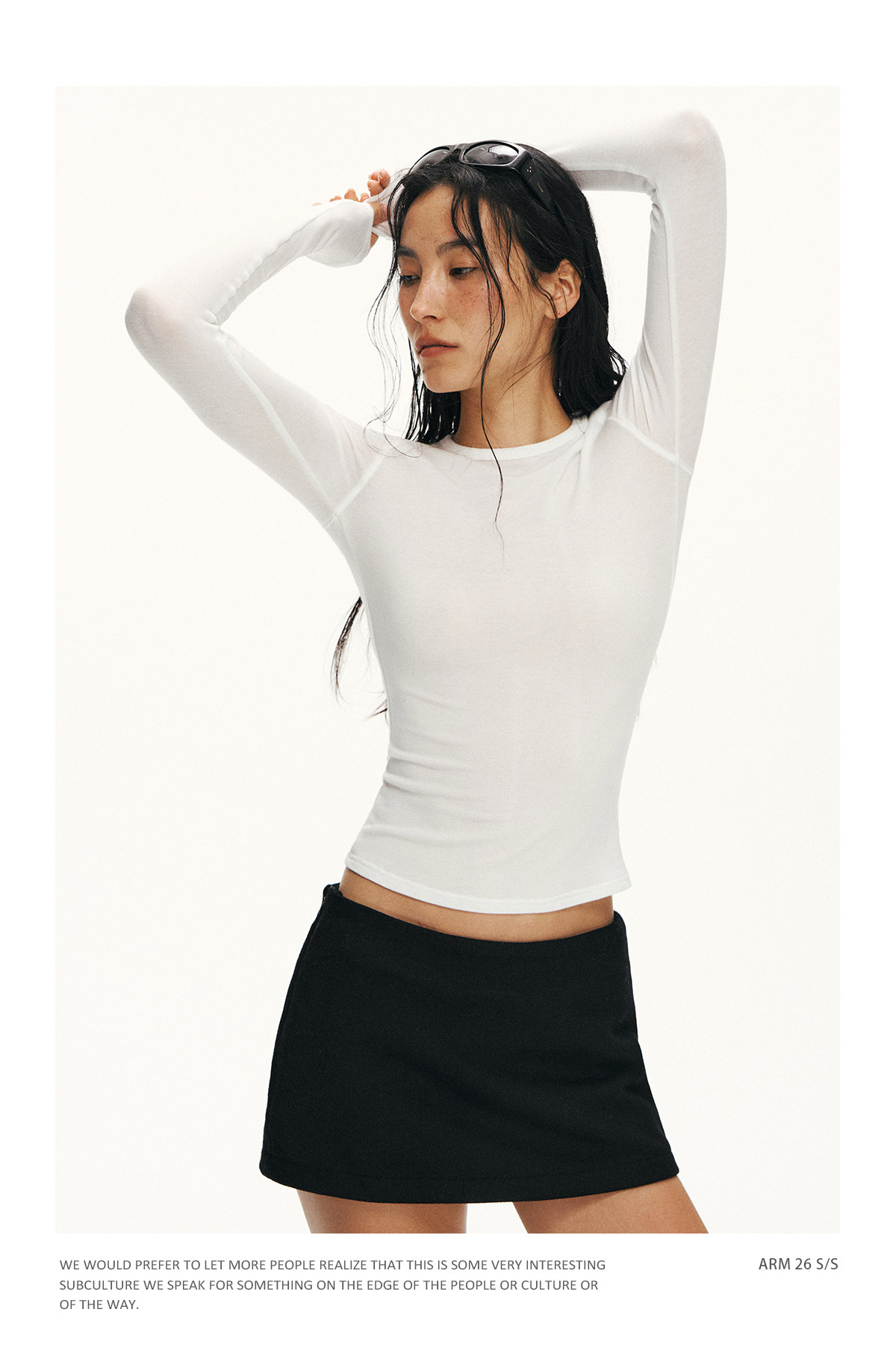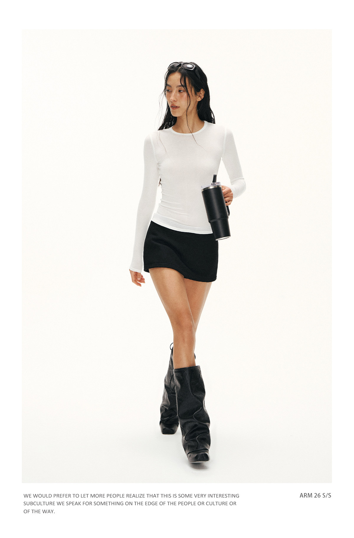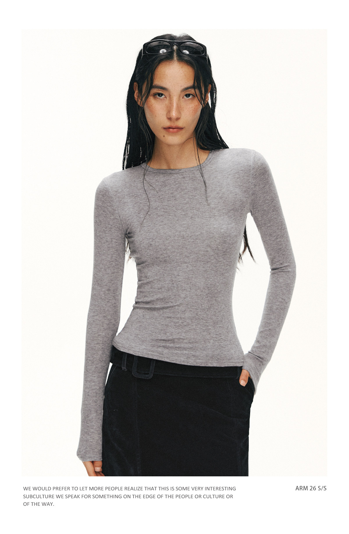 Ariseism 圆领短款长袖针织衫女春季新款内搭上衣修身毛衣打底衫