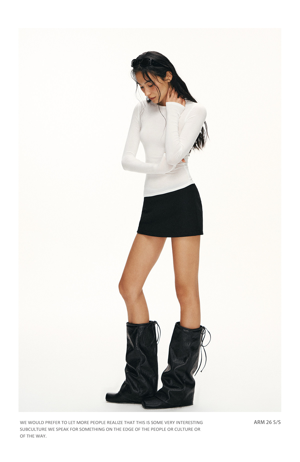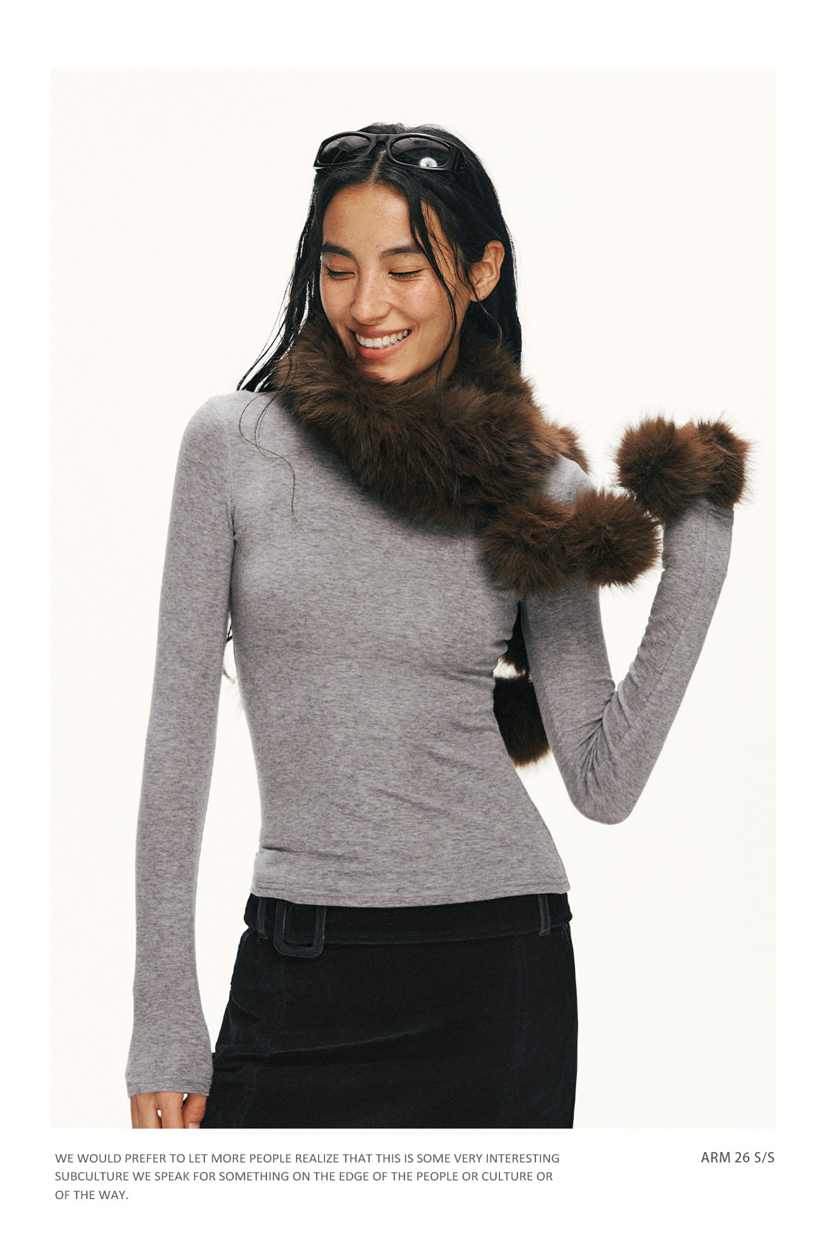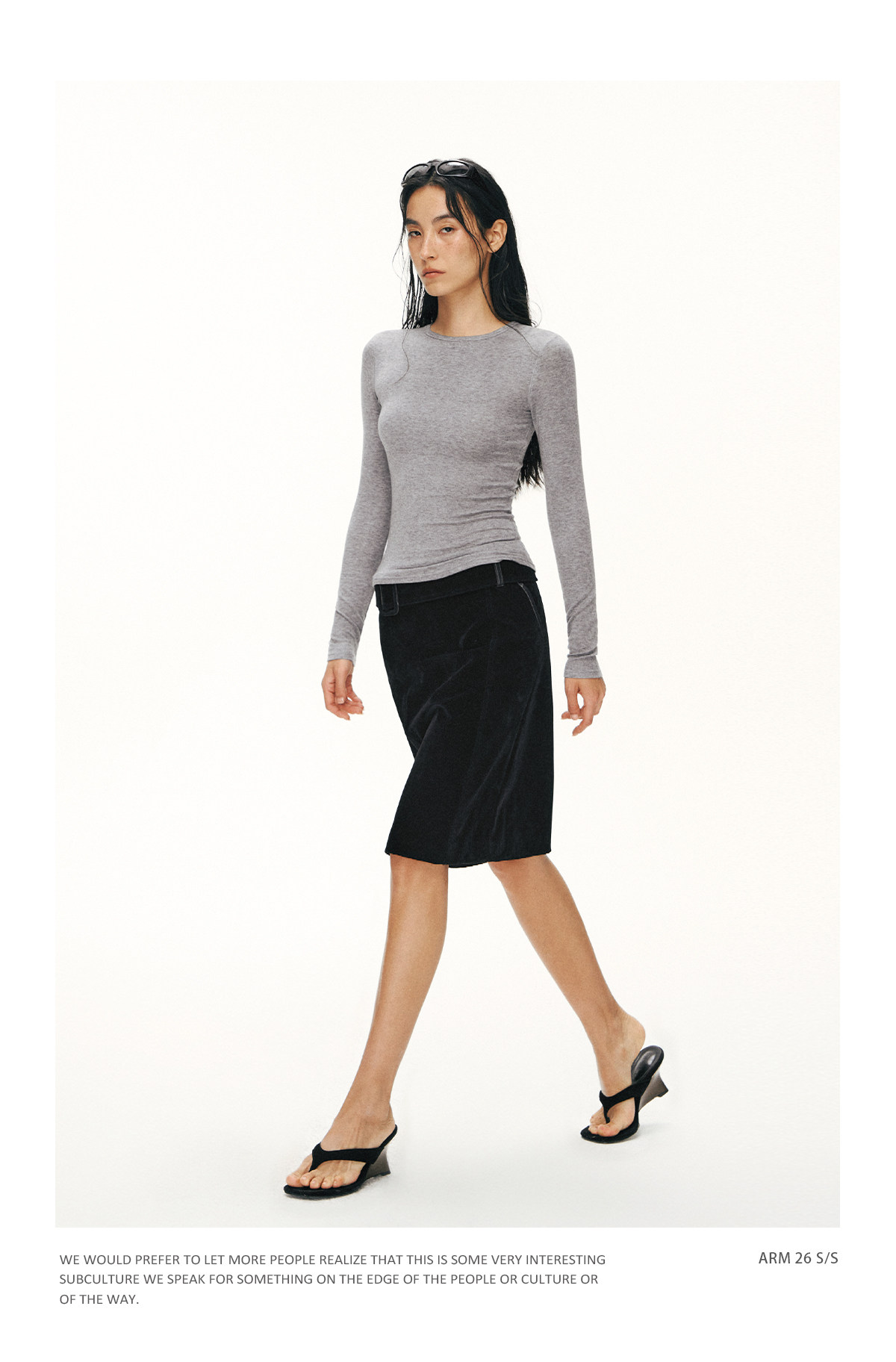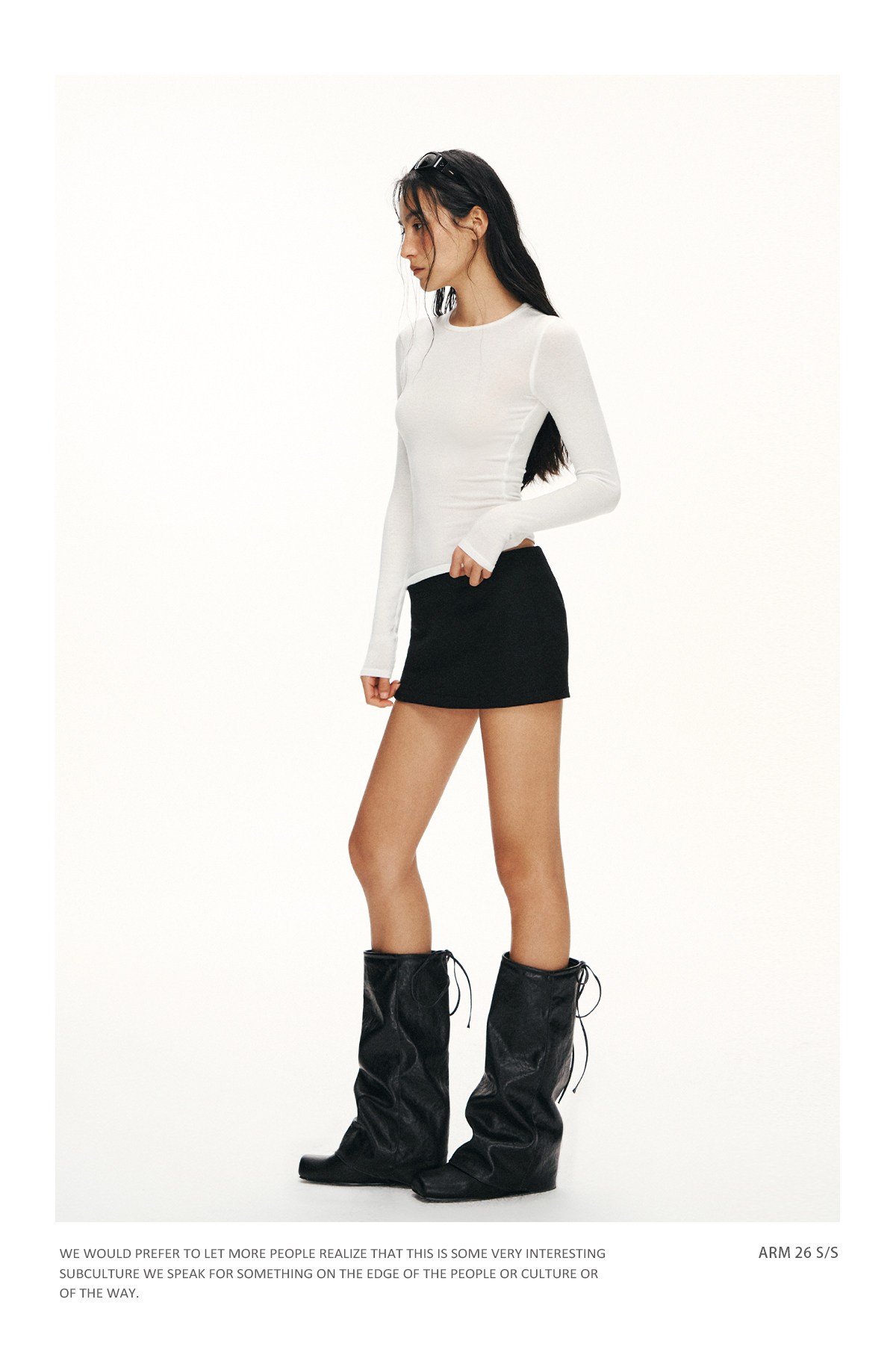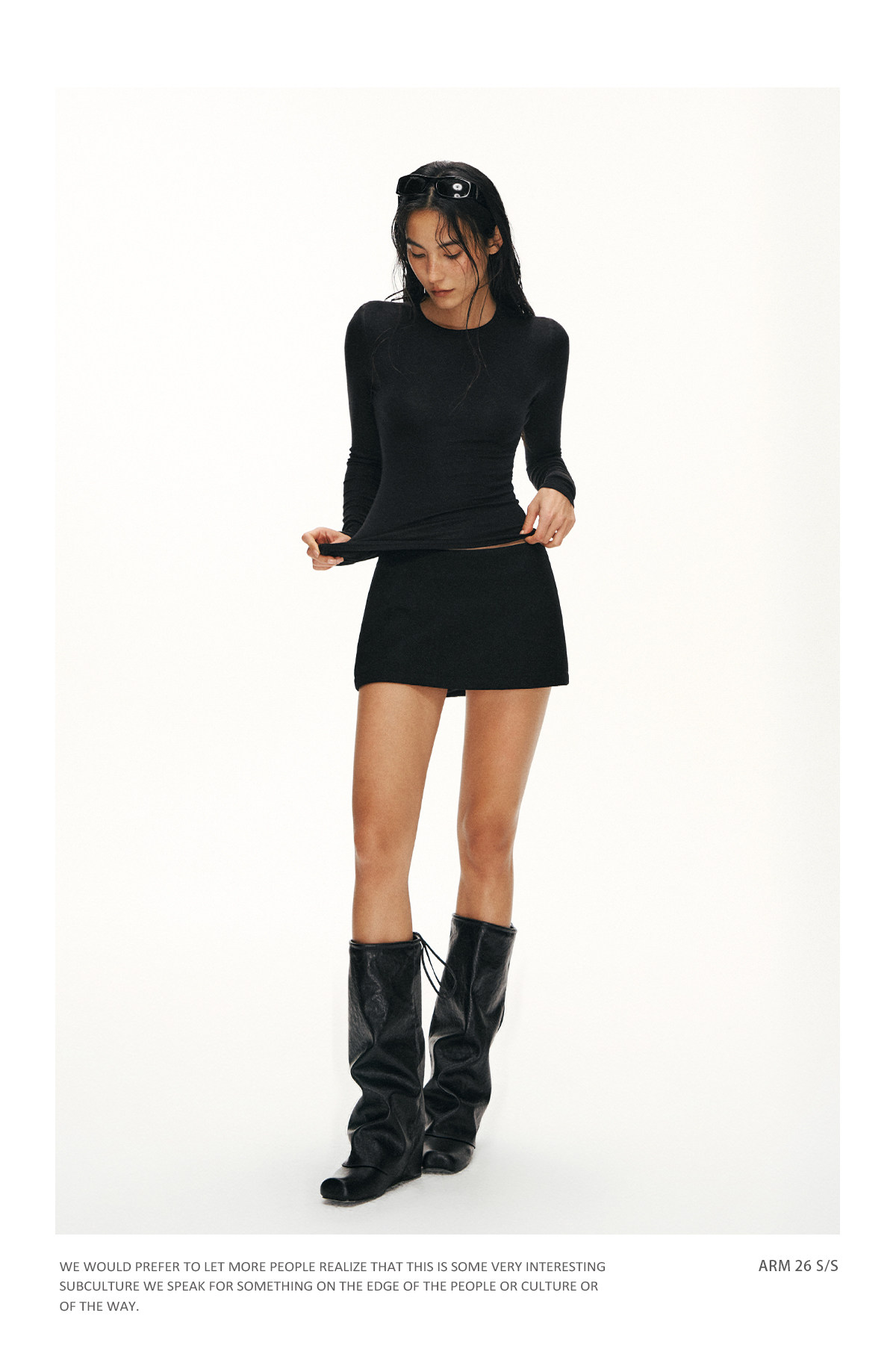 Ariseism 圆领短款长袖针织衫女春季新款内搭上衣修身毛衣打底衫