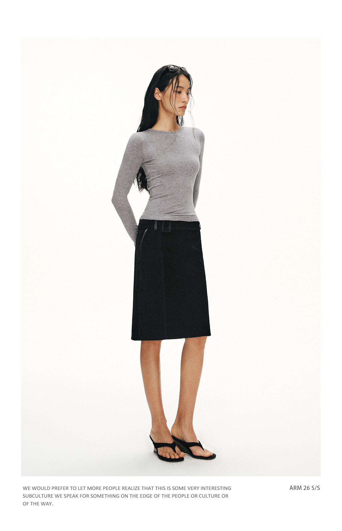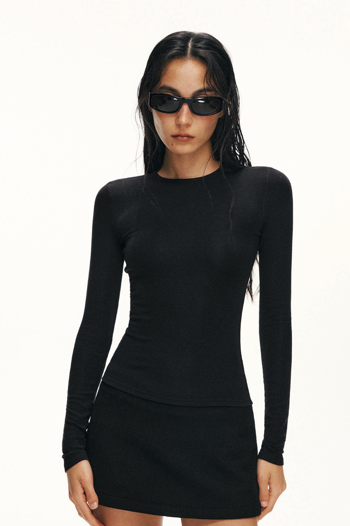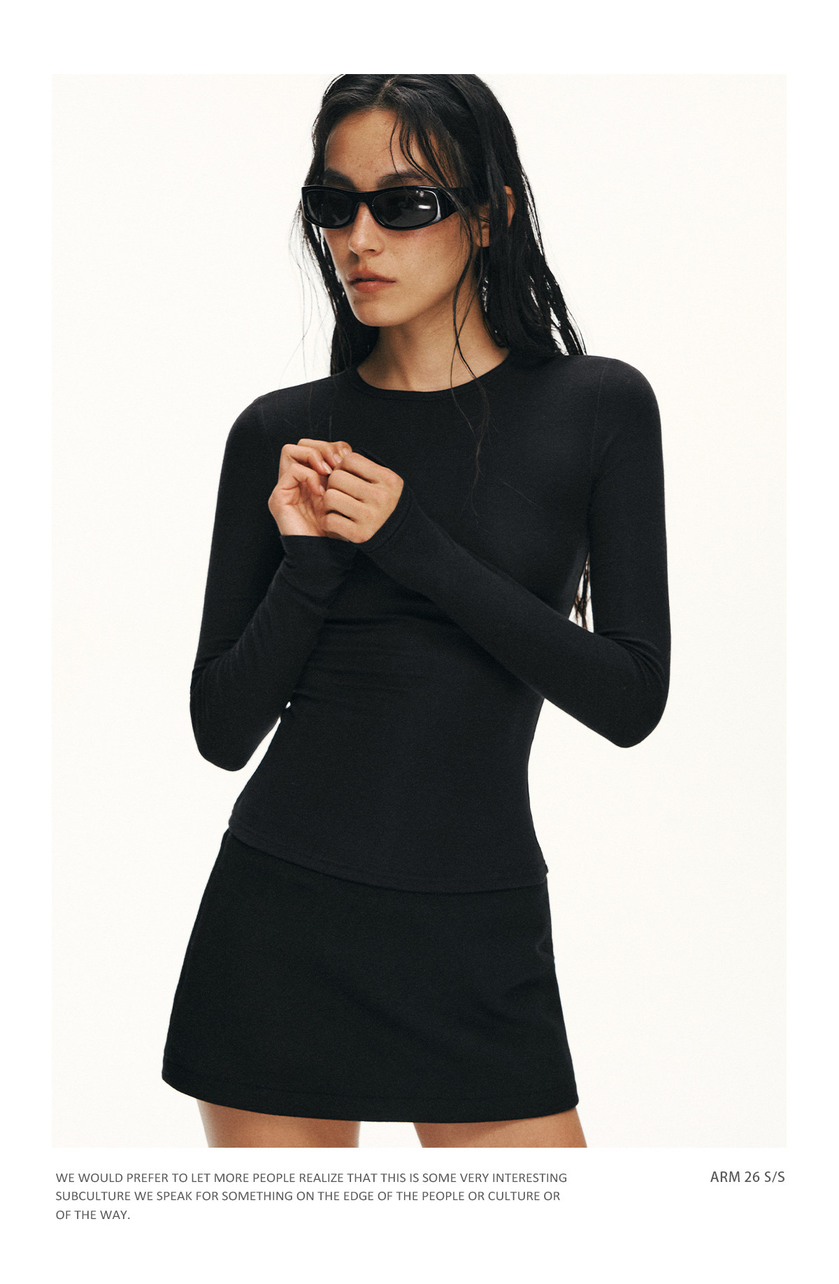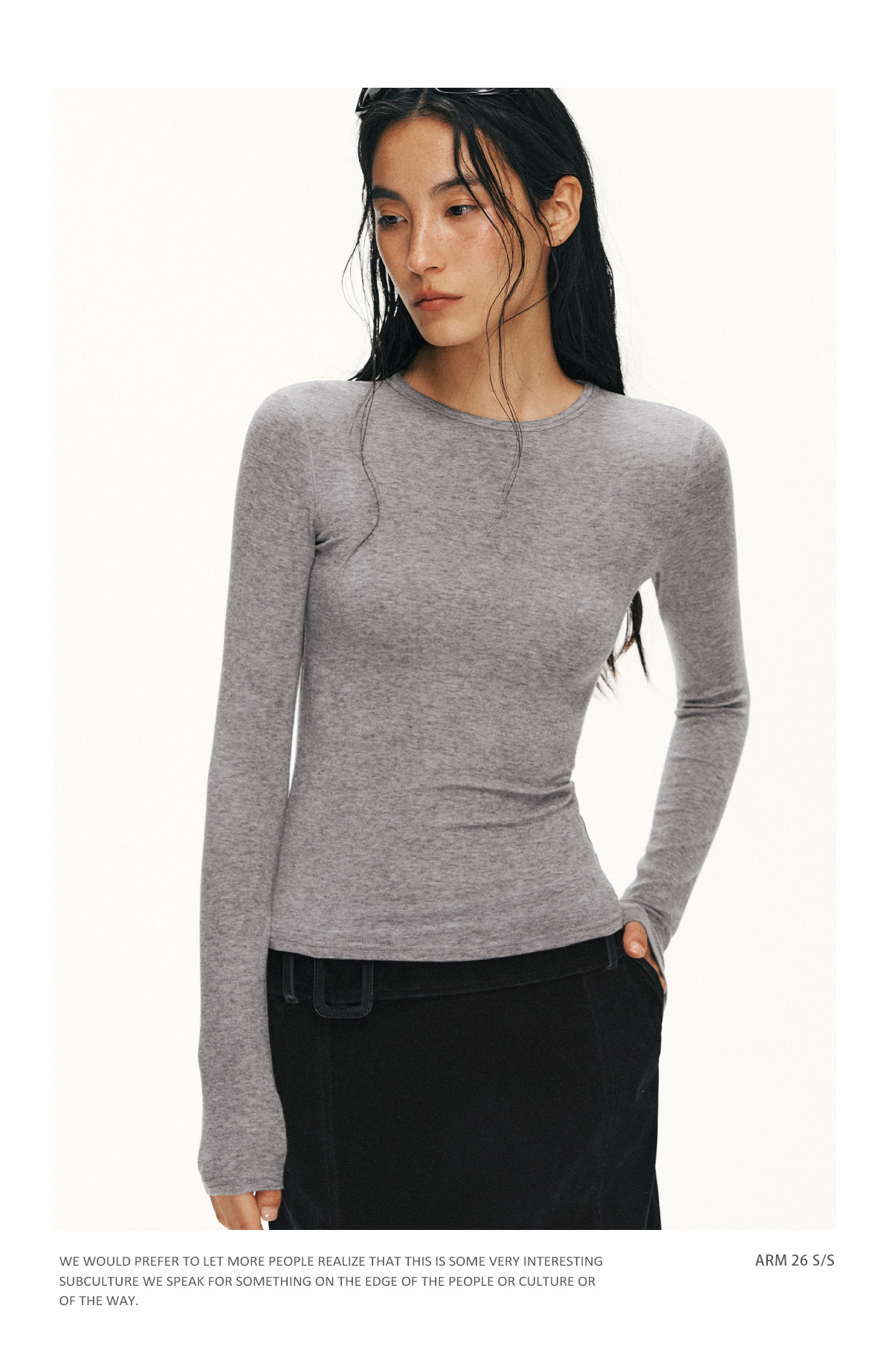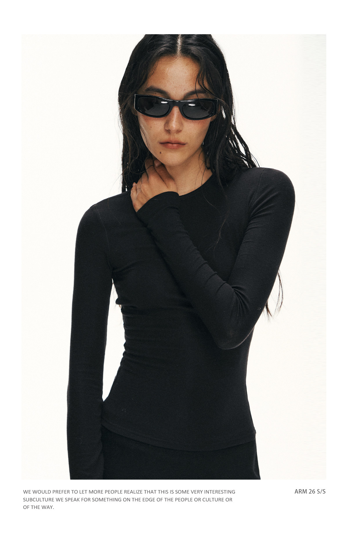 Ariseism黑标 莱赛尔羊毛混纺长袖T恤女春季新款上衣
