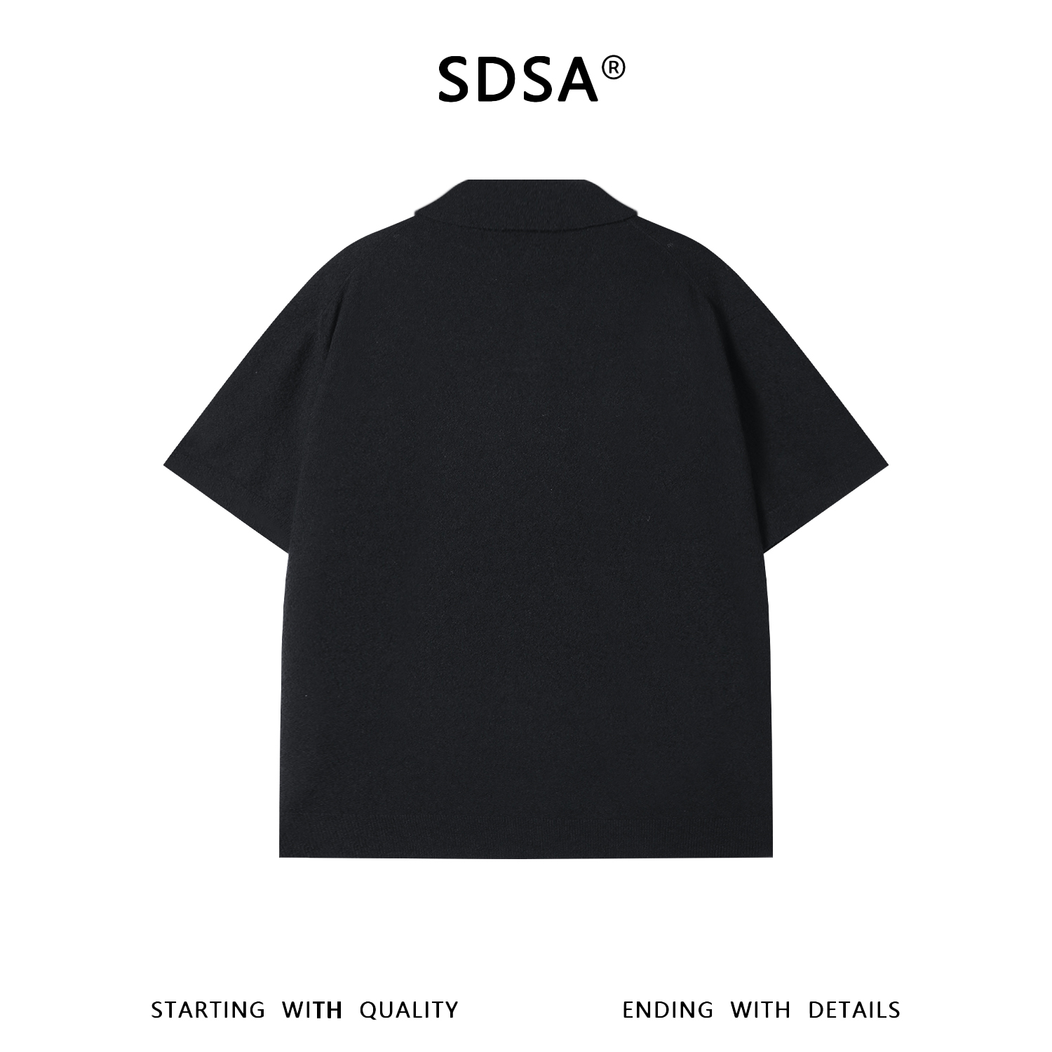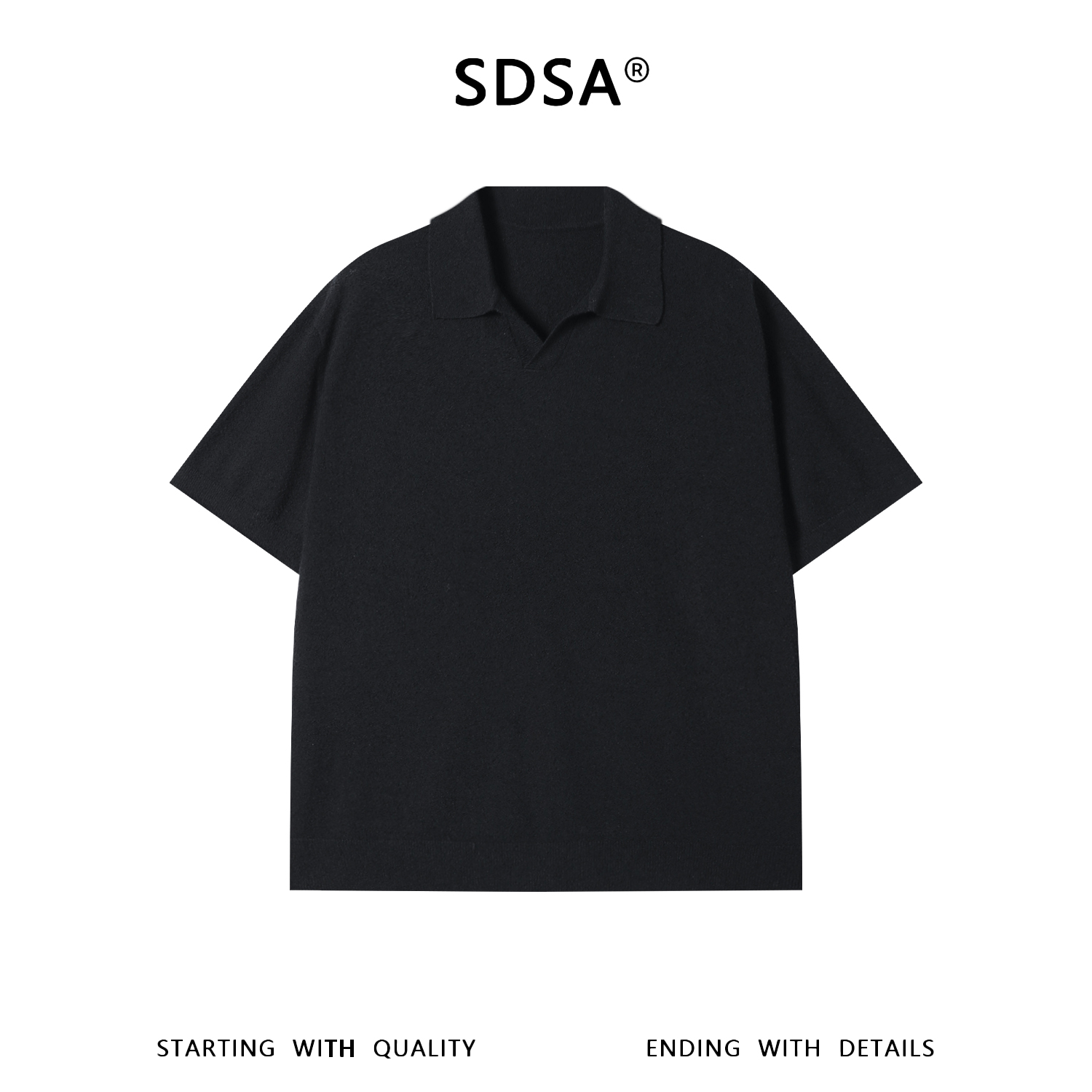 SDSA男装2026新款高贵轻奢老钱风纯色肌理海鸥领短袖T恤百搭时尚