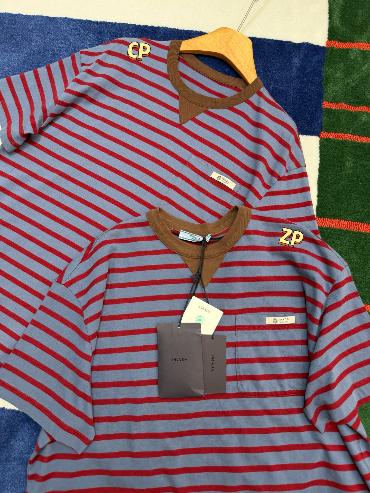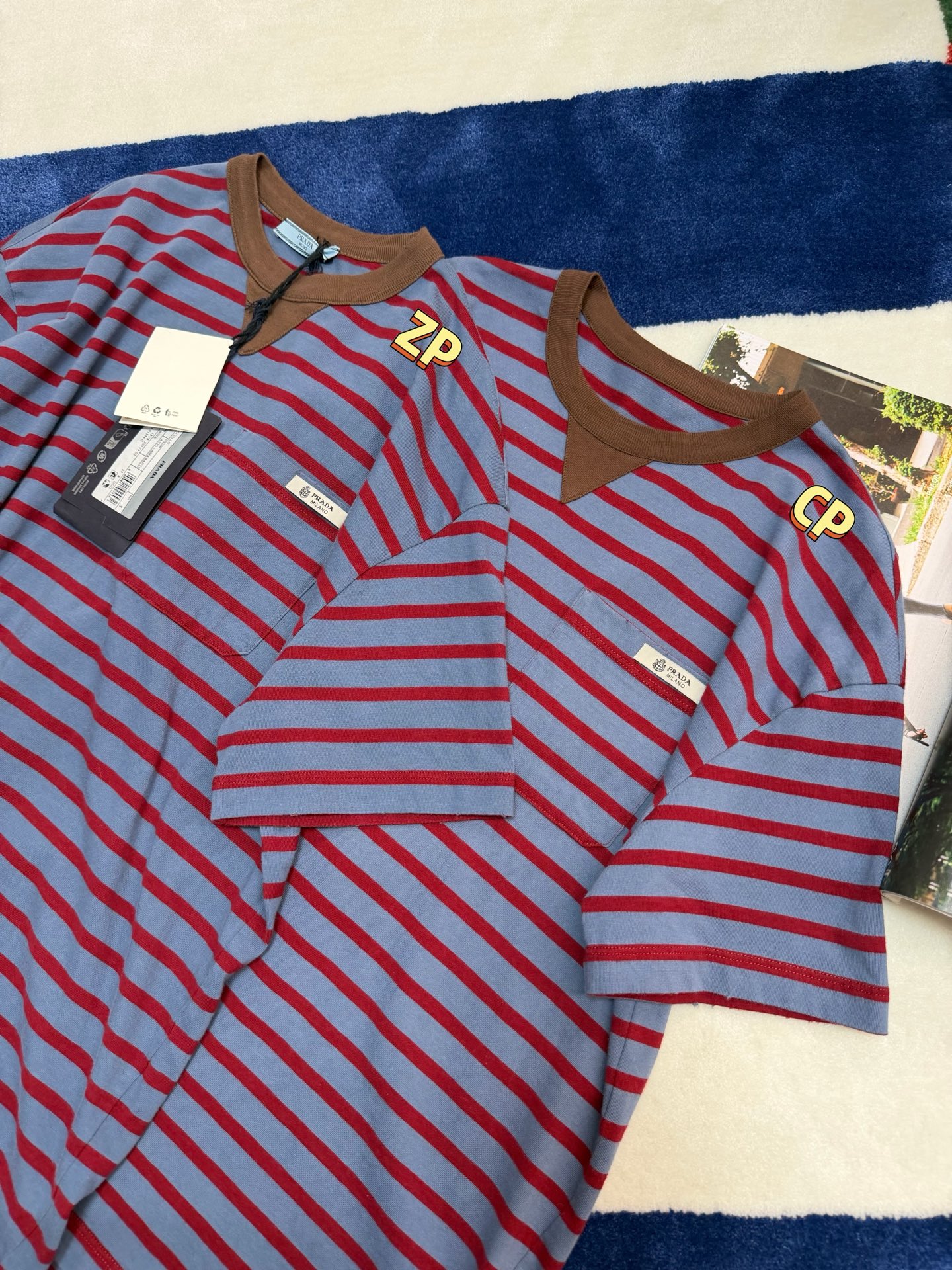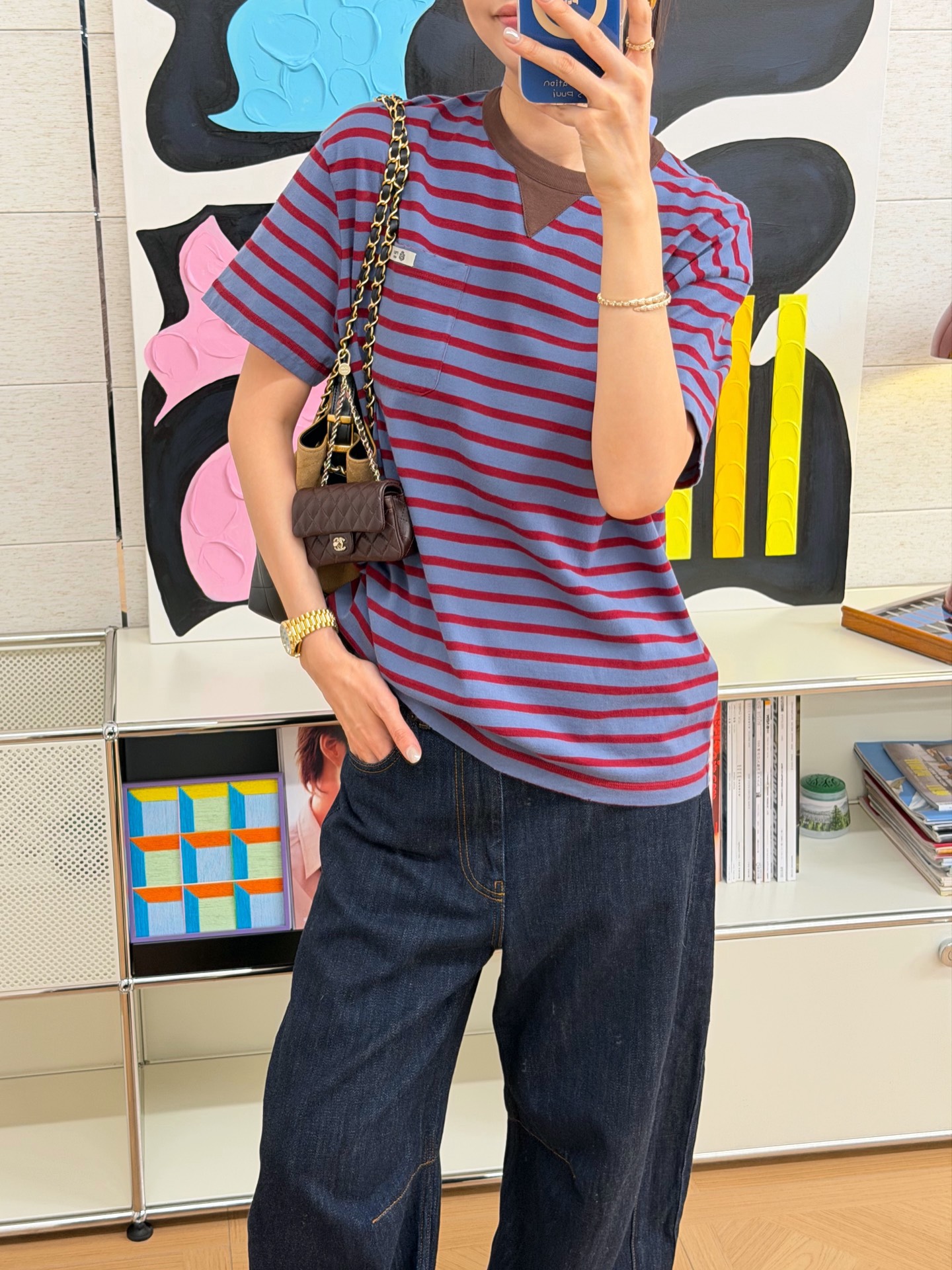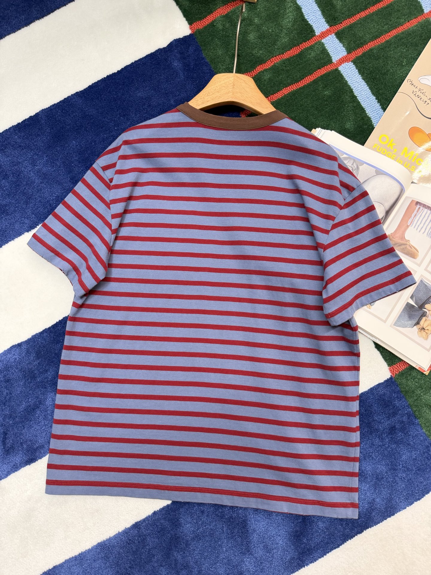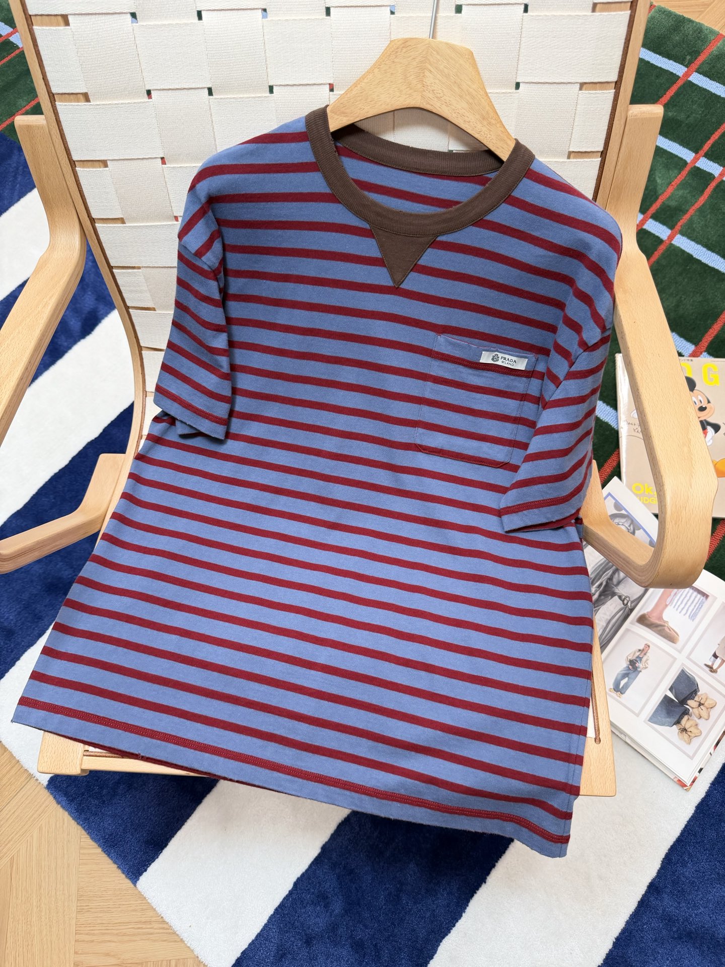 最新款 条纹T恤,空军蓝➕红色拼接🟰打翻调色盘的艺术感,咖色螺纹领口复古buff叠满,黄皮穿直接冷白皮〰️手感细腻舒适,完美修饰身材,久穿不腻,这件穿起来真的超级好看,定制定染面料,超级显白😜上身洋气爆啦, 回头率100%,随意搭配都好看,轻松拥有氛围感 🔜超级推荐🉑️条纹脑袋别错过‼️码数SML