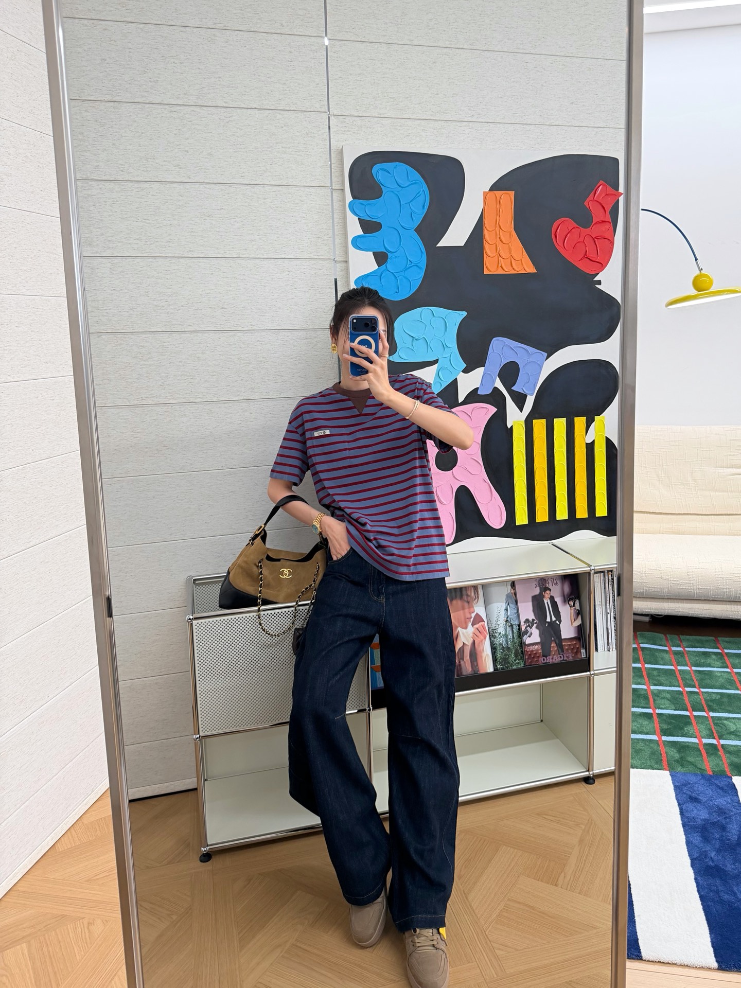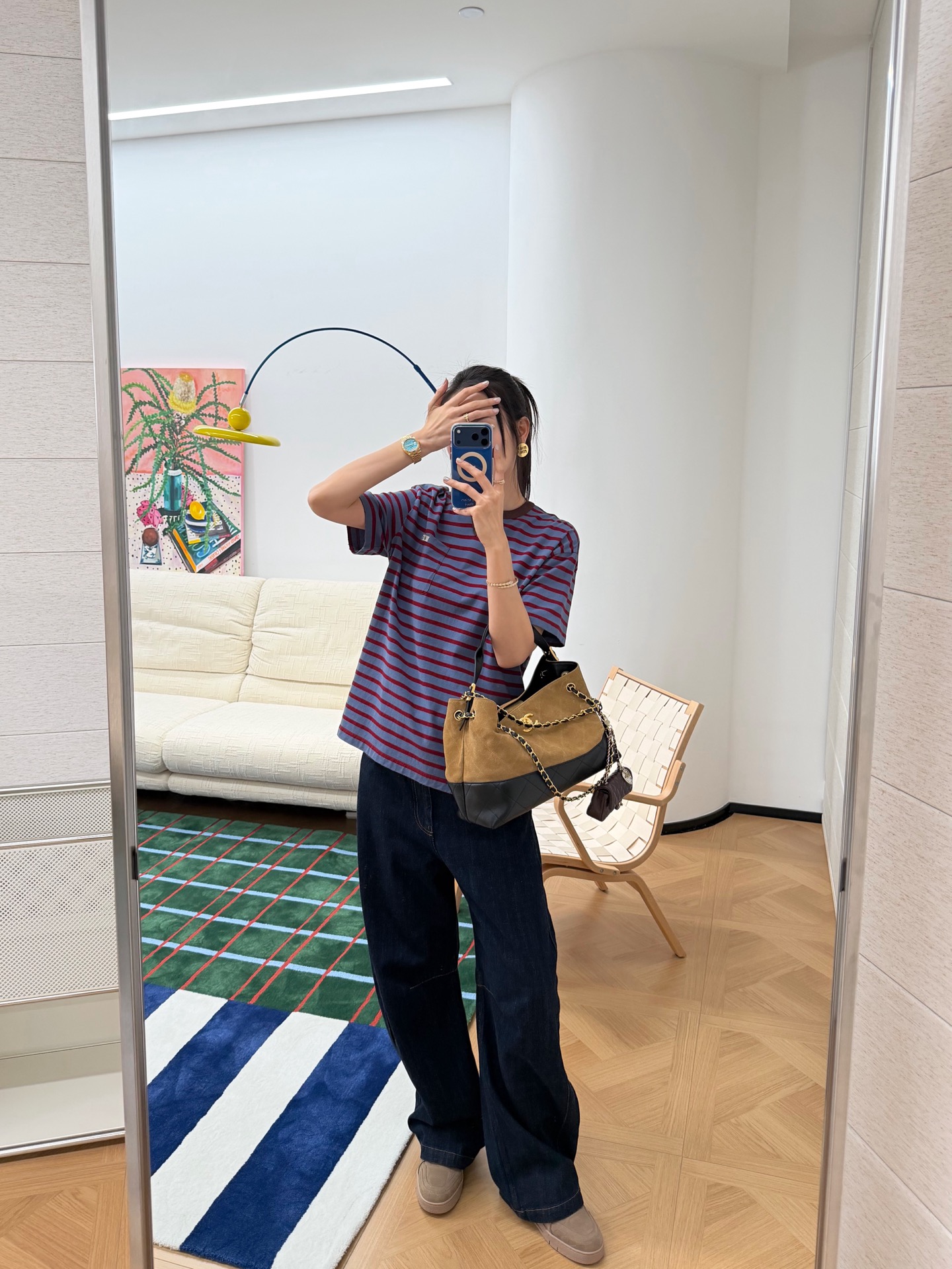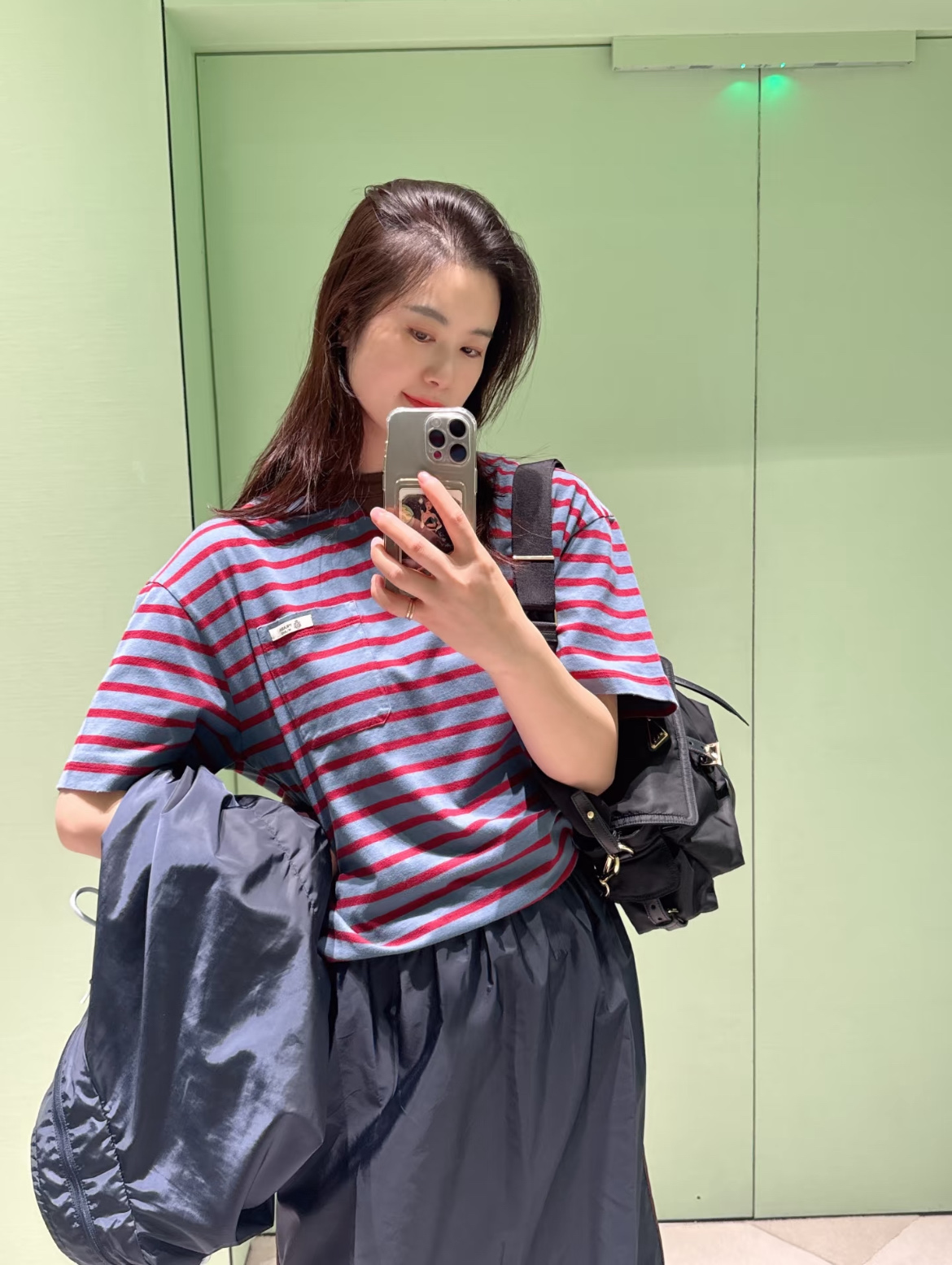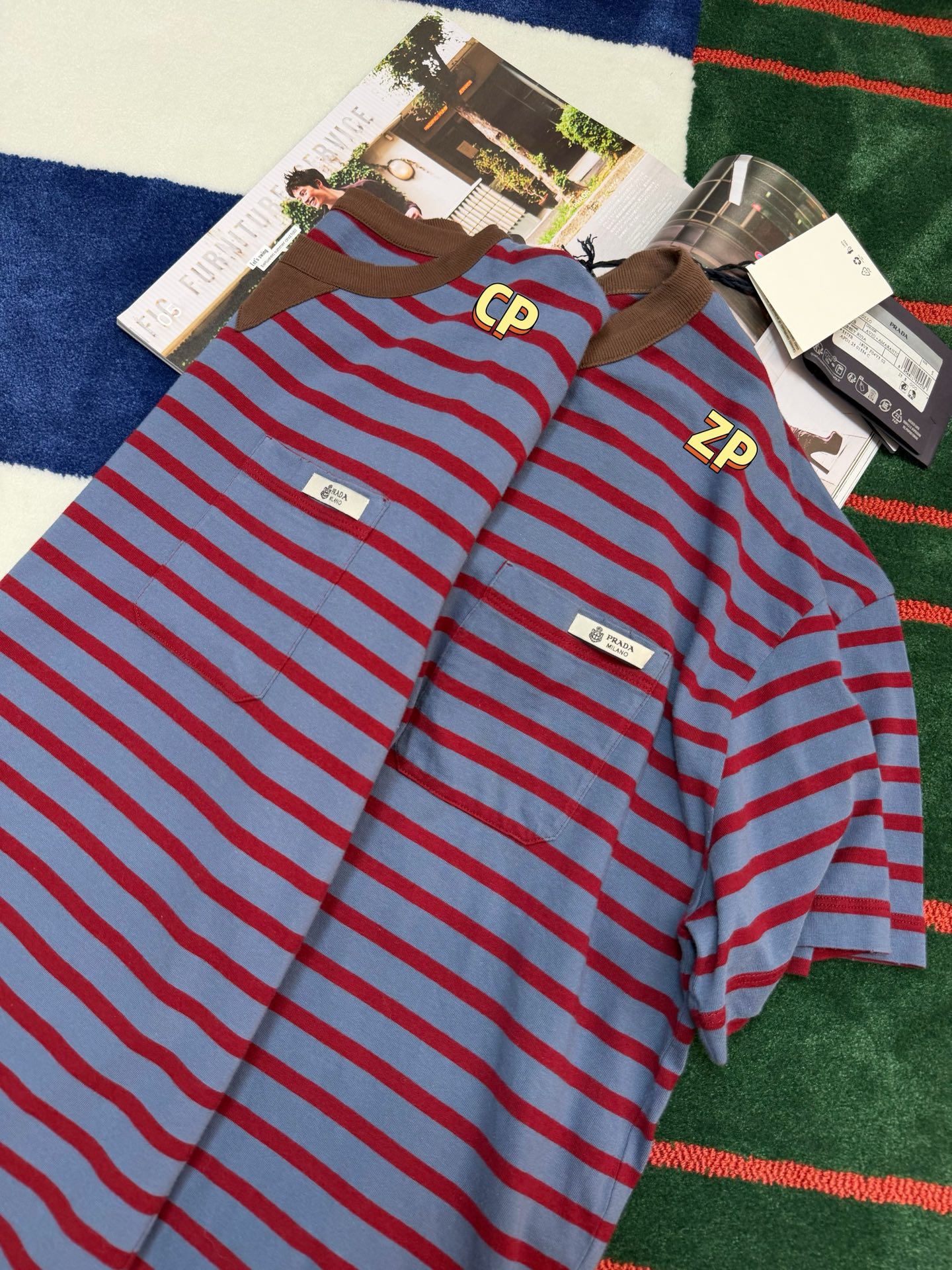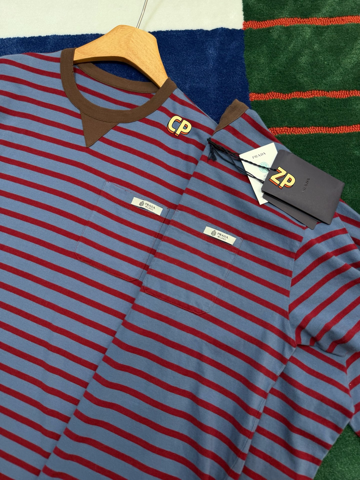 最新款 条纹T恤,空军蓝➕红色拼接🟰打翻调色盘的艺术感,咖色螺纹领口复古buff叠满,黄皮穿直接冷白皮〰️手感细腻舒适,完美修饰身材,久穿不腻,这件穿起来真的超级好看,定制定染面料,超级显白😜上身洋气爆啦, 回头率100%,随意搭配都好看,轻松拥有氛围感 🔜超级推荐🉑️条纹脑袋别错过‼️码数SML