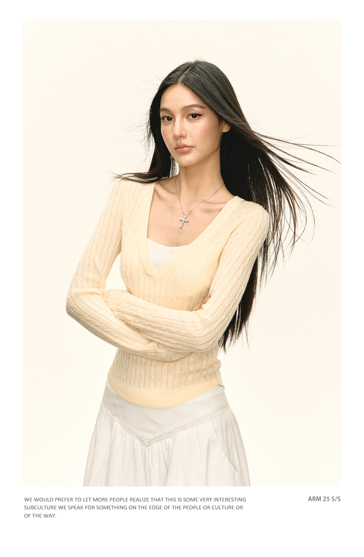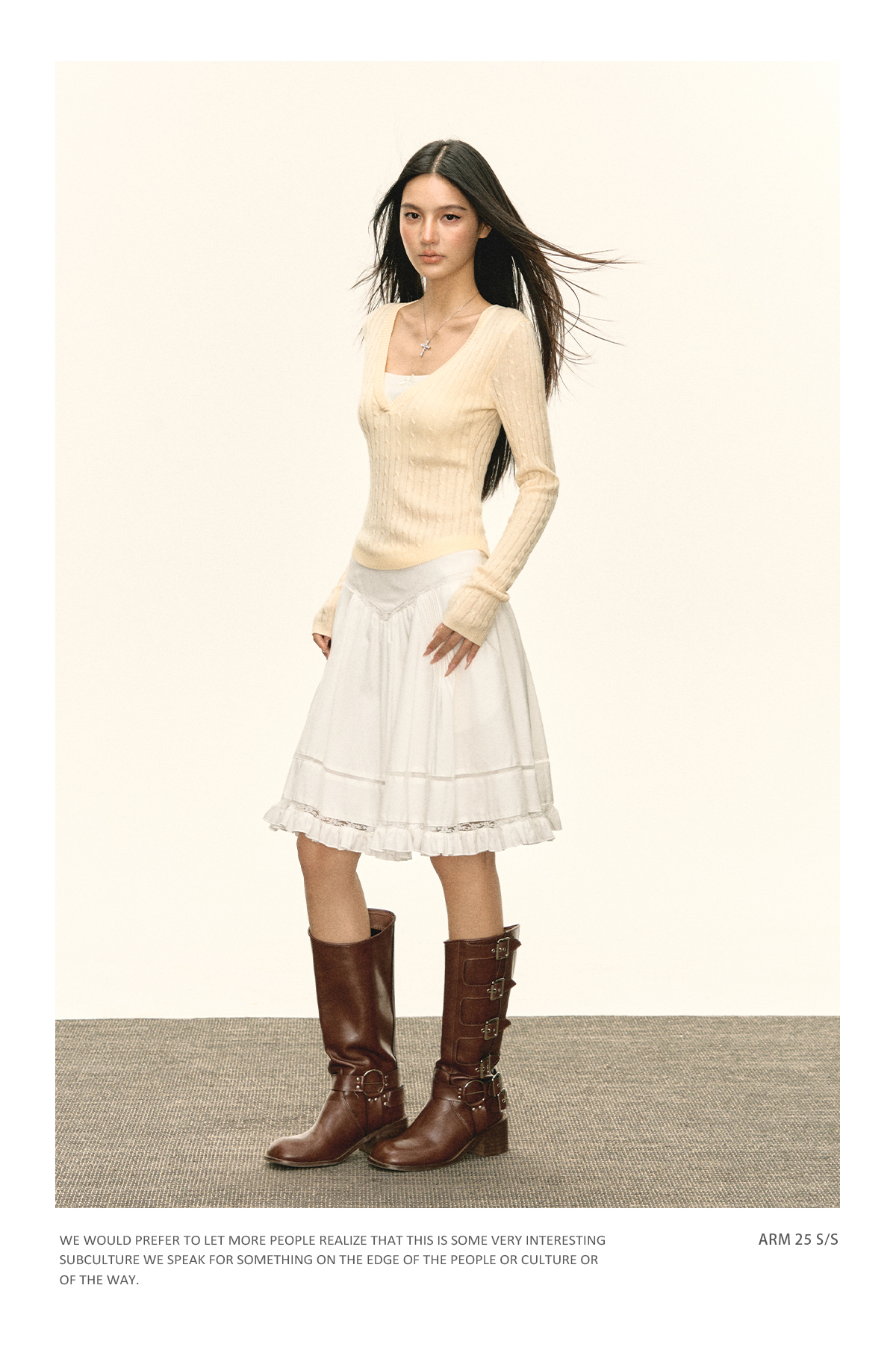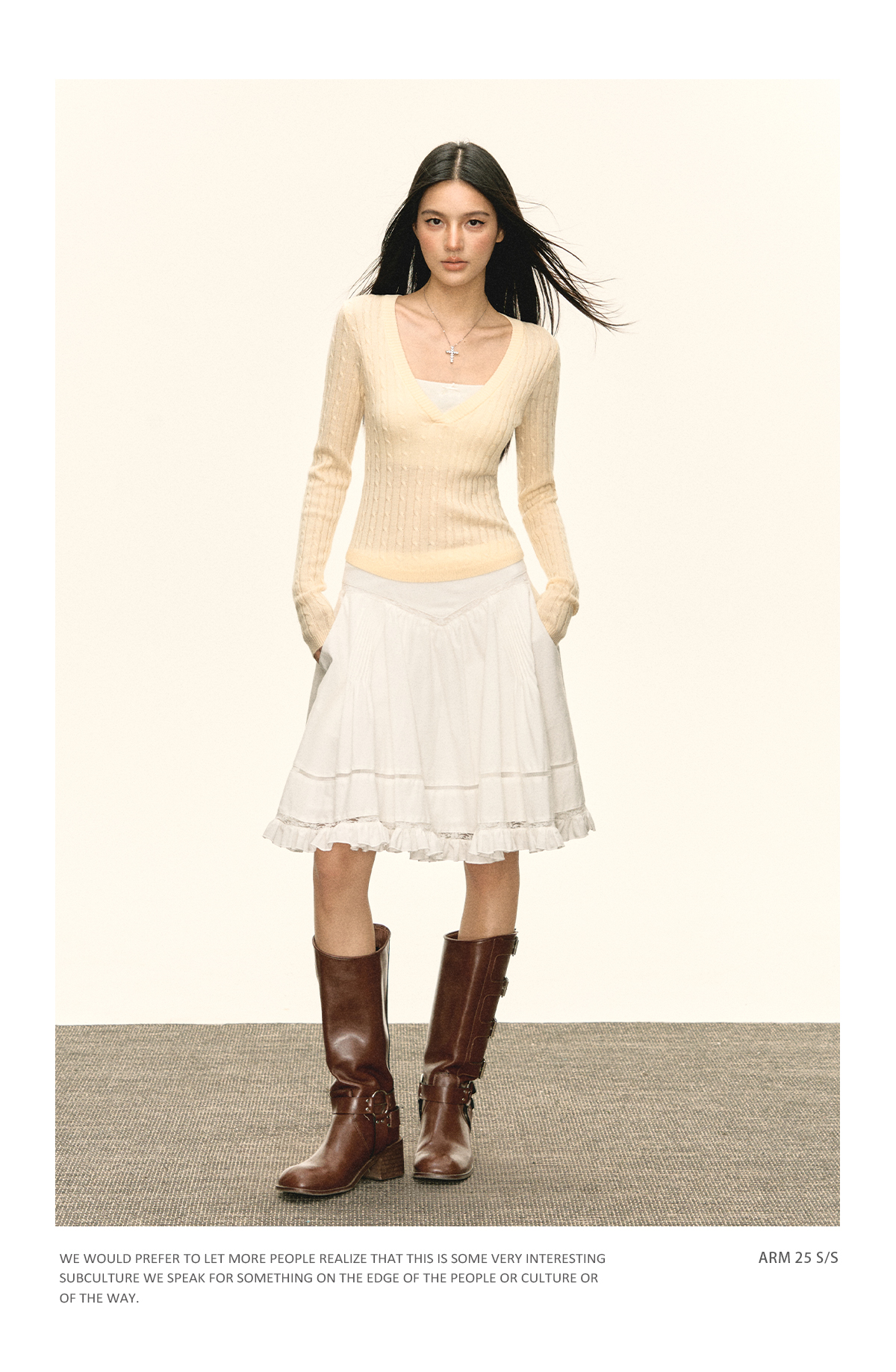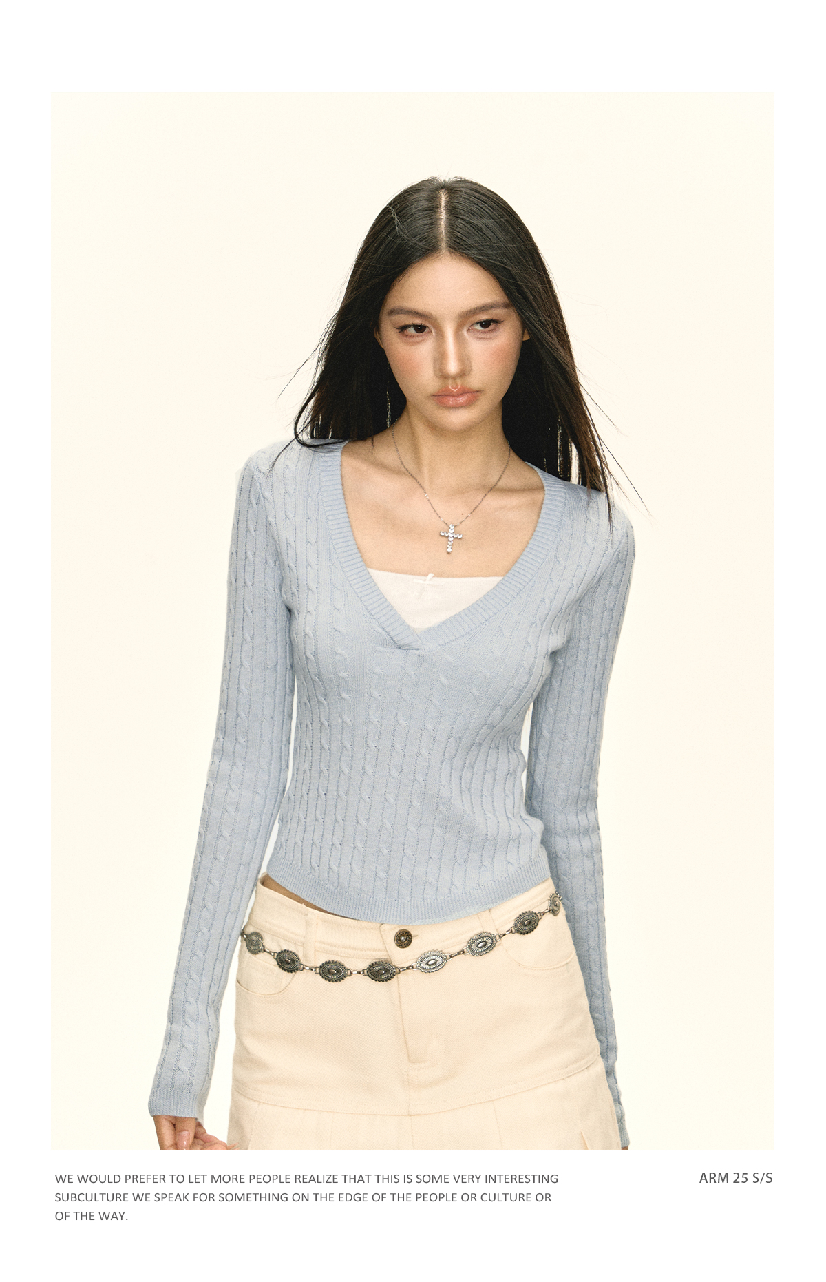 Ariseism 美式复古设计感假两件针织衫女秋冬新款内搭打底毛衣