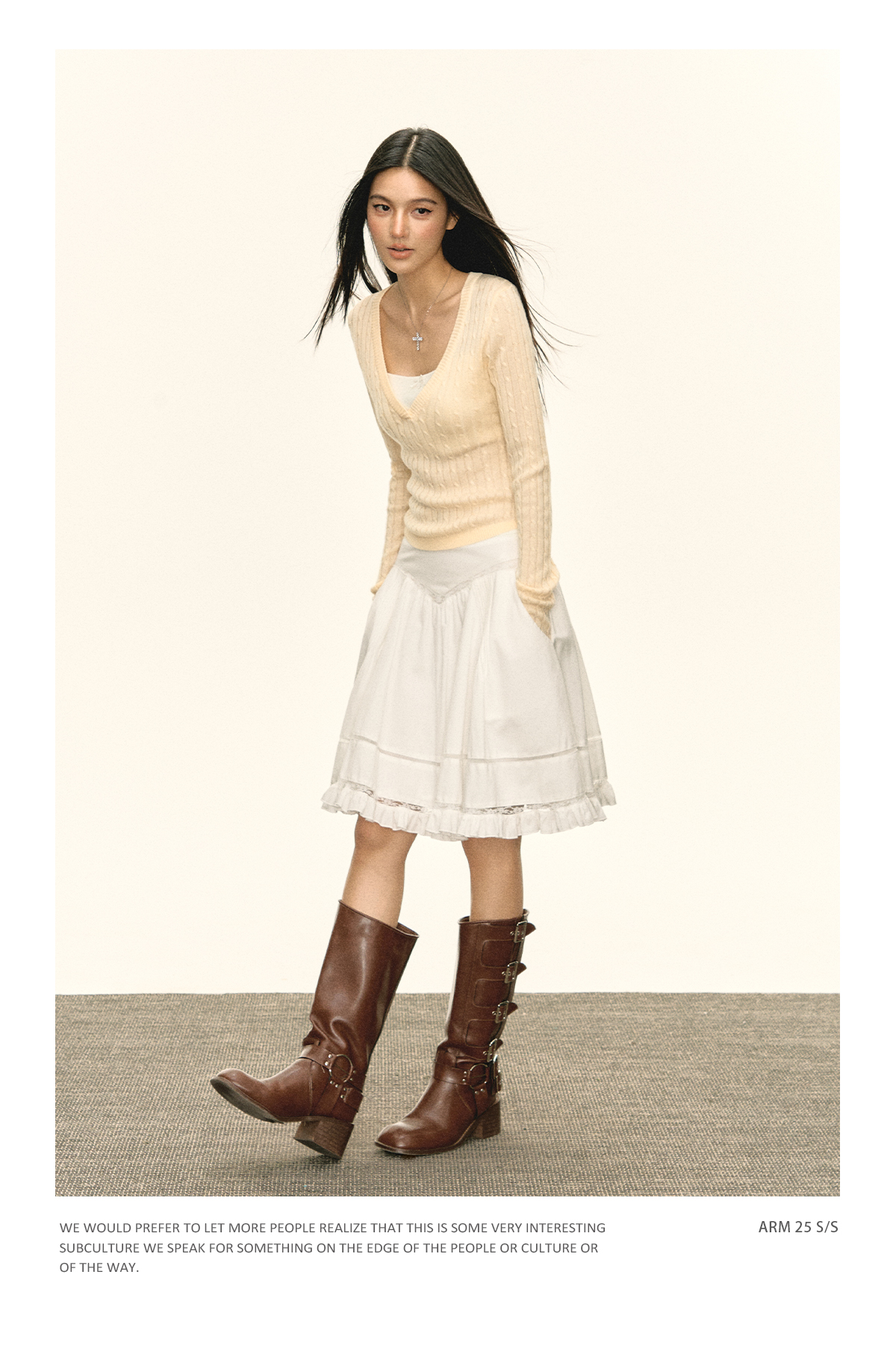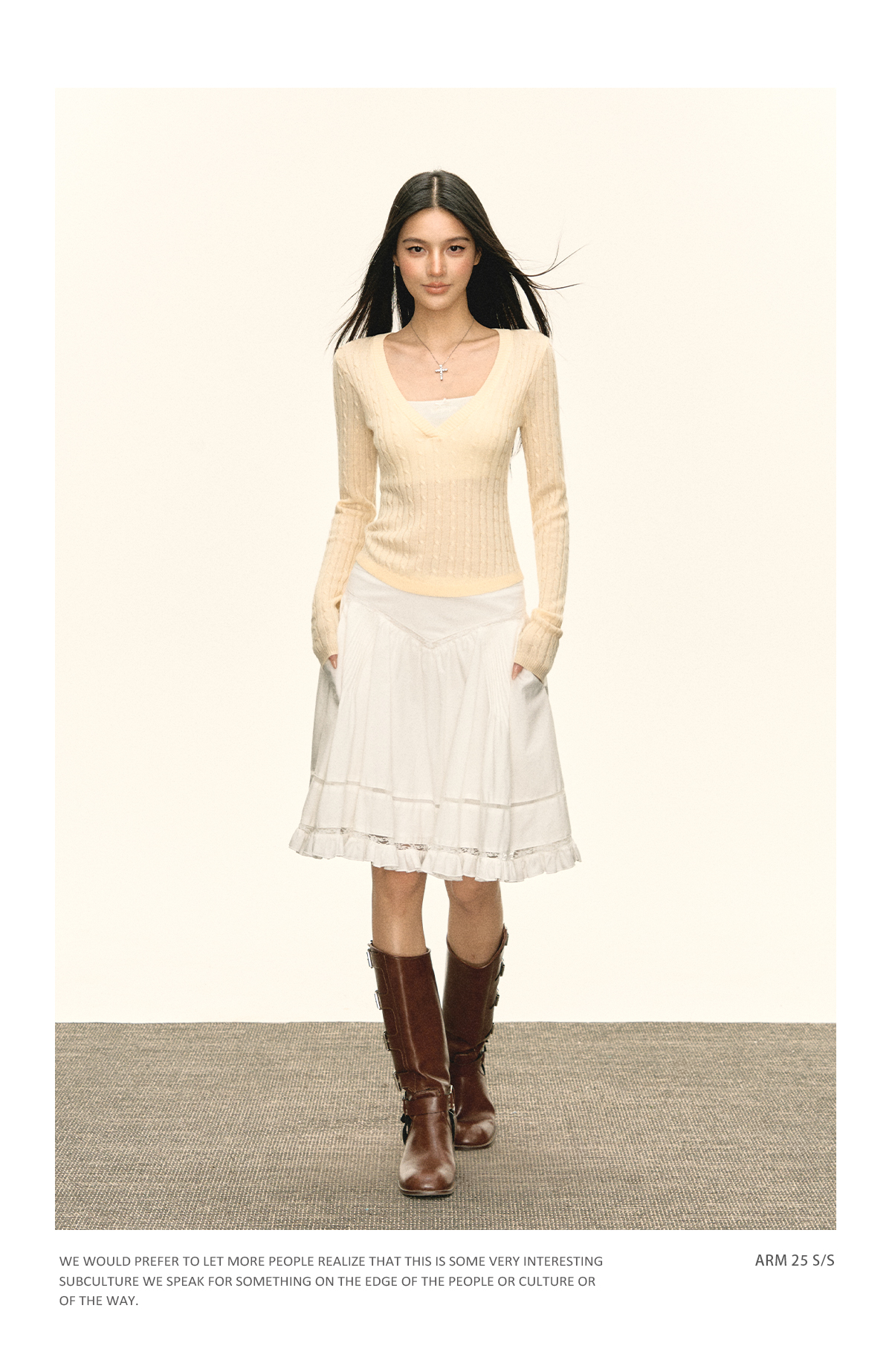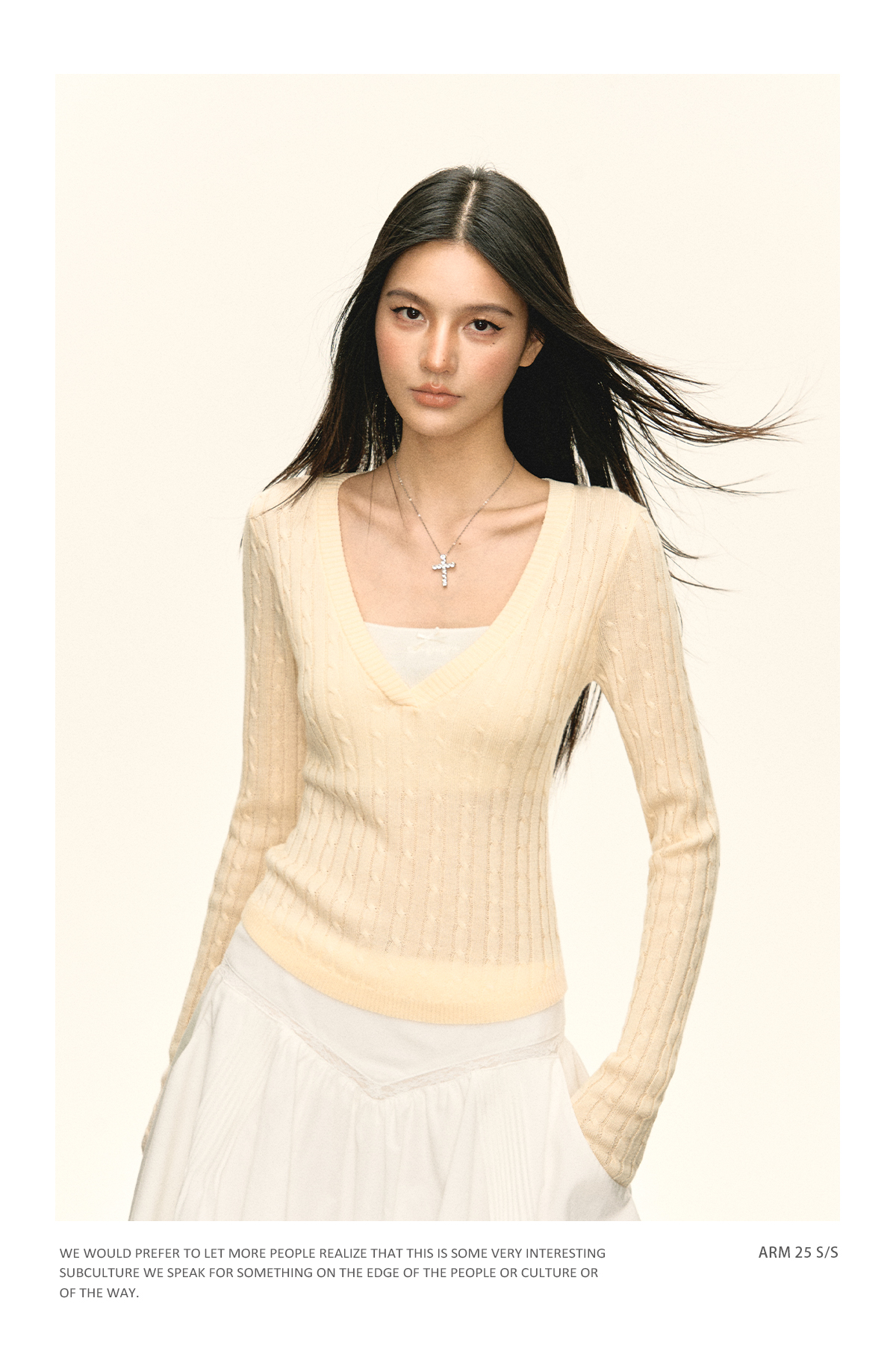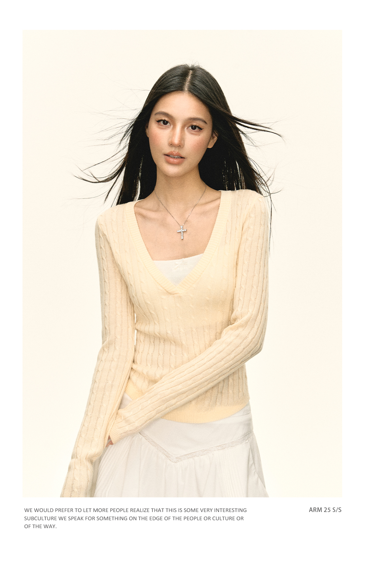 Ariseism 美式复古设计感假两件针织衫女秋冬新款内搭打底毛衣