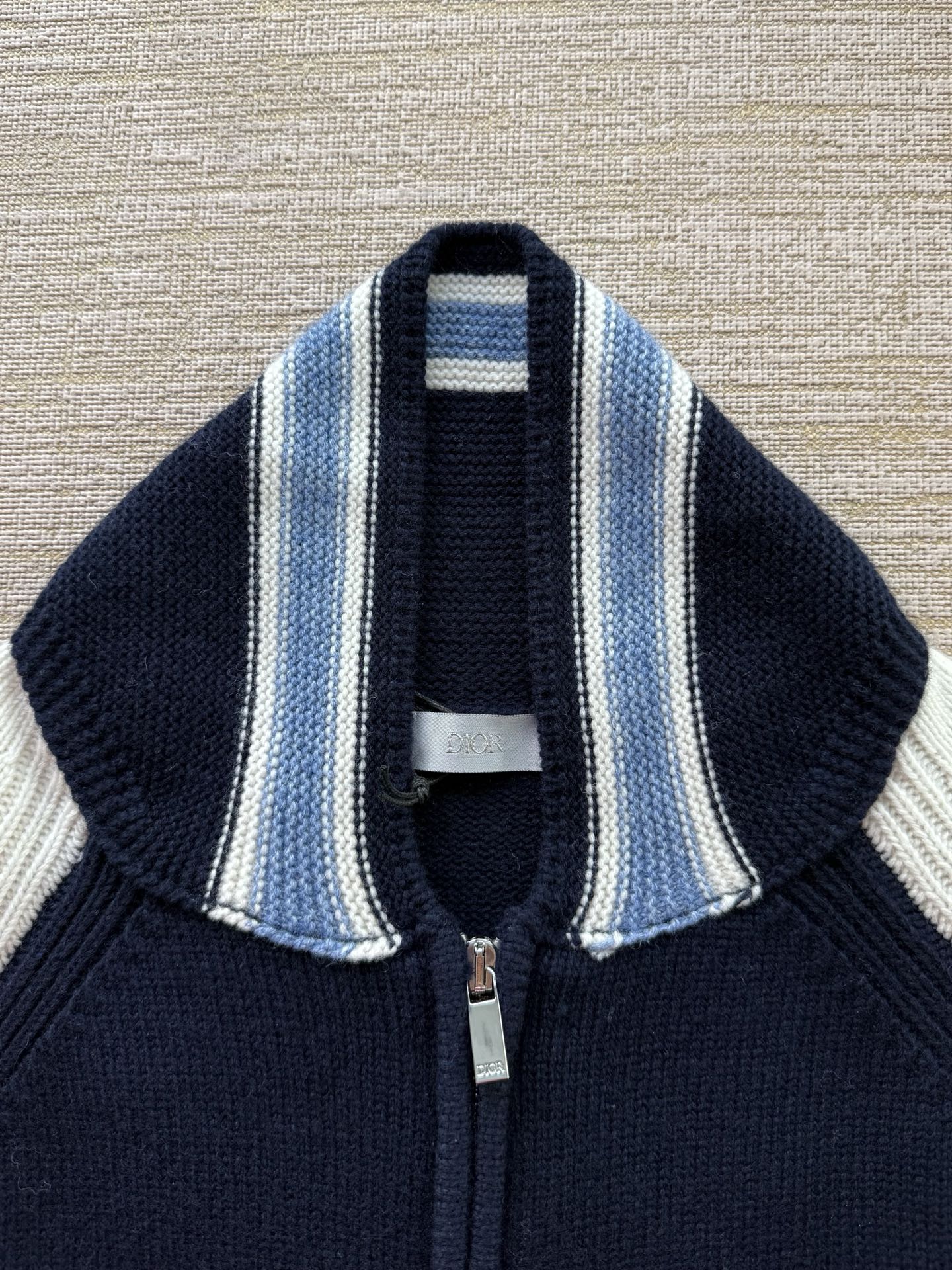 Dior2025FW铃兰花刺绣毛织外套‼️整件衣服29000购买ZP拆解打造,定织100%绵羊毛面料,意大利制造,前幅饰Dior刺绣字母标识,门襟开模定制Dior字母标识拉链,后幅饰以铃兰花刺绣,定织标志性罗纹袖口 下摆,超紧密度局部编织,真正做到1:1copy 闭眼入 码数:XS S M L