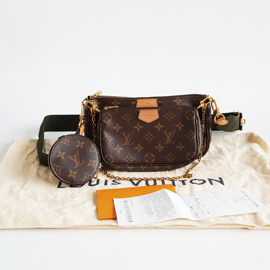 【95新】LV路易威登Multi Pochette Accessoires 手袋M44813老花绿肩带五合一单肩斜挎包女士 090126NJS33