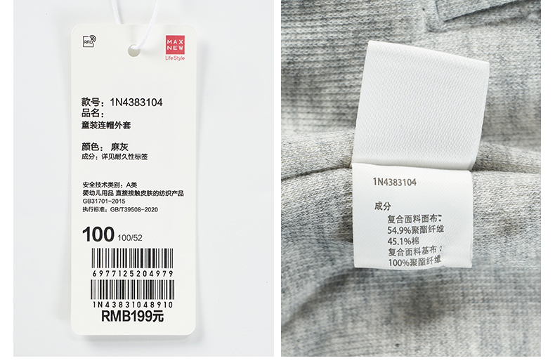 【茄克】童装连帽外套1N4383104
