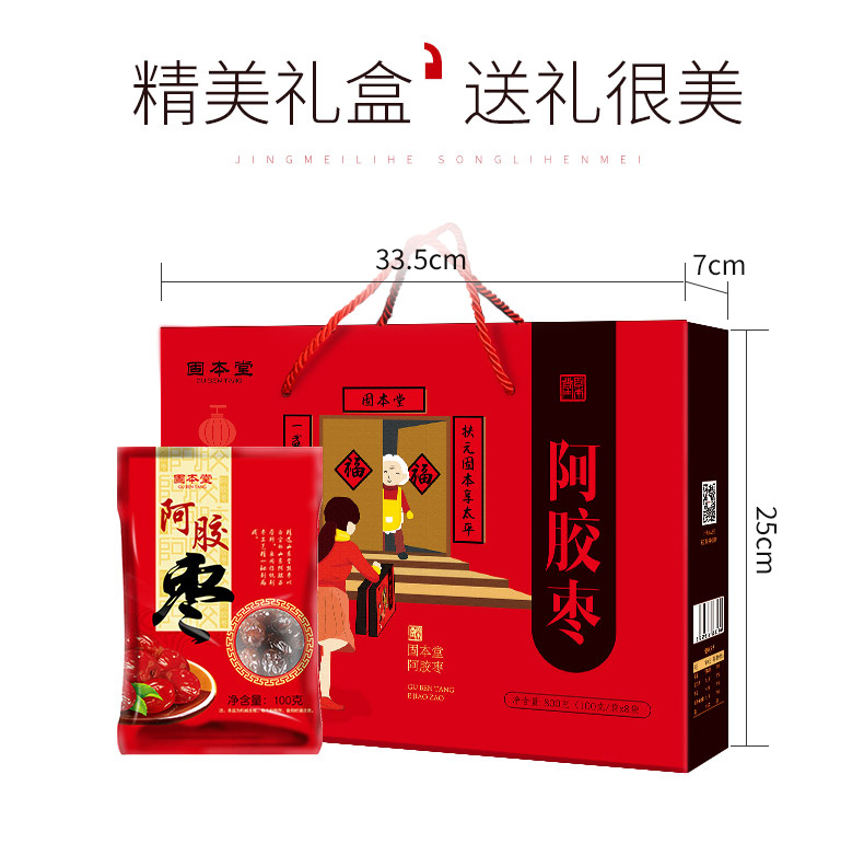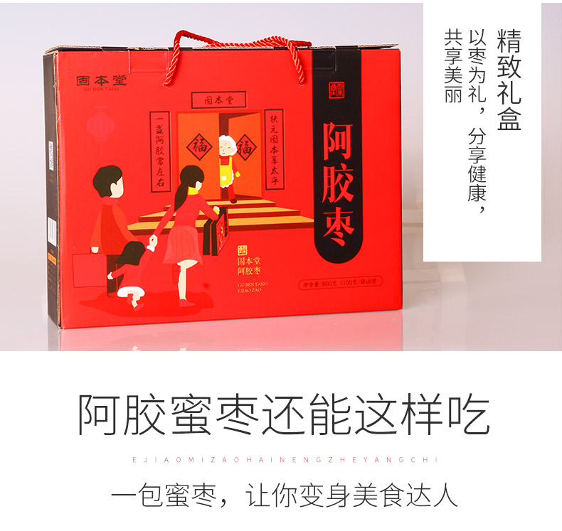 阿胶枣礼盒800g 无核阿胶枣开袋即食金丝枣滋补礼品送礼佳品健康礼盒 【固本堂】