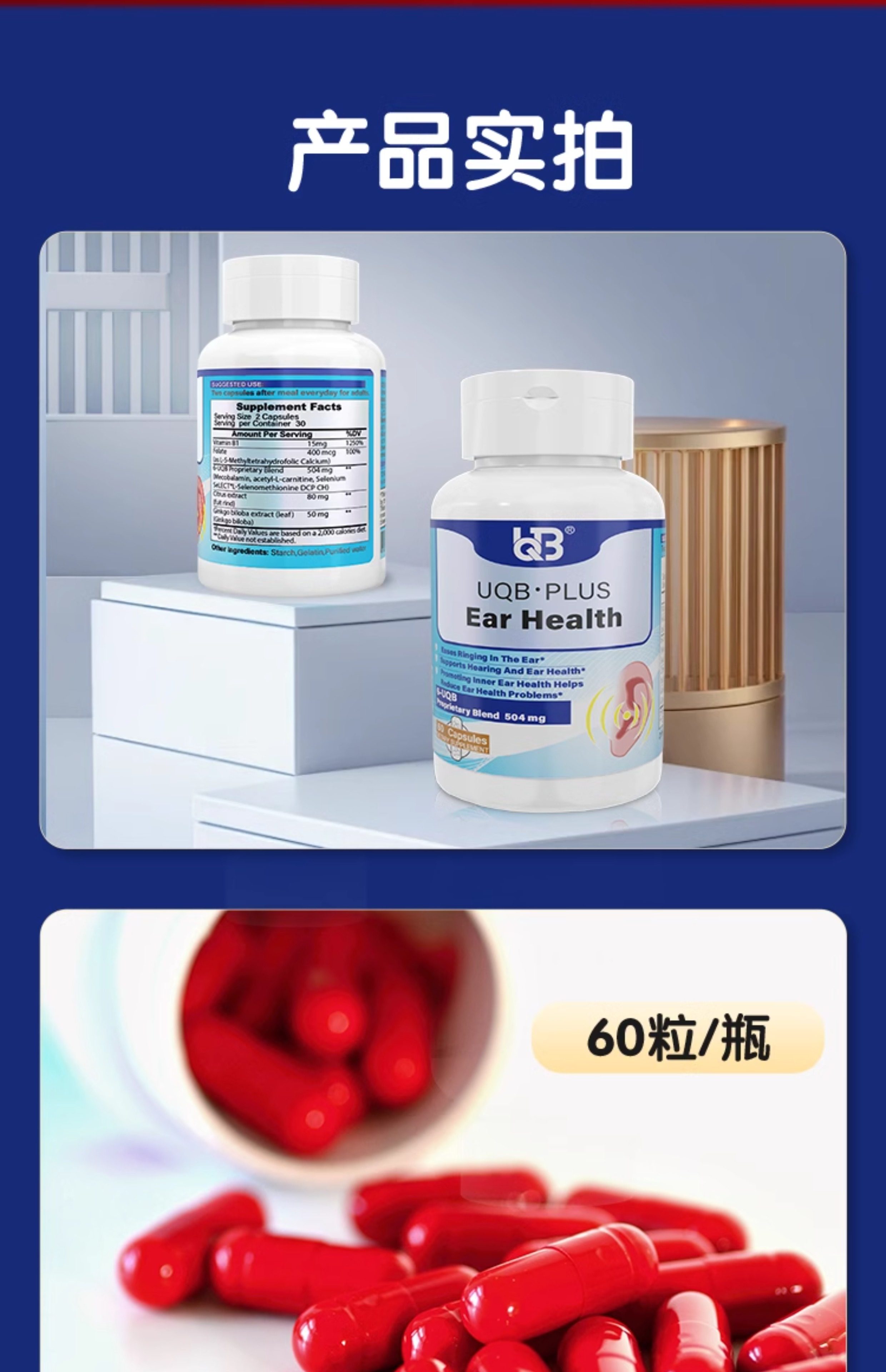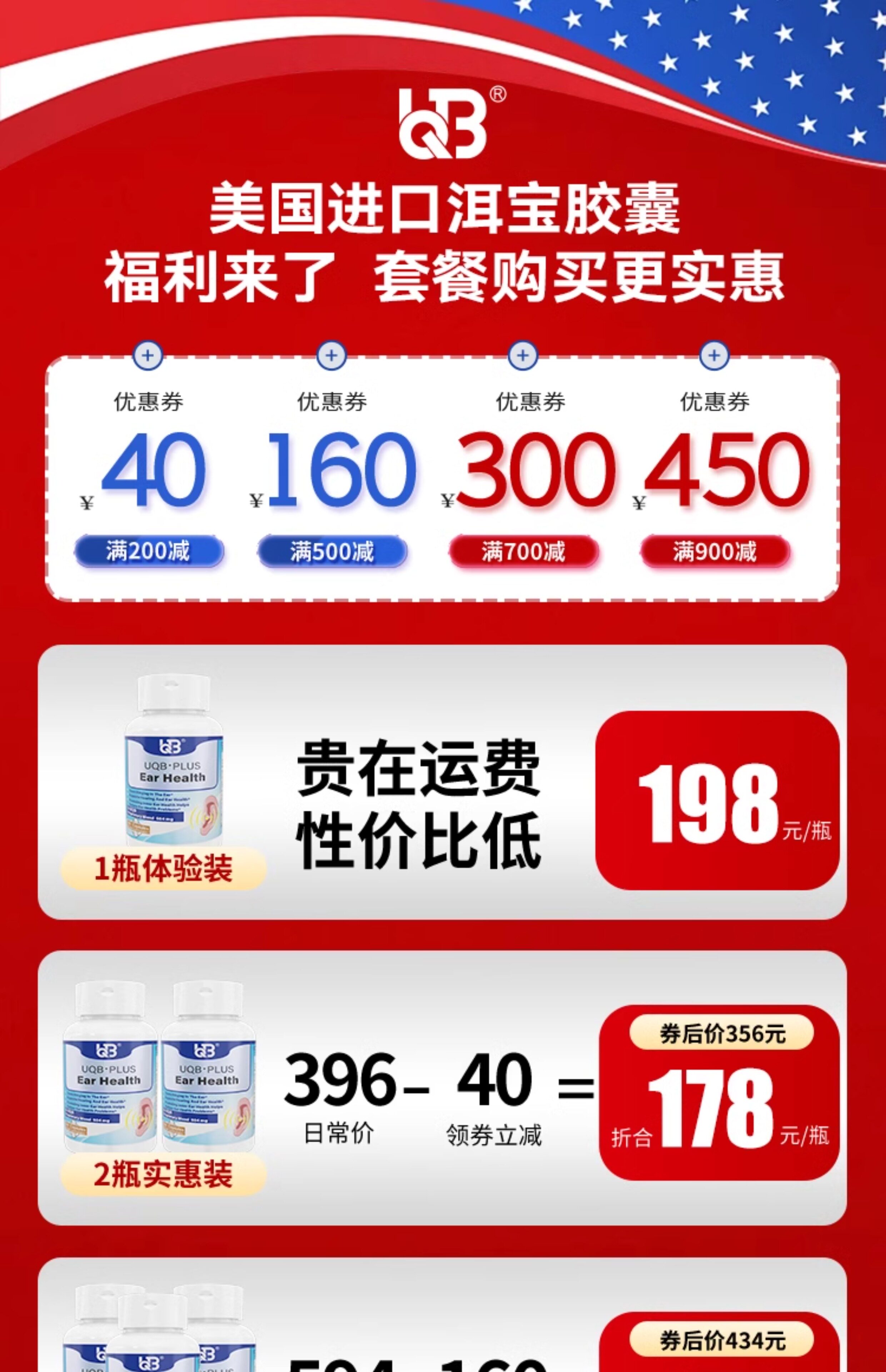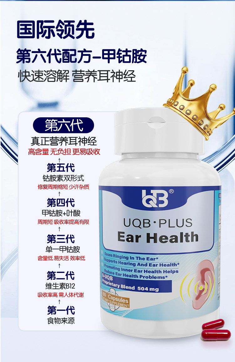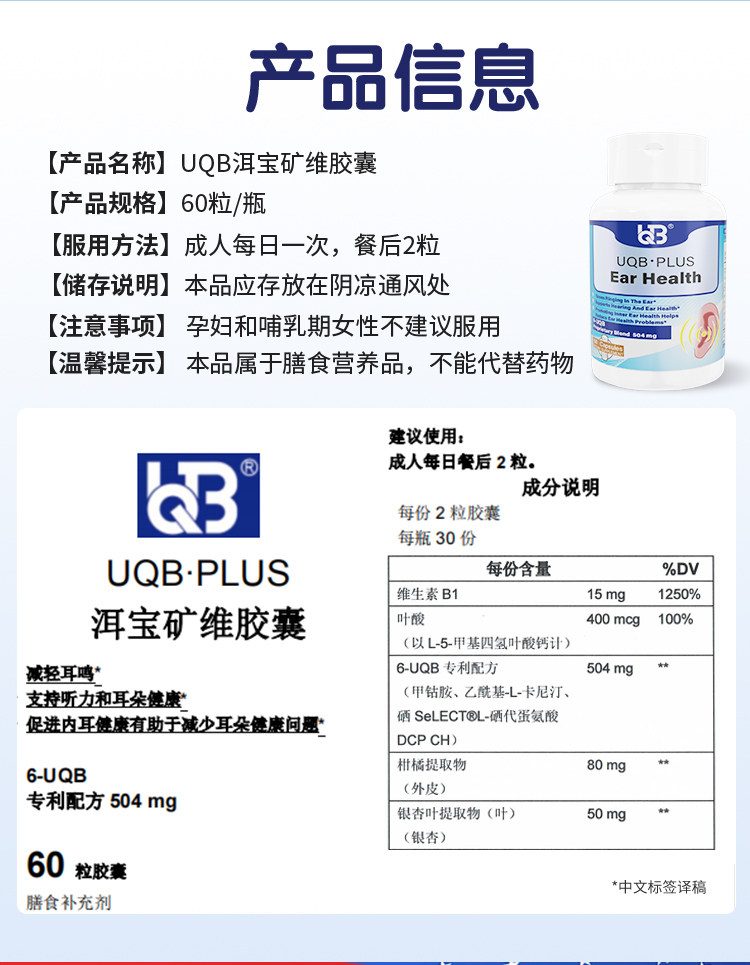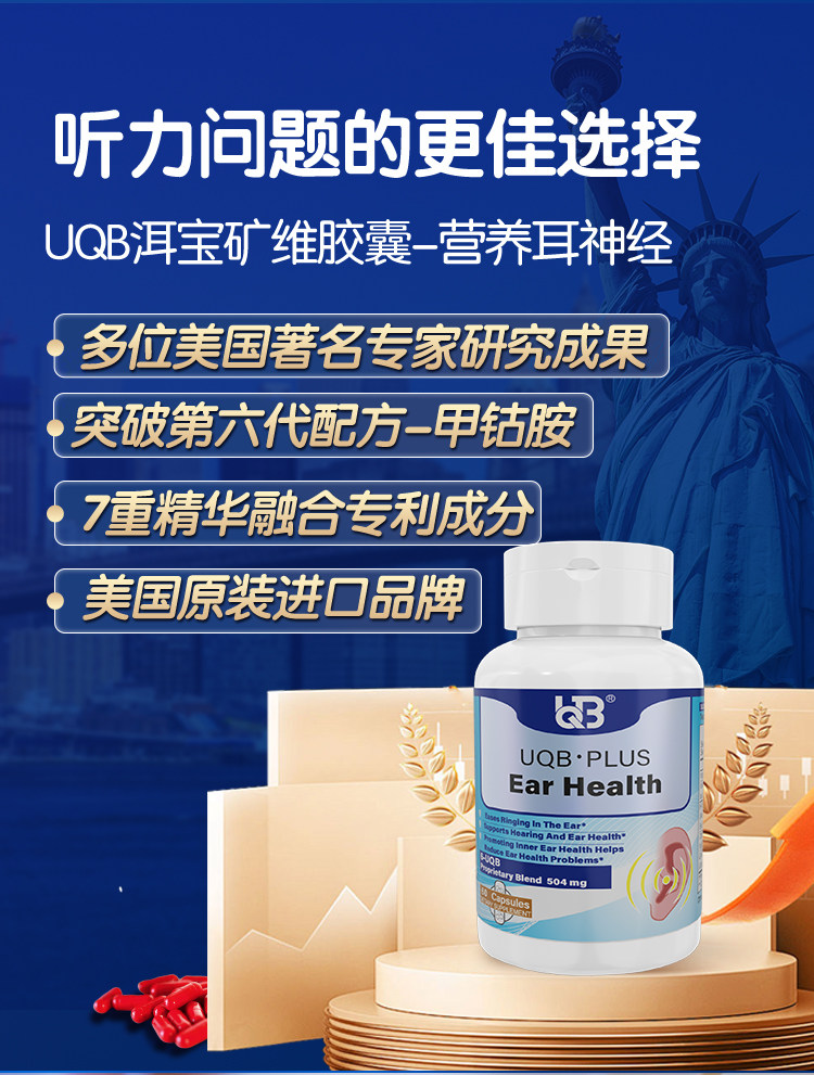 UQB美国原装进口洱宝矿维胶囊神经性耳响嗡嗡响改善耳健康耳背