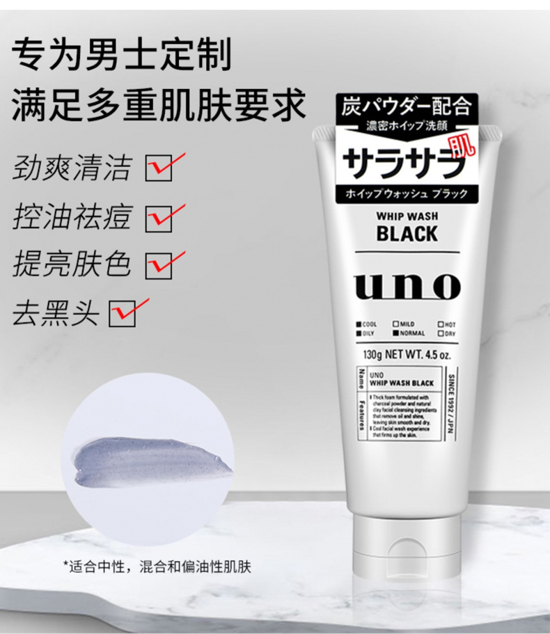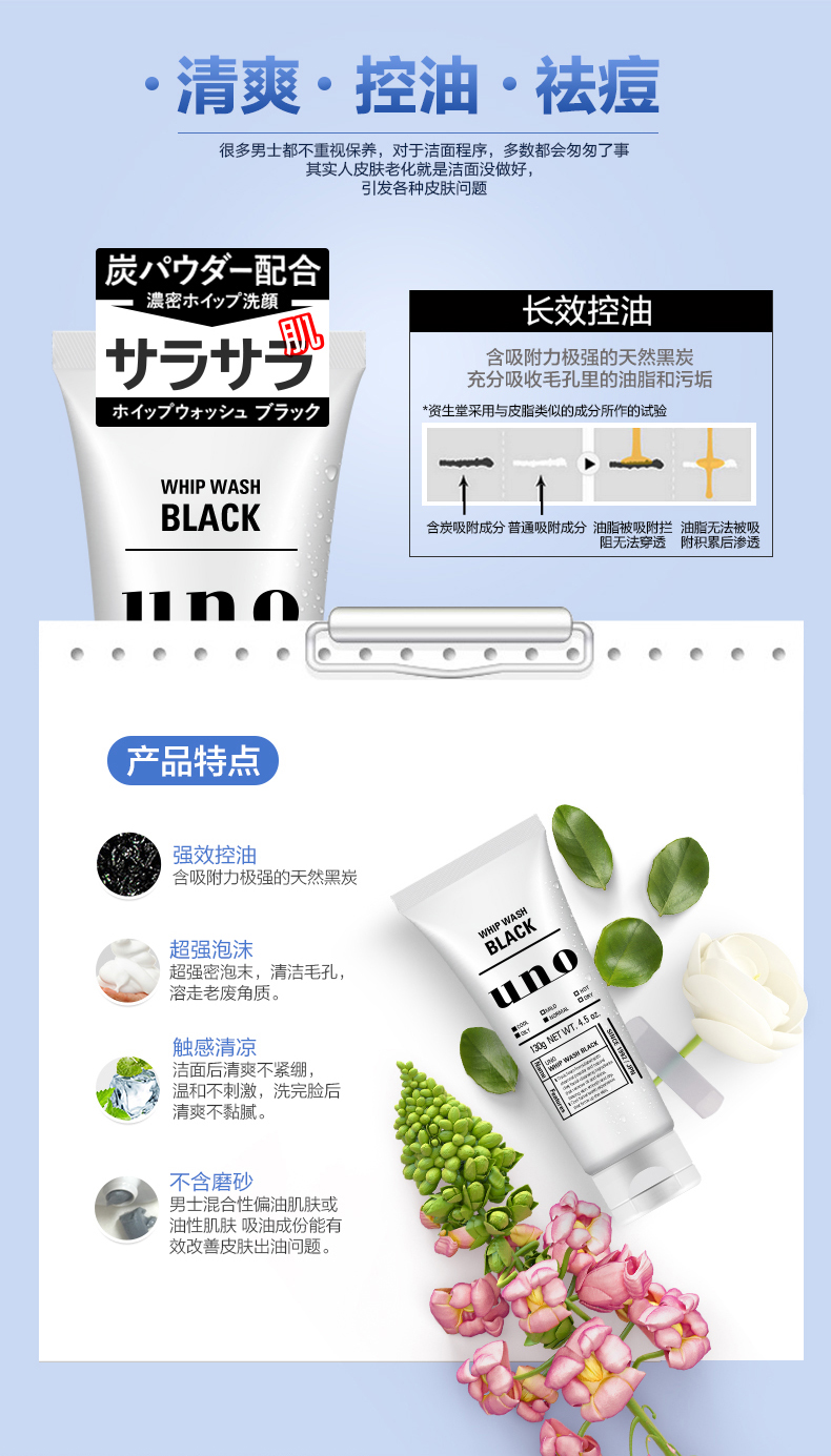 【保税仓】资生堂uno黑炭控油洗面奶130g/瓶