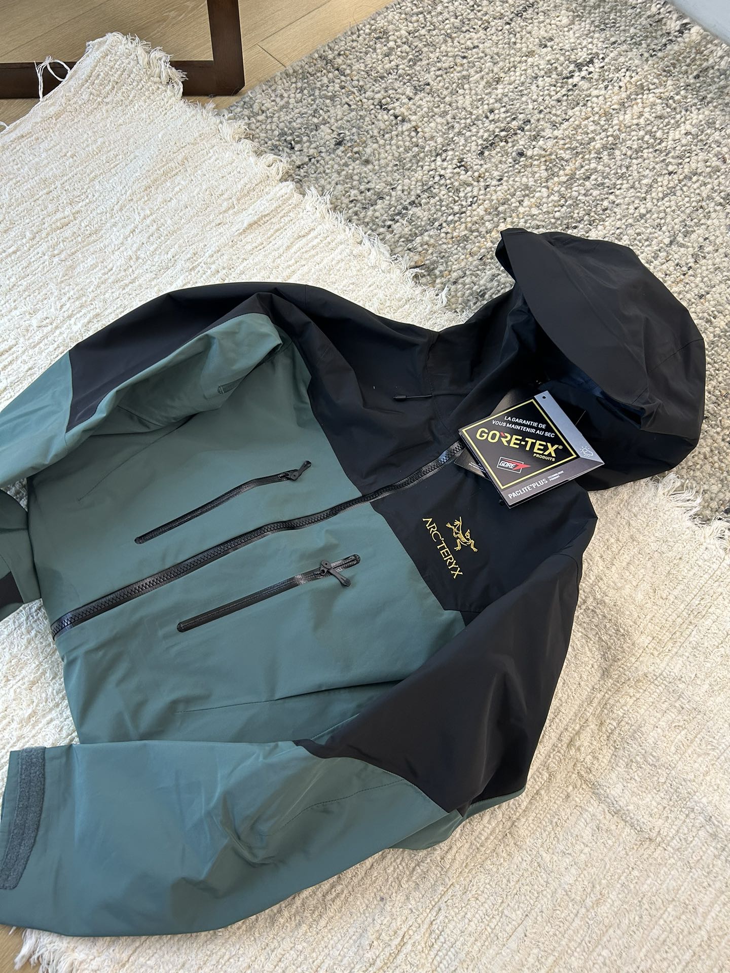 ARCTERYX始祖鸟Alpha系列Sv第7代GORE-TEXPro刺绣Logo图案休闲运动连帽拉链硬壳冲锋衣(MG)
