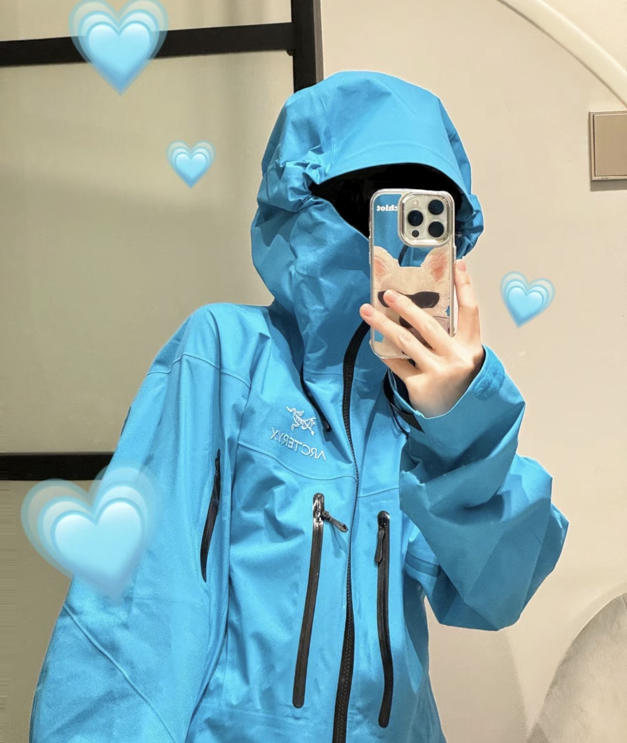 Alpha系列 Sv 第7代 GORE-TEX Pro 刺绣Logo图案休闲运动连帽拉链硬壳冲锋衣