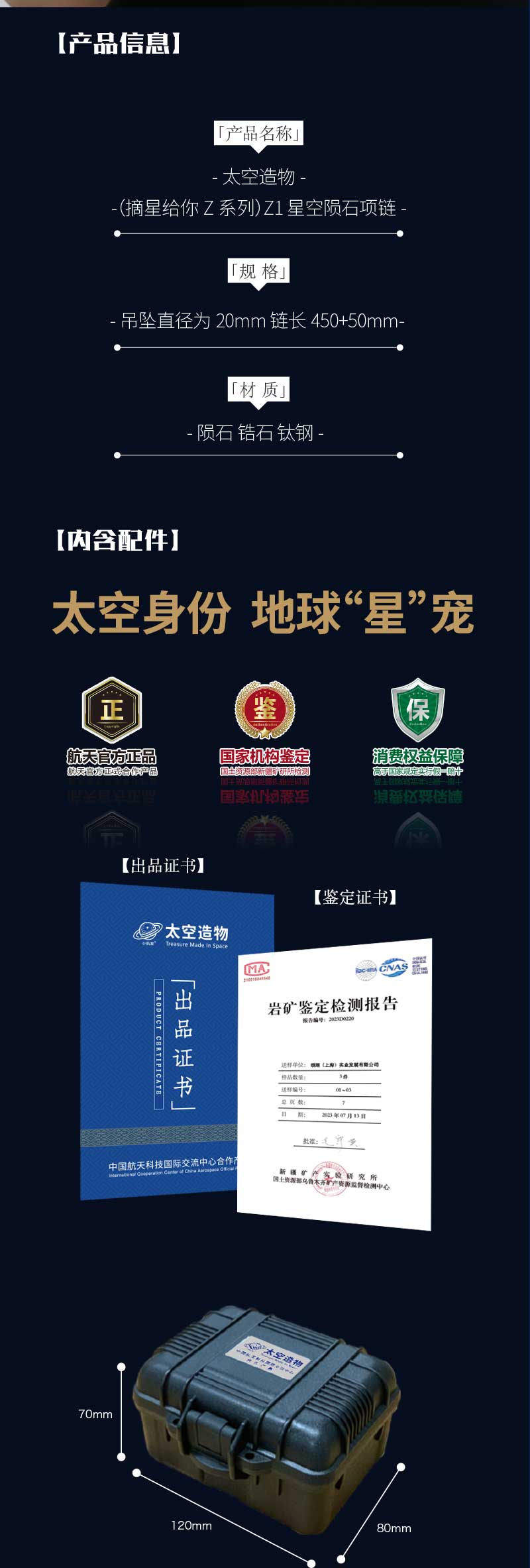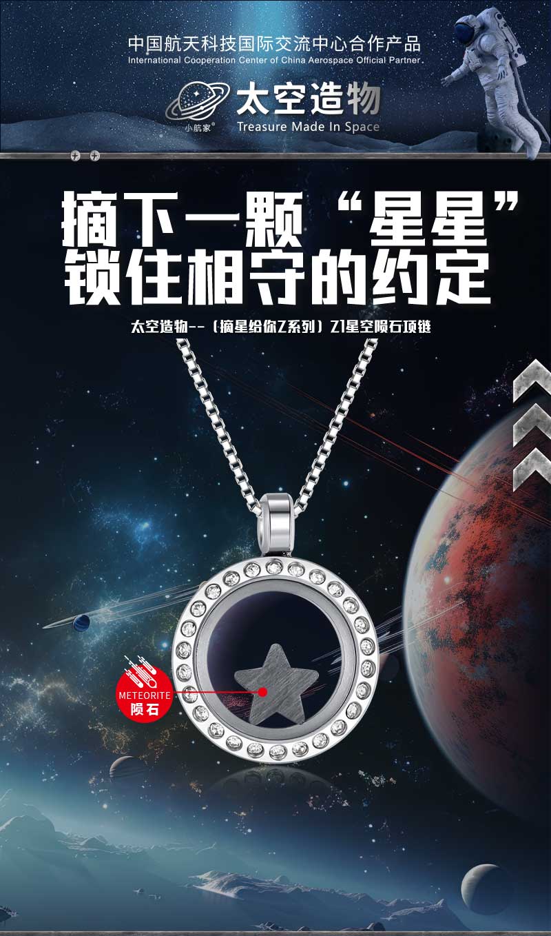【太空造物】中国航天星空陨石项链 内嵌珍贵陨石 为你摘星