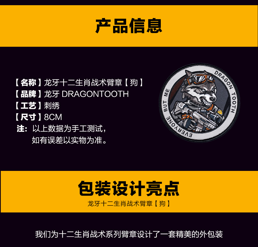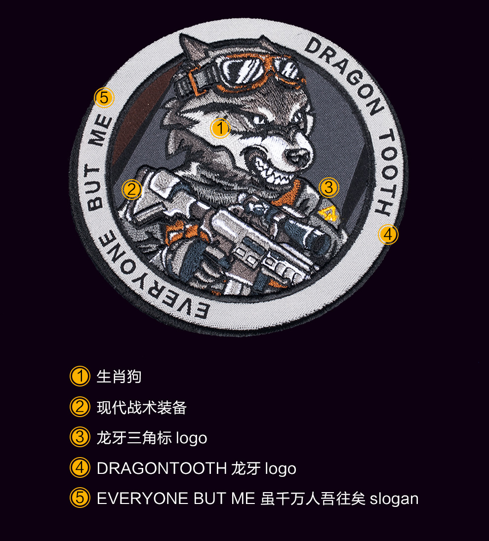 【龙牙】十二生肖战术臂章(狗)魔术贴章个性装饰魔术贴圆形通用装备