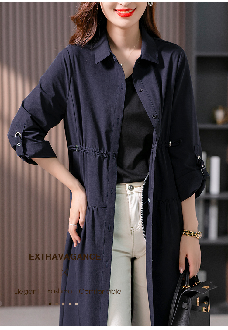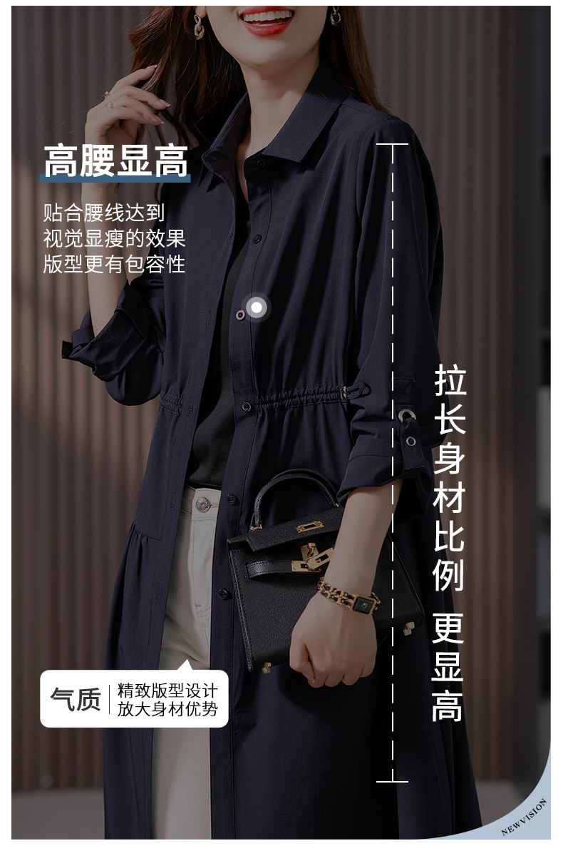 YX【定制25天】设计感收腰风衣外套女中长款2023秋季新款韩版高腰显瘦大衣