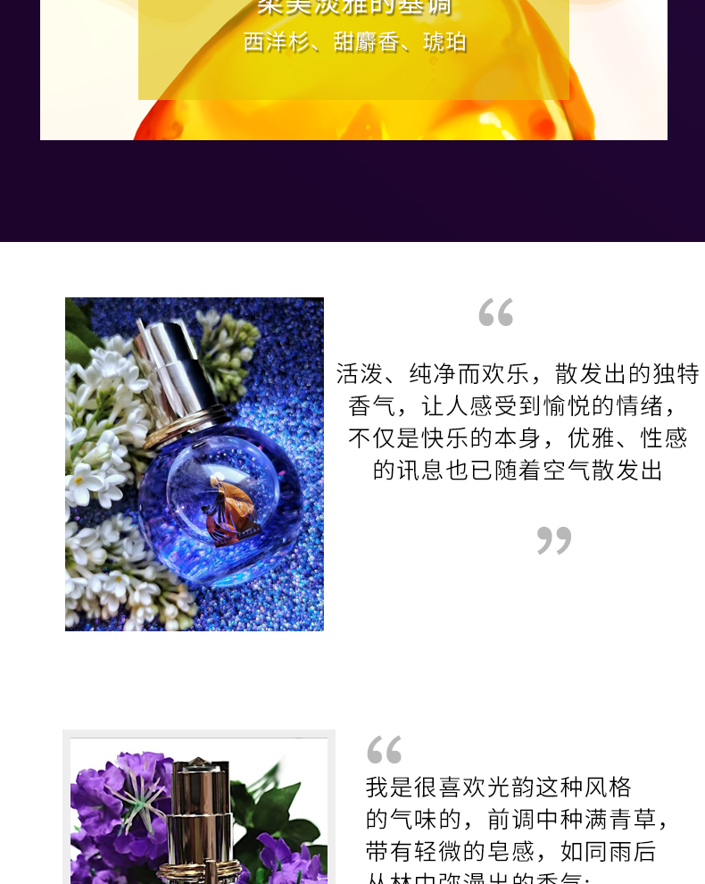 后调:黎巴嫩白西洋杉、甜麝香、琥珀