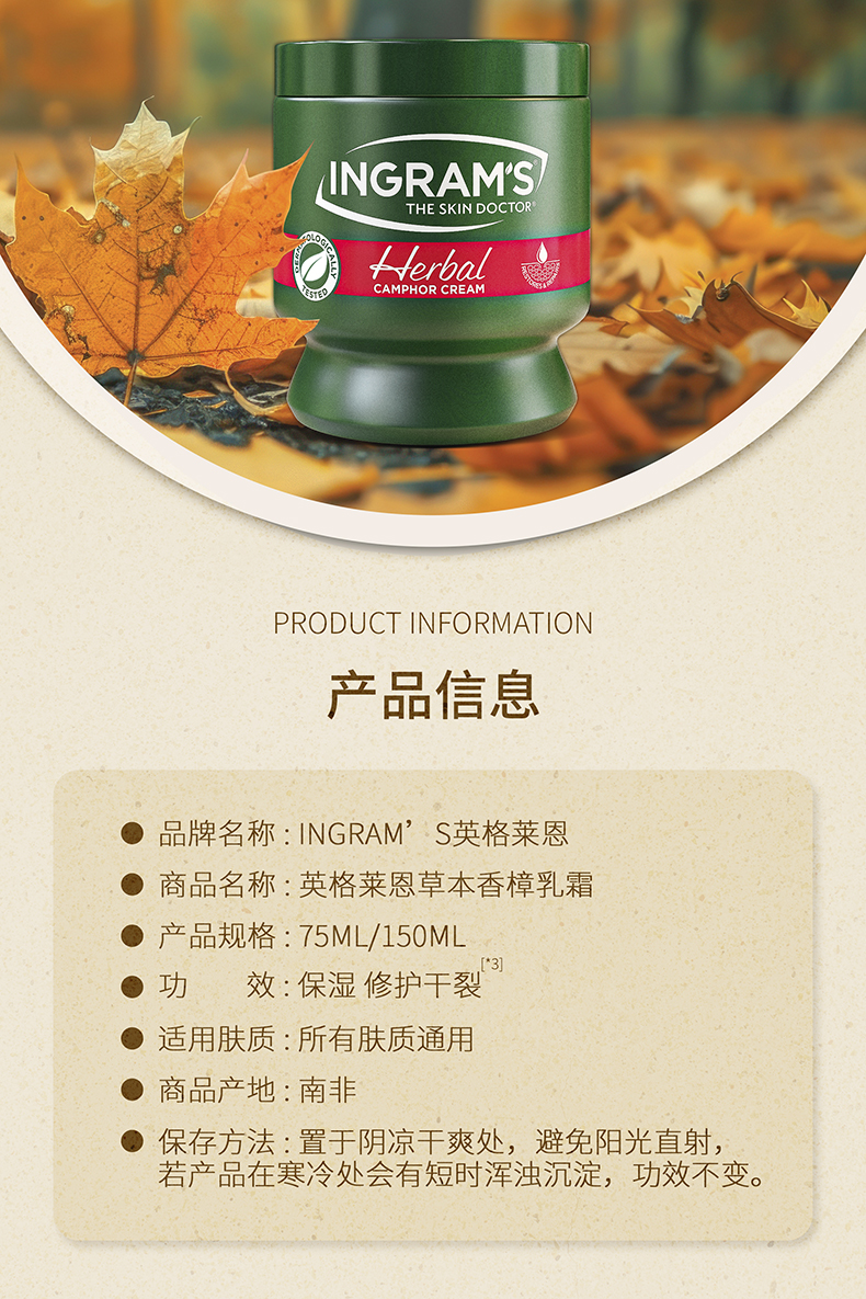 换季皮肤干痒、脱皮脱屑?试试南非万能小绿膏🎁即买即赠|Ingram's 英格莱恩草本香樟乳霜!南非国宝级护肤,秋冬必备补水保湿修护神器~